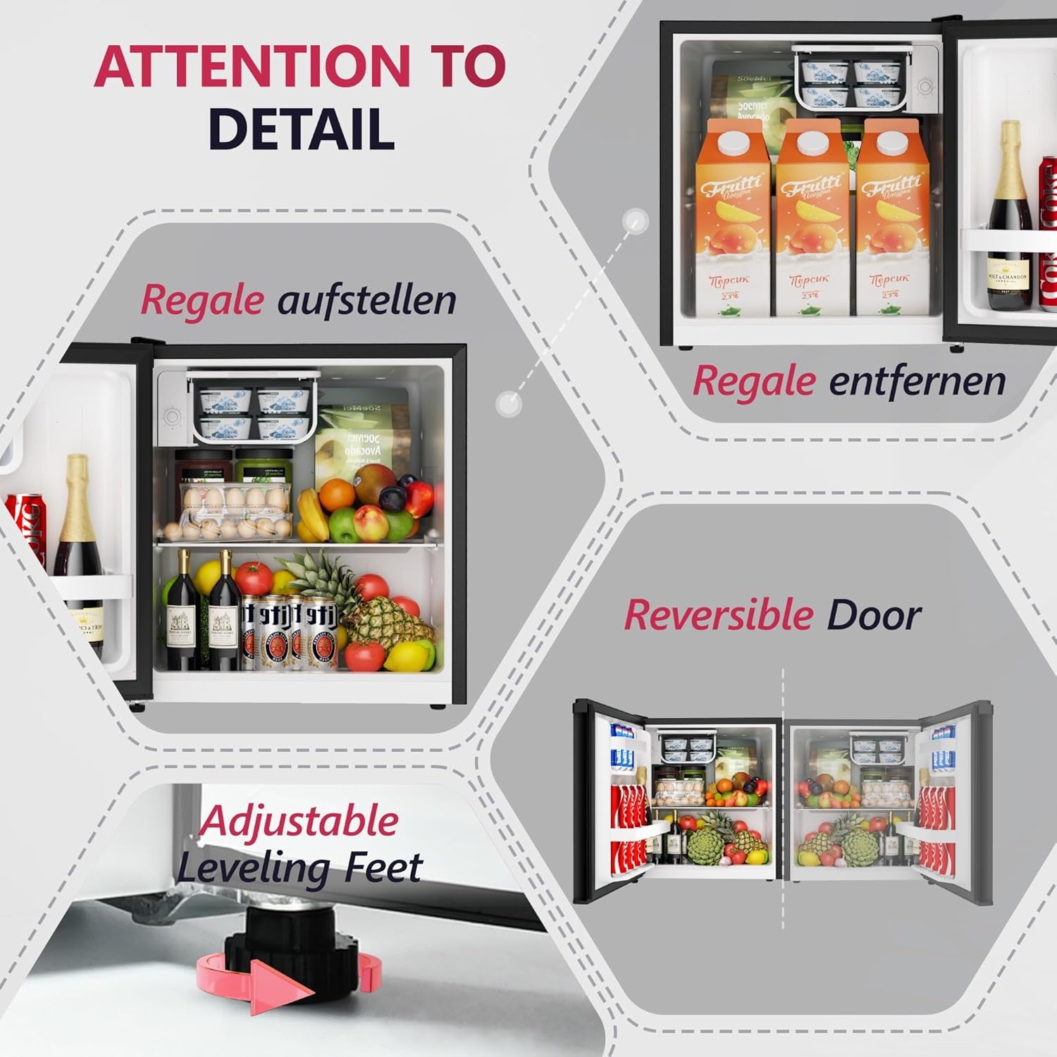 • 【COMPACT SPACE-SAVING MINI FRIDGE】This mini fridge features a sleek, compact build (16.73″D x 17.83″W x 19.8″H), making mini fridge for bedroom ideal for countertops, desks, or tight spaces. Its reversible door design allows for flexible placement in apartments, dorms, offices, or bedrooms, effortlessly adapting to your space.