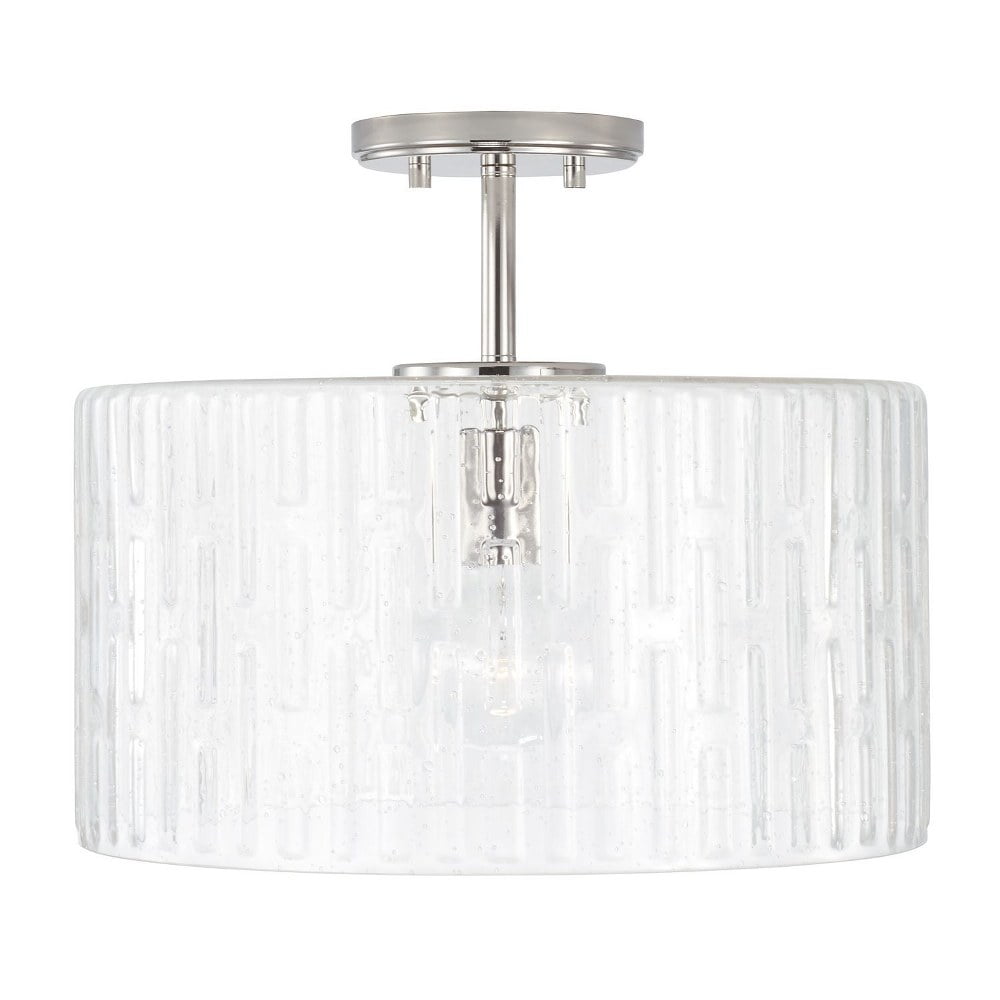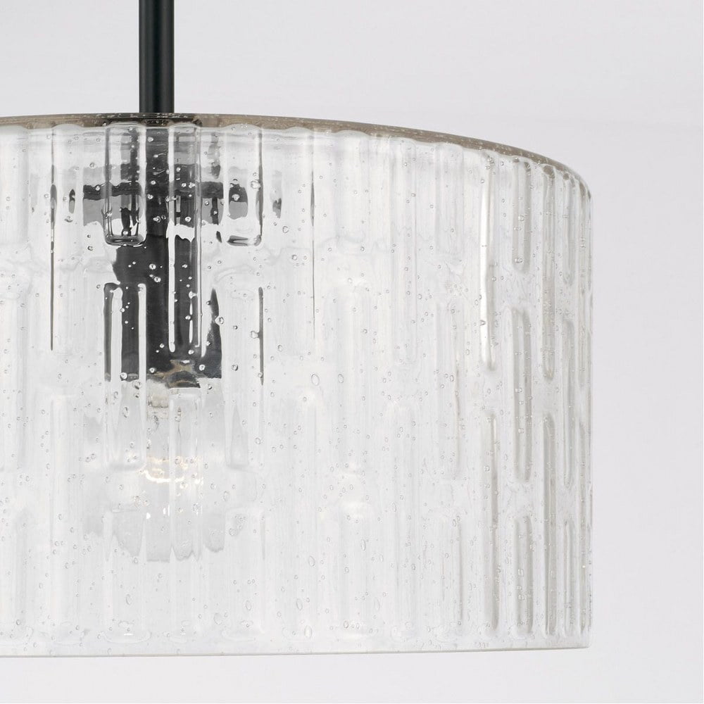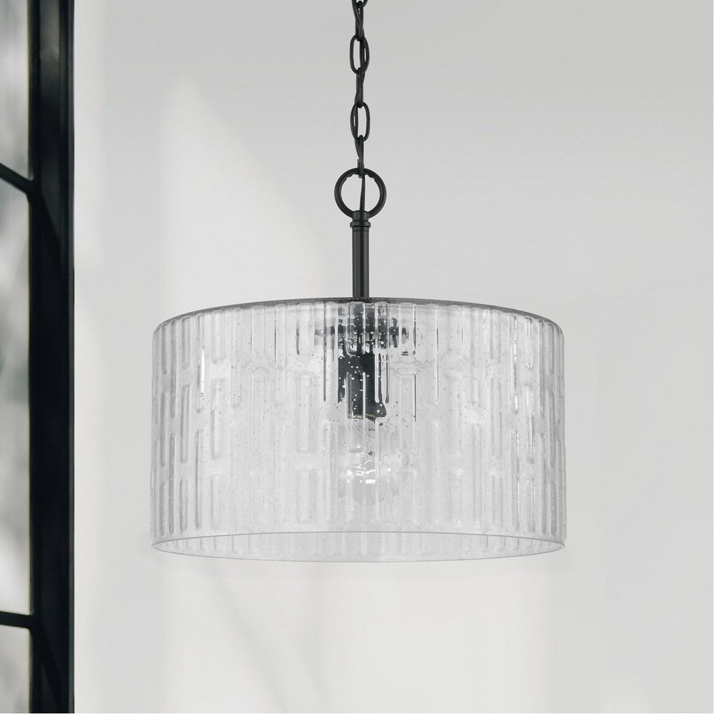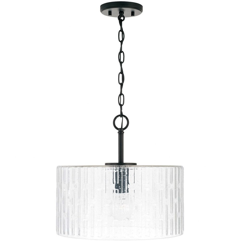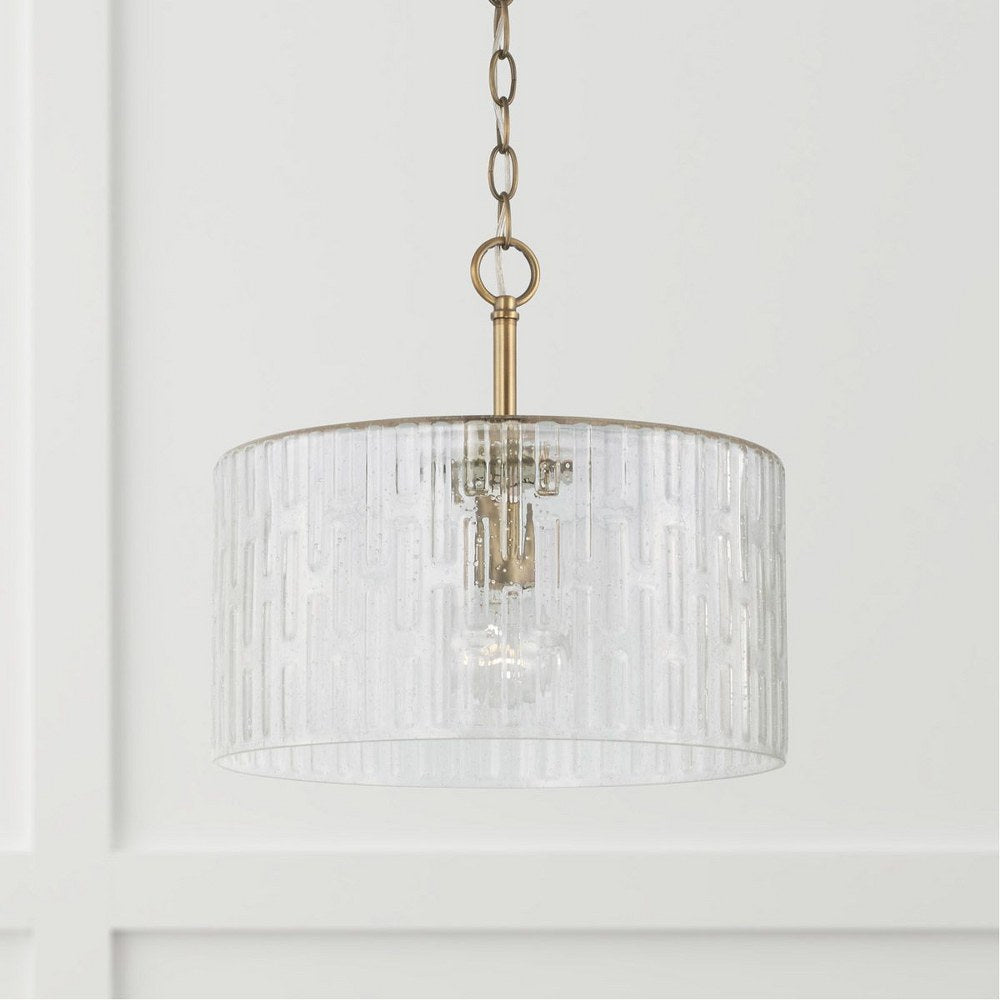 Capital Lighting-241311AD-Collection: Emerson, Material: Metal, Finish Color: Aged Brass, Width: 15″, Height: 14″, Number Of Bulbs: 1, Wattage: 100 Watts, Dimmable: No, Moisture Rating: Dry Rated, Desc: Create a simple and striking statement with the Emerson 1-Light Dual Mount Pendant. This fixture features a wide seeded glass shade with an embossed geometric pattern that sparkles on a clean and classic Polished Nickel frame. This fixture can be used as a Semi-Flush or as a Pendant. APPLICATIONS: Perfect for use in foyer entryways, dining room, kitchens, stairways and offices. The simple polished nickel fixture suspends a patterned glass shade in this beautiful modern piece CONVERTIBLE: May be mounted either as a pendant or as a semi-flush mount (all hardware included). VERSATILE: Dimmable and LED/CFL/Incandescent compatible, uses one 100-Watt (max) E26 medium base bulb (Not Included) DIMENSIONS: Adjustable Height (from 12.5 inch to 140 inch), 15 inchW x 14 inchH; includes 10′ of chain and 15′ of wire. RELIABLE: Includes 1-Year Limited Manufacturer’s Warranty.