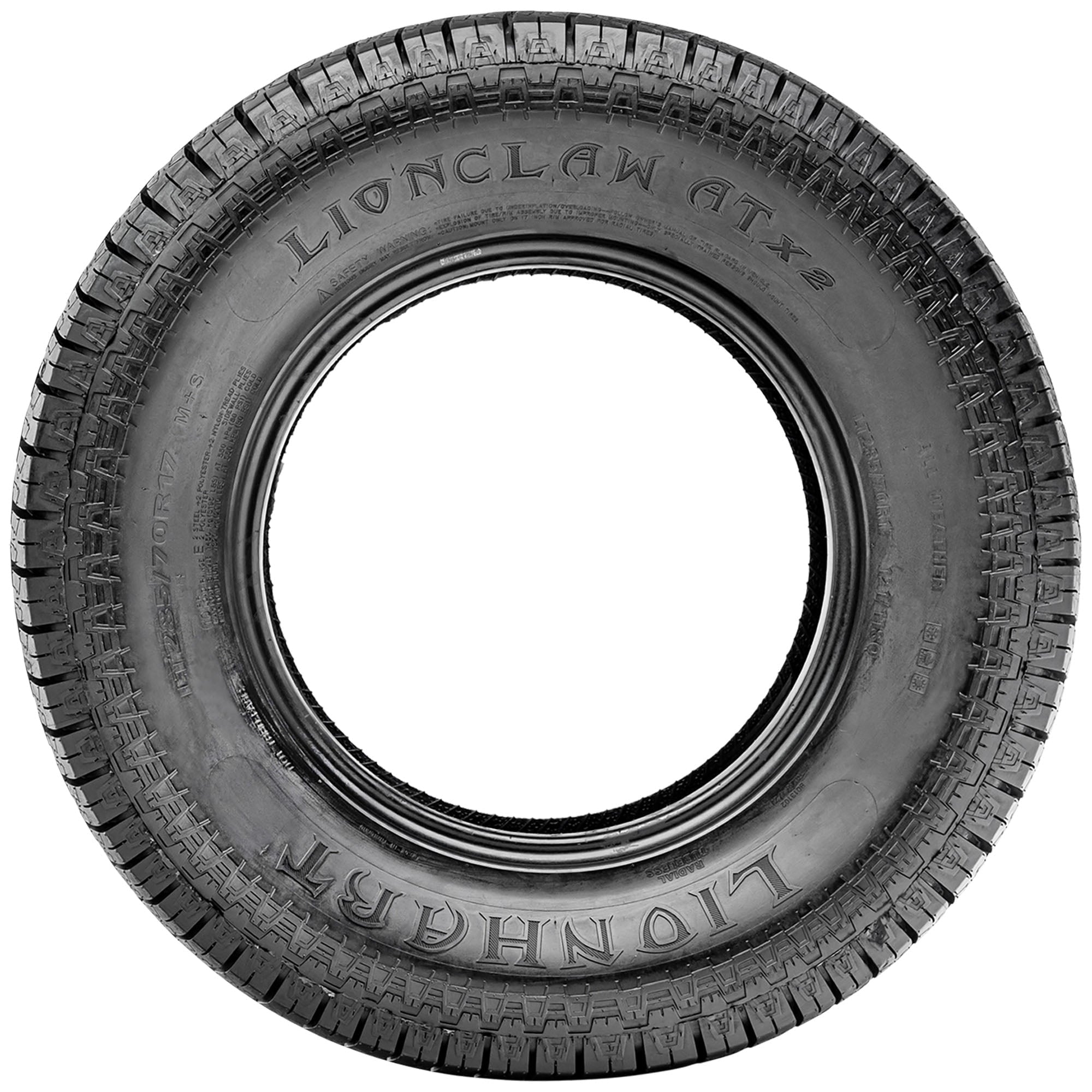 The Lionhart Lionclaw ATX2 is an all terrain, all season tire manufactured for SUVs and light trucks. The tire offers exceptional all weather traction. The symmetric ribbed pattern and the all season tire compound boost the dry, wet and winter weather road gripping ability. The tread elements find firm grip in all weather, while the compound maintains its flexibility even in colder temperatures to ensure a safer performance. The Lionclaw ATX2 offers a longer lasting tread life. The optimized tire footprint manages to equally spread out the forces of acceleration, cornering and braking across the entire tread area. The evenly distributed driving pressure avoids the possibility of uneven wear formations across the entire tread area, lengthening the tread life and the tire’s usability.
