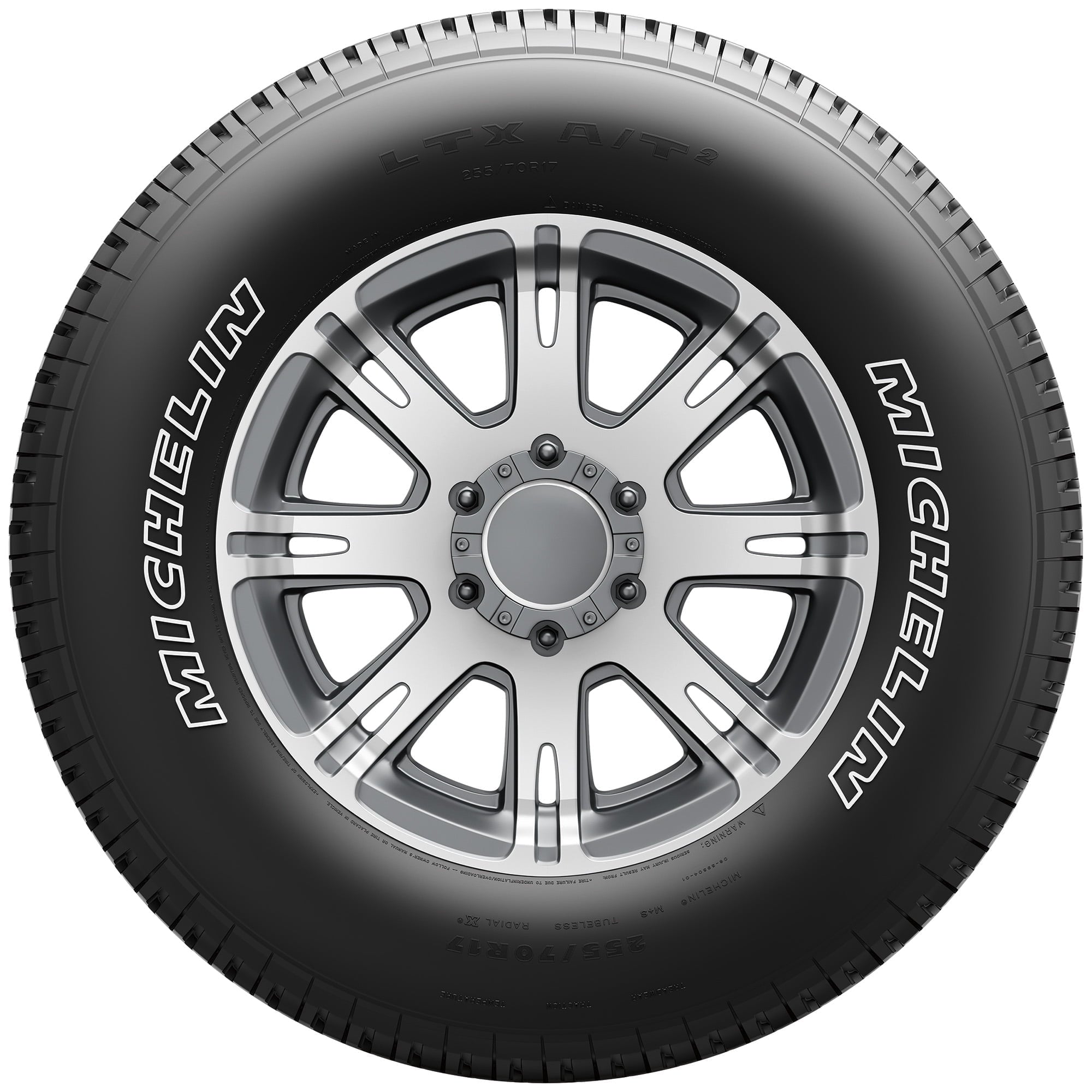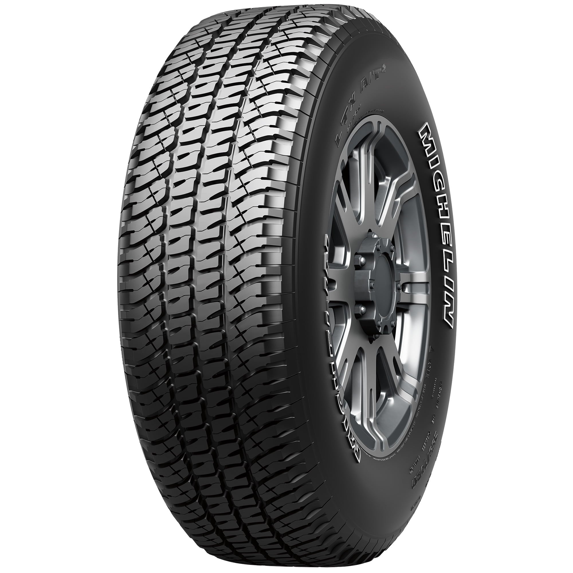 The LTX A/T2 is Michelin’s On & Off-Road All-Terrain tire designed to meet the needs of today’s recreational and commercial pickup, van and SUV drivers. It was designed to provide even wear, low noise and good fuel efficiency, even in demanding commercial applications while delivering the year-round traction and durability expected from rugged off-road tires without sacrificing the on-road comfort and handling expected of a Michelin tire. The LTX A/T2 features a special light-truck tread rubber compound molded into an independent tread block tread design featuring Michelin Biting Edges which are notched blocks in the tread pattern that enhance traction on dirt, mud, gravel, wet grass and snow. Michelin also provides a 60,000 miles tread life warranty for this tire.