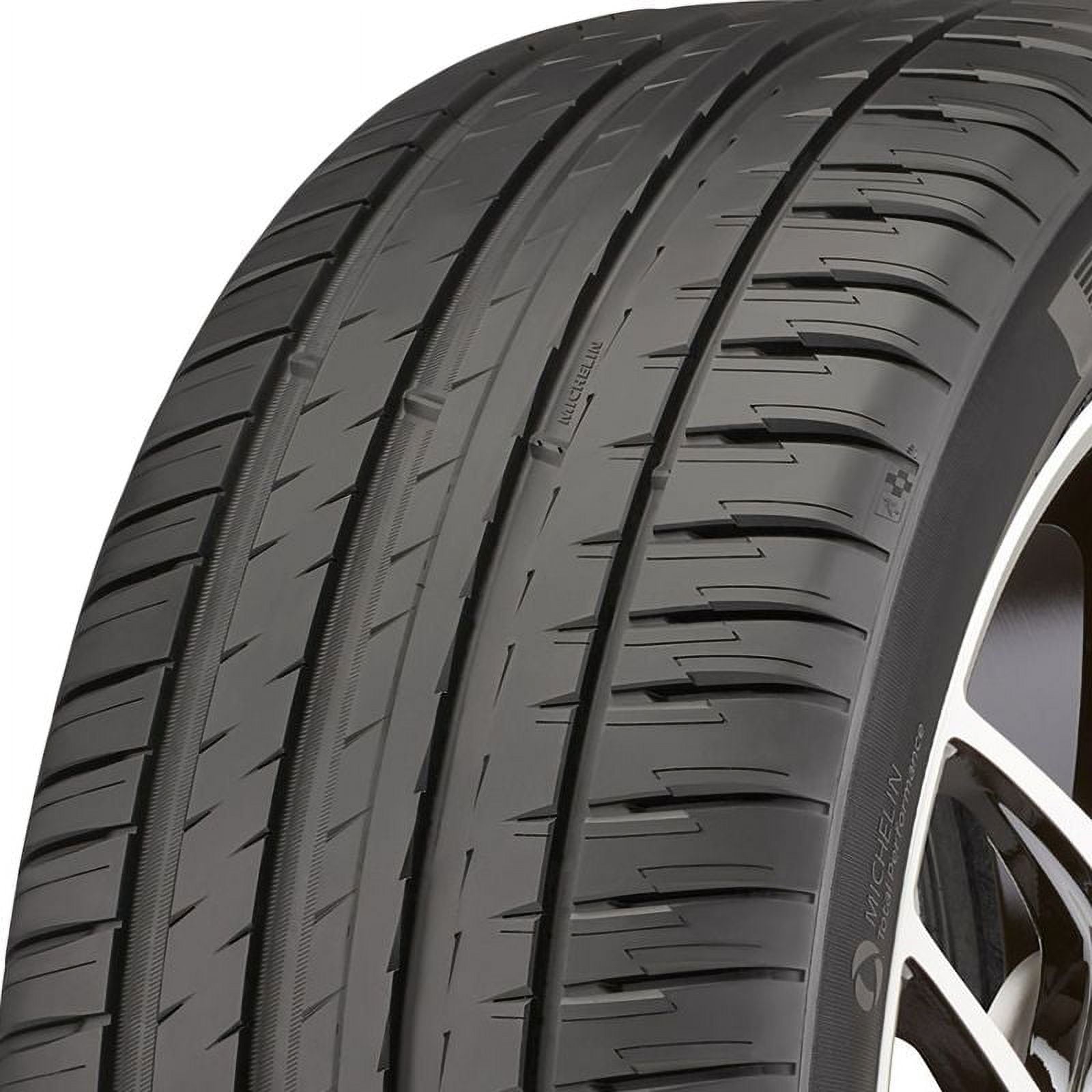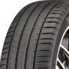• The Pilot Sport 4 SUV features a summer-focused tread compound that uses functional elastomers and thin silica for improved traction in wet and dry conditions and is molded into a performance-oriented, asymmetric pattern. High pattern stiffness and a rigid design help provide strong lateral grip in the dry, and the optimized notches enhance dry braking performance. The inboard side of the tread features a wider circumferential groove and greater pitch count for enhanced wet traction, while the deep, straight channels help evacuate water from the contact patch to improve hydroplaning resistance.