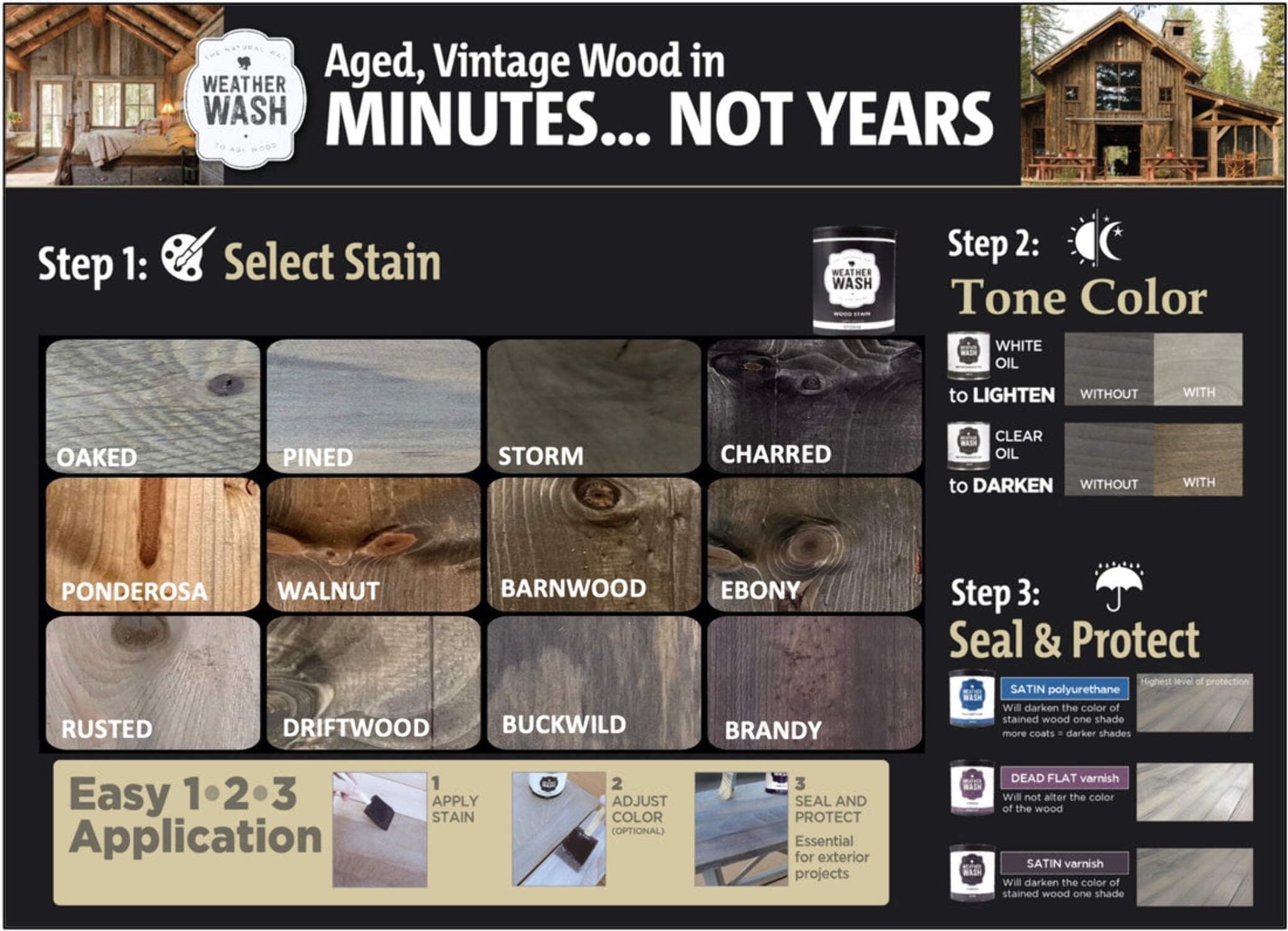 - Exact shade depends on wood species, check Weatherwash color chart.