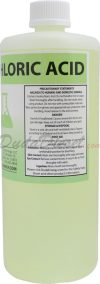 Hydrochloric acid is a clear, colorless, highly pungent solution of hydrogen chloride in water. It is often and commonly used in concrete cleaning. It is also often used for the pickling of steel, where rust/iron oxide is removed prior to further processing. It can also be used to make solutions for Soap Titrations and is commonly used in the production of PVC.