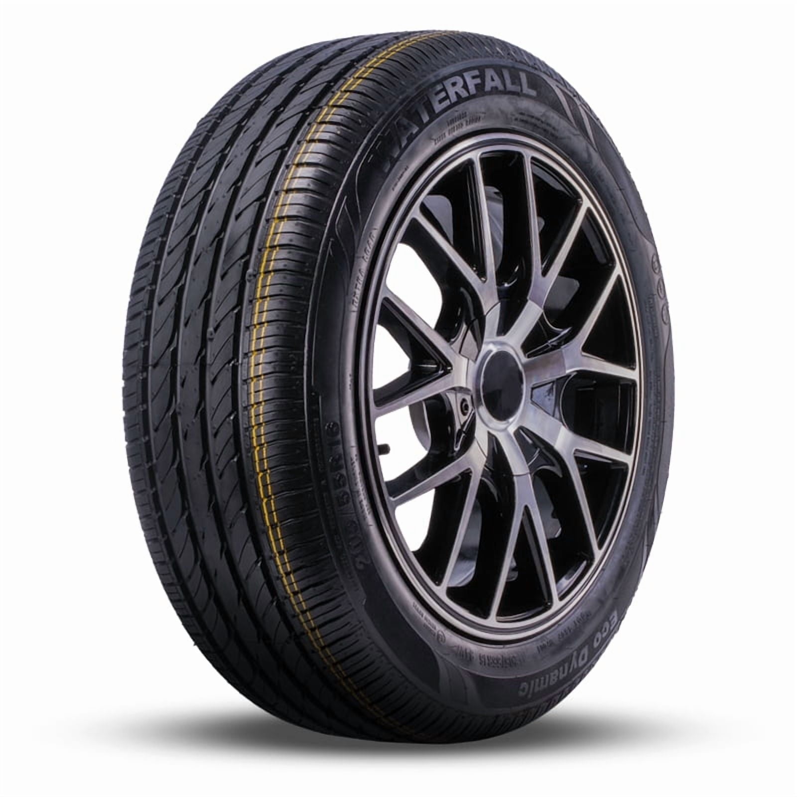 The Waterfall Eco-dynamic is an All-Season Performance tire designed for passenger vehicles, including coupes and sedans. This tire provides excellent dry and wet land handling and steering capability. Strengthened carcass design improves the tire loading capability. It is also backed by a 45,000 mile treadlife warranty. The Eco Dynamic features a four broad circumferential groove design that enhances drainage efficiency on wet ground to strengthen driving safety. Narrow shoulder block lateral grooves and four main central grooves for all-season traction. The 5 pitch design and computerized tread pattern is arrangned to decrease noise and enhance comfort on the road.