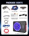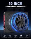 10″ 1200W Slim Under Seat Powered Car Subwoofer Hideaway Subwoofer with Complete Mounting Wire Kit, Car Truck Audio Subwoofer Built in Amplifier Sub Amp Combo, with Blue LED Ambient Light.Durable and Versatile: Crafted with premium material to ensure longevity. Compatible with a wide range of car, our subwoofer is built to deliver consistent performance, ensuring exceptional bass enhancement and sound quality for any vehicle.Built-in Amplifier for Enhanced Performance: Integrated amplifier ensures superior sound quality and efficiency, eliminating the need for a separate amp while maximizing bass output for an immersive audio experience.