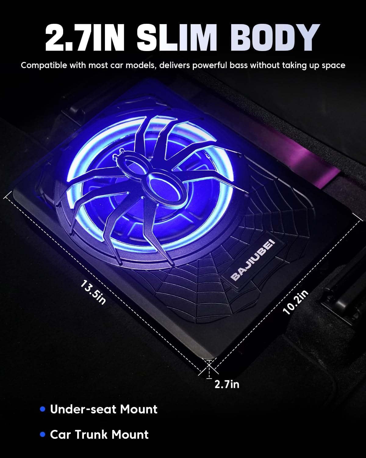 - Powerful & Compact Design: Delivering 1200W peak power, this slim under-seat powered subwoofer offers deep, punchy bass in a compact design that fits effortlessly under most car or truck seats without compromising space.