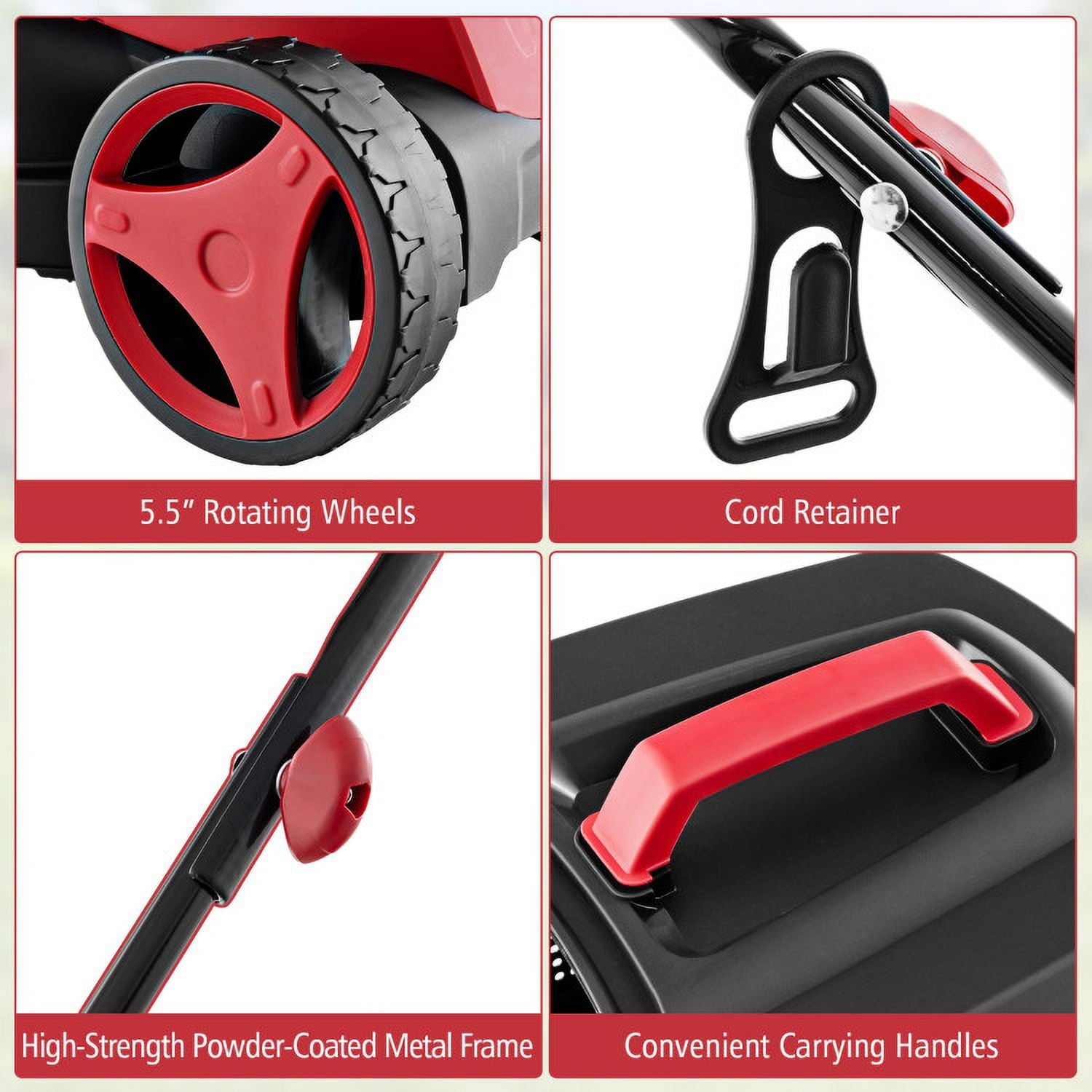● 3 Adjustable Height Position: Features a user-friendly 3 height adjustment system of 1″, 1.8″ and 2.5″, this useful mower enables you to customize your lawn to suit your preferences. Meanwhile, the simple height adjustment structure provides easy switching between positions. Additionally, the 5.5″ smooth wheels facilitate high mobility for various places.