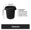 The 10 Gallon Black Round Feed and Seed Storage Container is designed for versatile storage needs, whether for agricultural, gardening, or household use. Made from durable plastic, this container ensures long-lasting performance and resistance to wear. Its airtight design helps maintain freshness and prevents moisture from spoiling contents. The round shape allows for easy stacking and space-saving storage. Ideal for storing feed, seeds, pet food, or other dry goods, this container is a practical solution for organizing your space. Dimensions: 18 inches in height and 14 inches in diameter. The lightweight yet sturdy construction makes it easy to move while keeping contents secure. Suitable for indoor or outdoor use, this storage bin is a must-have for anyone needing reliable and efficient storage.