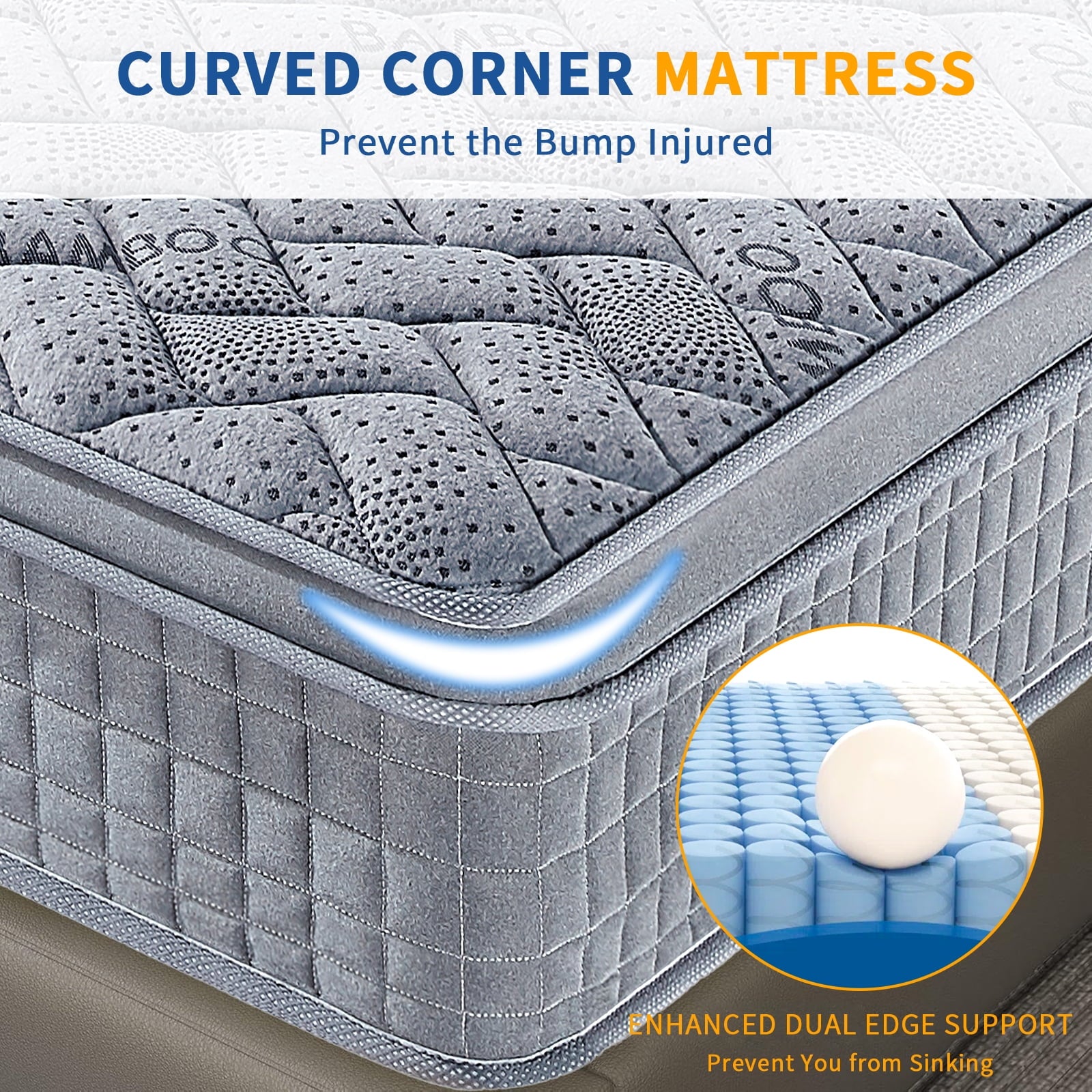 - Medium Firmness: This 10-inch and 12-inch medium-firm hybrid mattress, head-to-toe support.It caters to various sleeping preferences with its balanced combination of firmness and cushioning.The mattress edges are reinforced with strengthened spring coils to enhance edge support and prevent sagging.