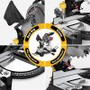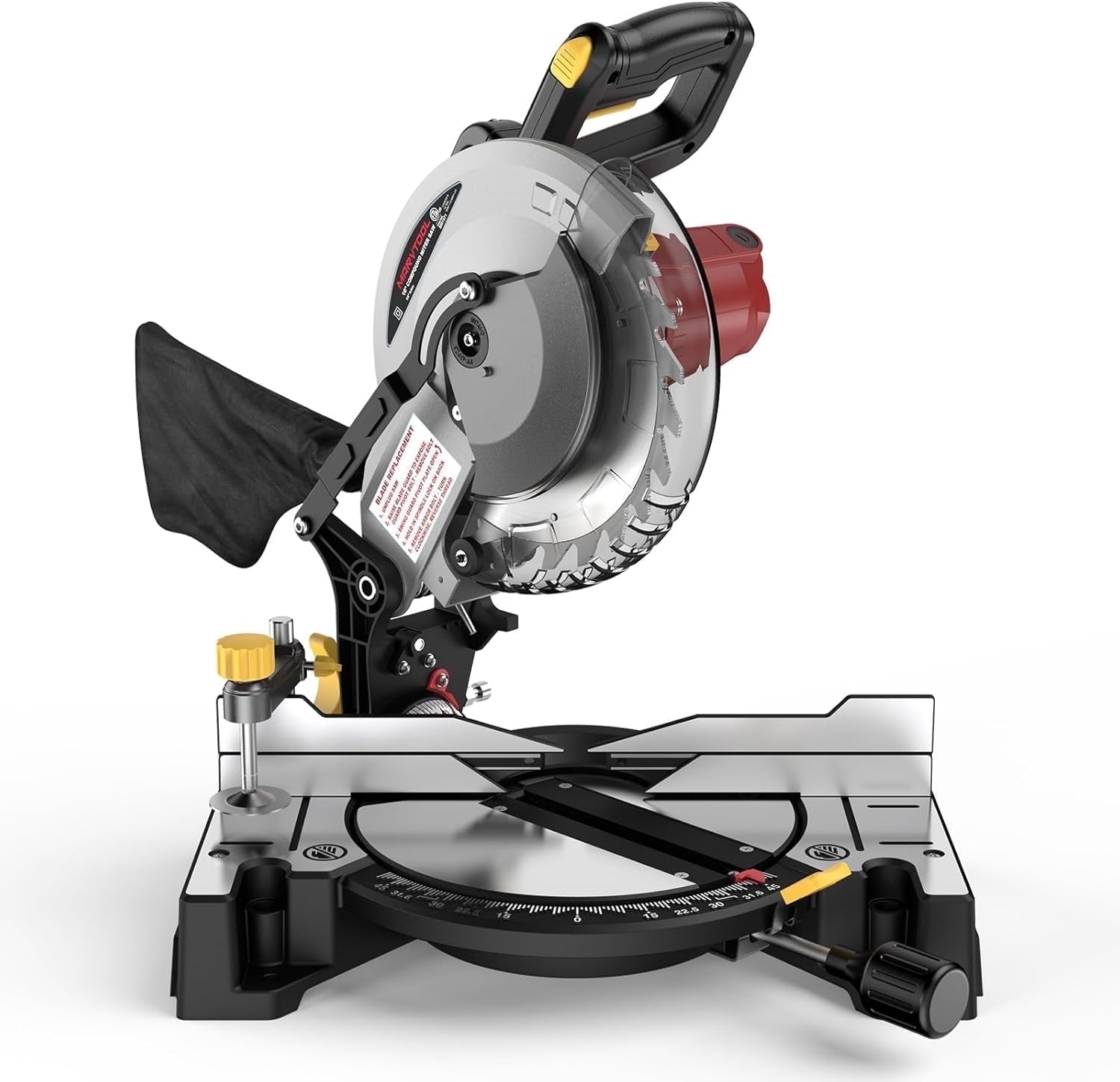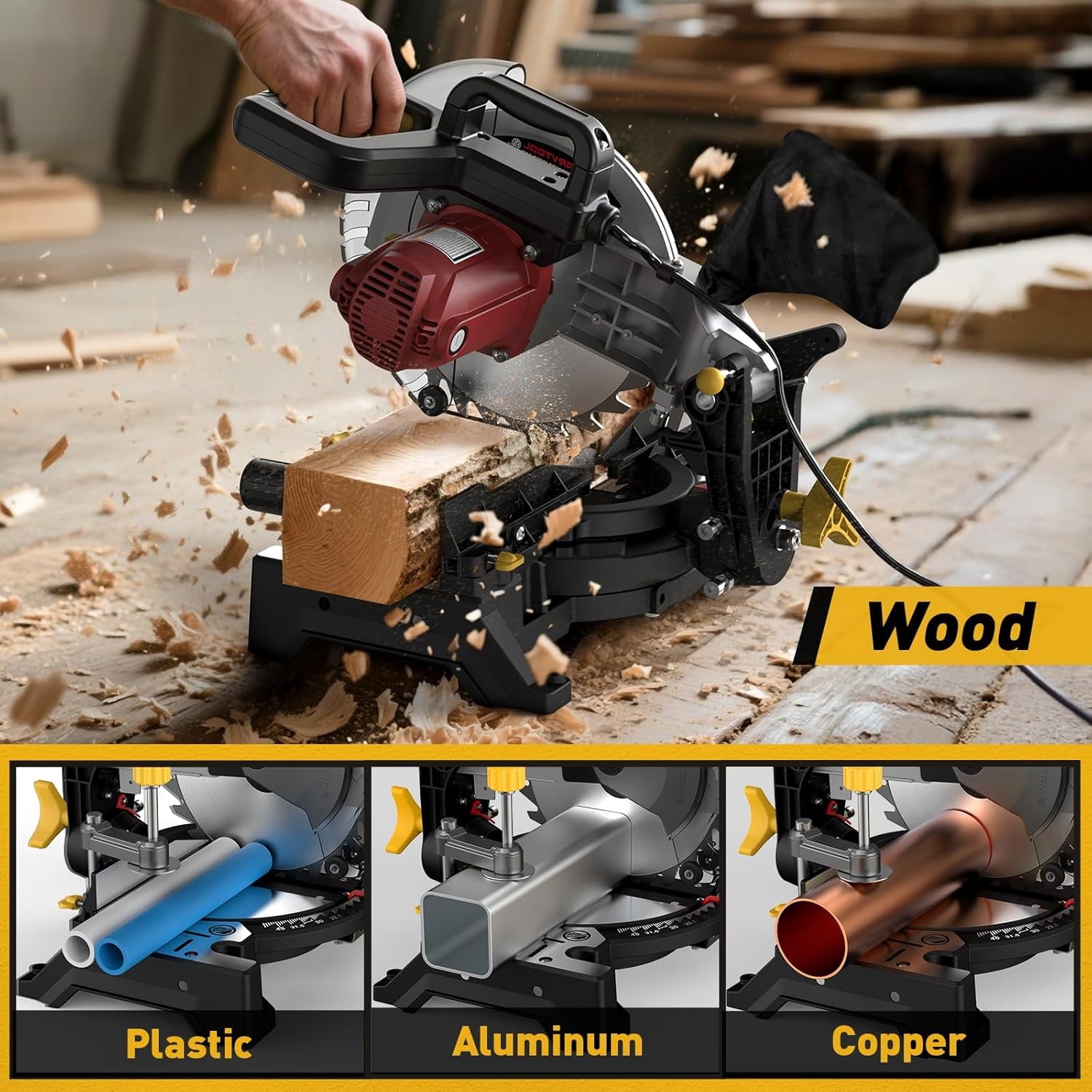 This 10-inch compound miter saw features a powerful 15-amp motor that delivers a 5,000 RPM no-load speed, allowing it to effortlessly cut through various materials like wood and metal. Designed for both safety and precision, it includes a transparent blade guard for clear visibility, a vise clamp to secure your work, and a dust collection bag to keep your workspace clean. Its versatile cutting capabilities offer left miter angles from 0 to 45 degrees and bevel cuts from 0 to 45 degrees, accommodating a wide range of projects. Weighing just 20.5 pounds, this saw is lightweight, compact, and portable, with a Release Knob that locks the head for easy storage and transport.