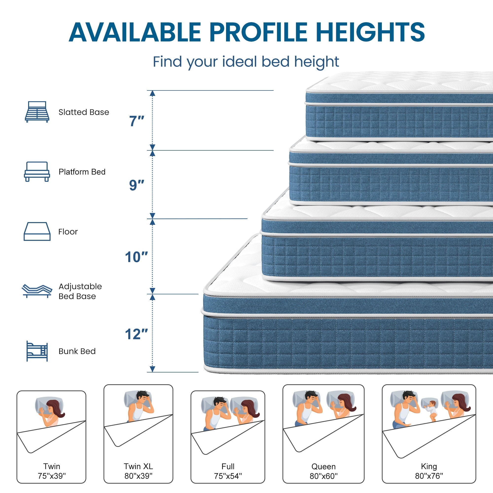 - 🔵Hybrid mattresses-High-quality foam and individual coils