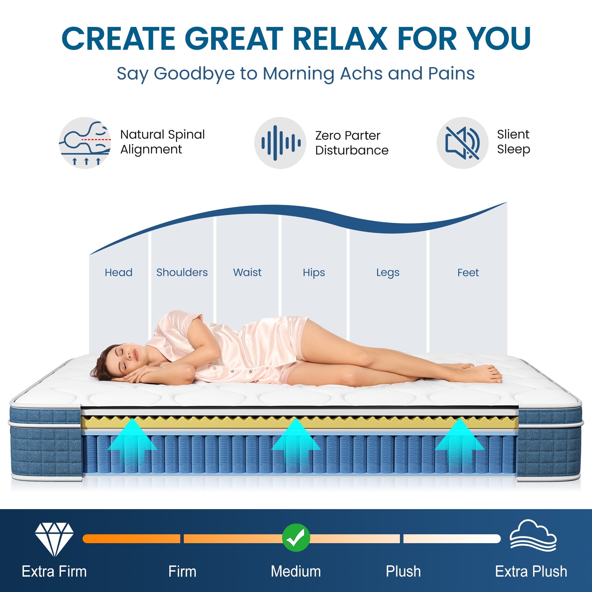 - 🟢With exceptional Motion Isolation, our mattresses are perfect for couples or light sleepers. Each coil operates independently, minimizing disturbances caused by movement, so you and your partner can enjoy undisturbed nights of perfect support and relaxation.