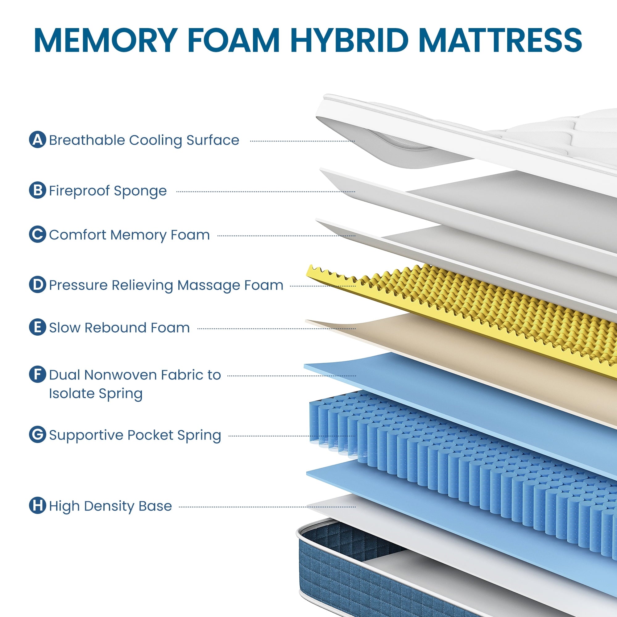 - 🟠Our Hybrid mattresses feature an innovative construction with high-quality foam and individual coils that gently conform to your body’s contours. This unique design reduces pressure points, ensuring deep relaxation for all types of sleepers, whether you are a side sleeper or prefer lying on your back.