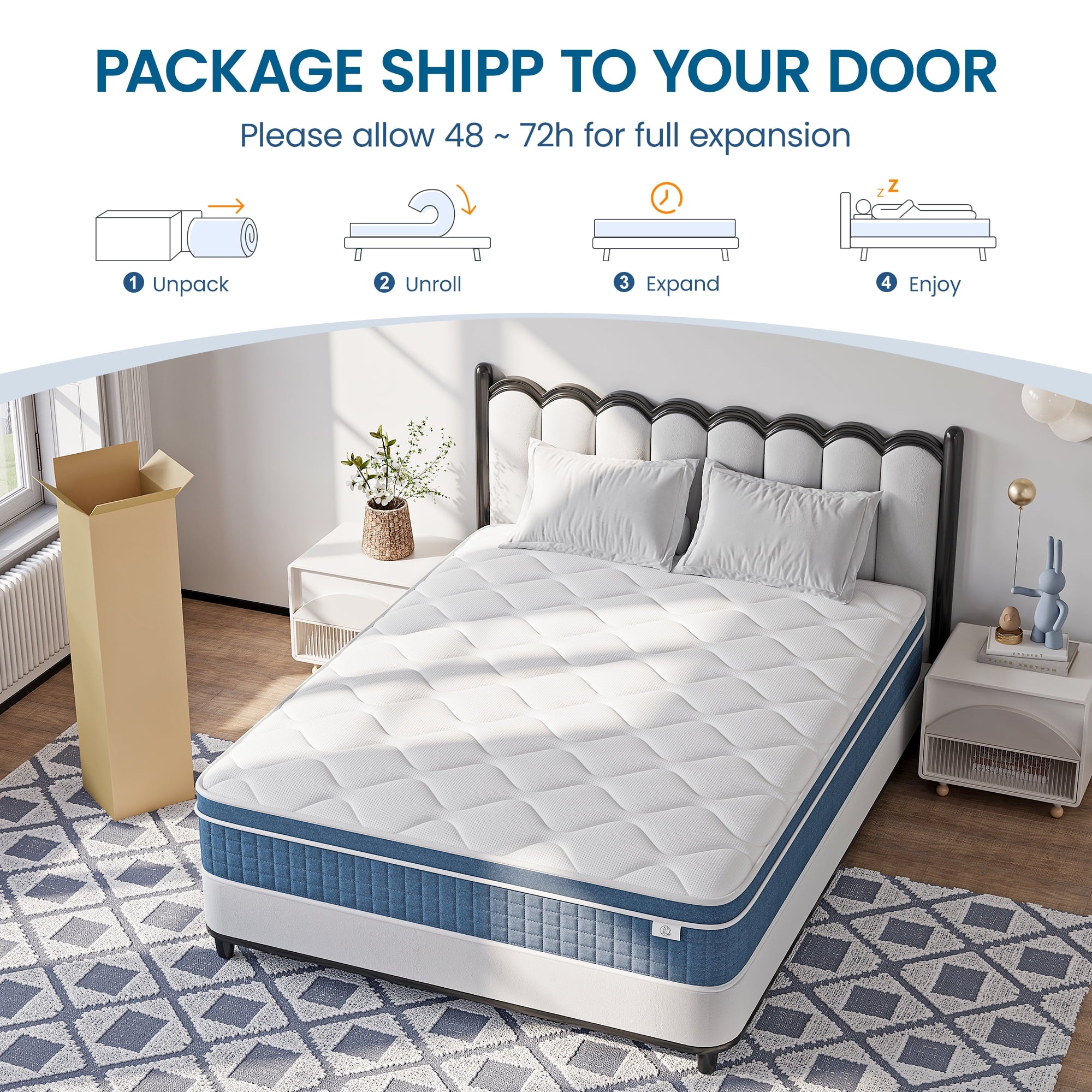 - 🔴Please wait an additional 48-72 hours in a room-temperature environment for it to fully and properly inflate after expanding your firm mattress.