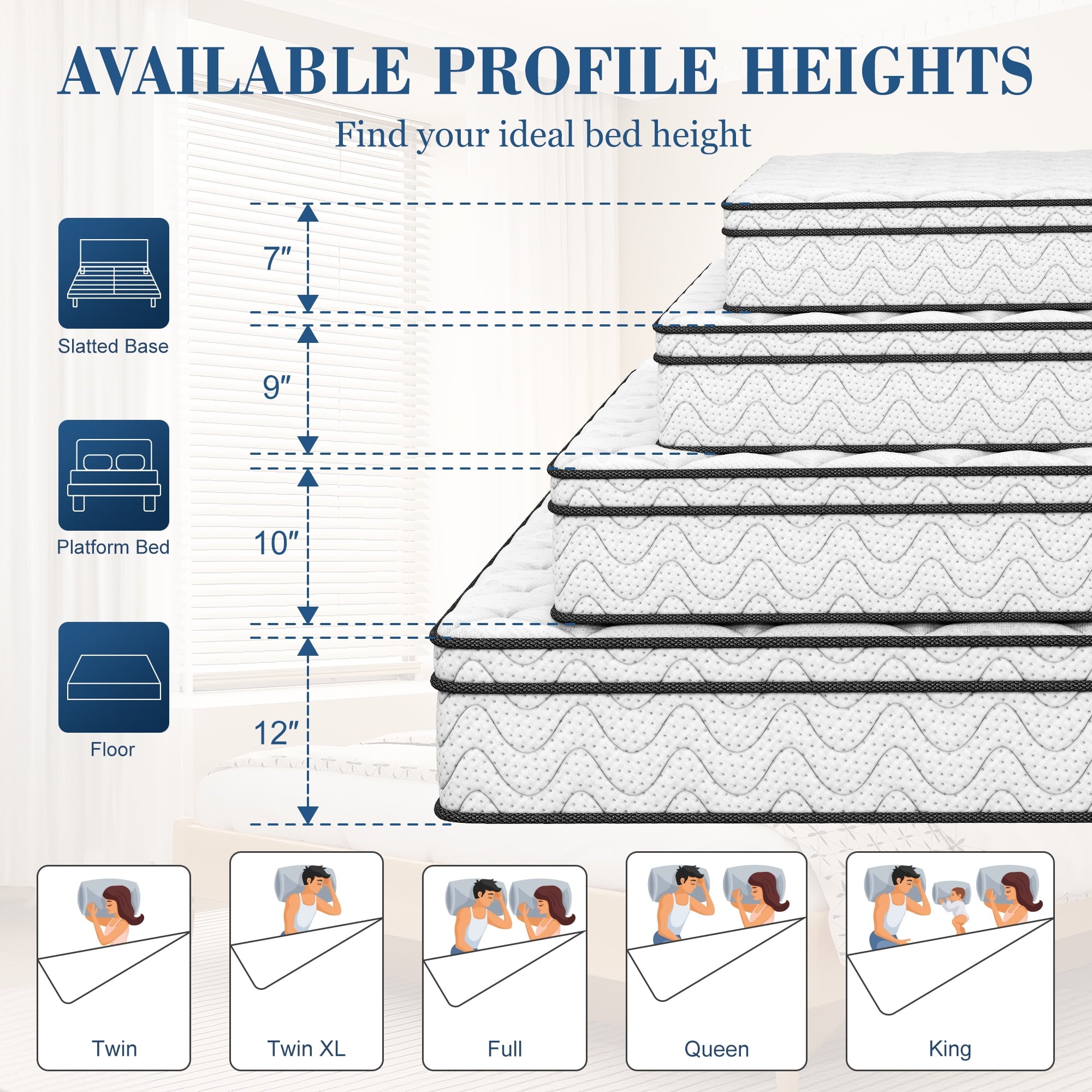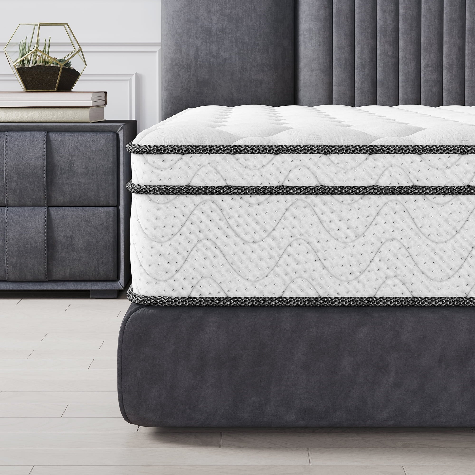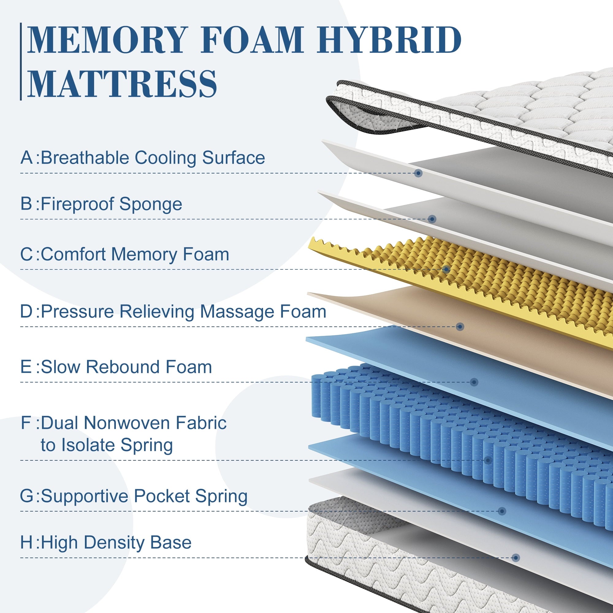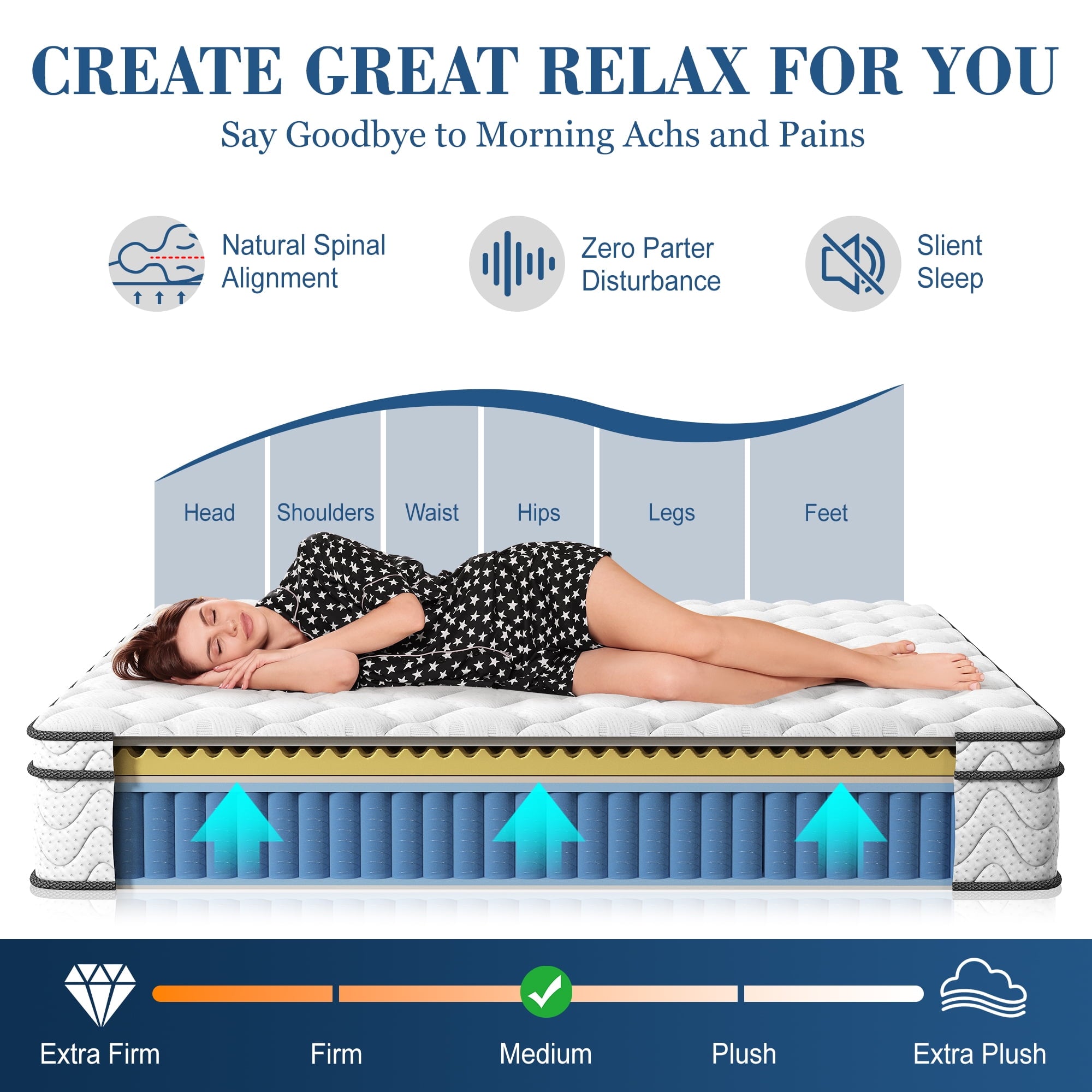 • 【Ultra Quiet】Built-in high quality Individual pocket spring and slow springback foam, can effectively absorb the noise and vibration caused by tossing and turning when sleep, no waking up by the noise, not disturb companion and effectively reduce your turning times, let you sleep soundly and peacefully