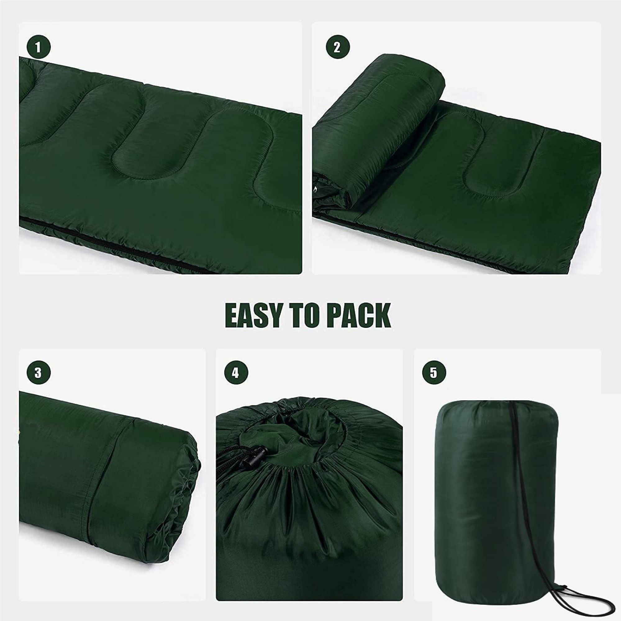 SAFE KEEPING FOR SAFE SLEEPING – Anywhere! These durable all terrain envelope style sleeping bags are designed for a warm, comfortable sleep in both warm and cool weather after a long day of hiking, hunting, fishing, and other outdoor activities. Your portable, ultra-light sleeping bag remains comfortable even on undesirable rough and uneven ground. Each sleeping bag comes with its own portable compression sack with backpack strap for easy carrying.