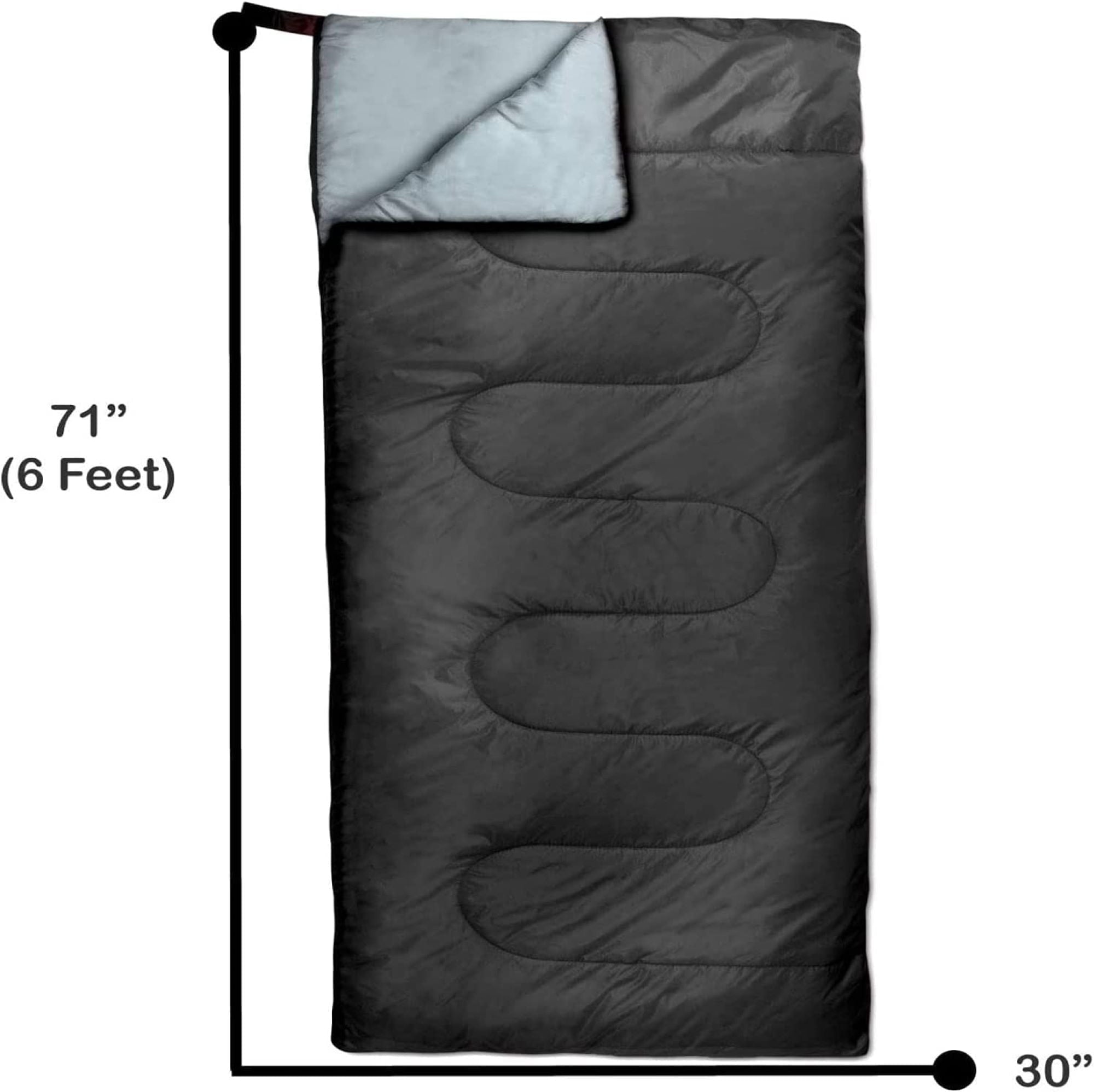 • ONE SIZE FITS MOST: Zipper sleeping bags measure 71”L x 30”W and are perfect for teens or kids (boys and girls both), men and women up to 6 feet tall!