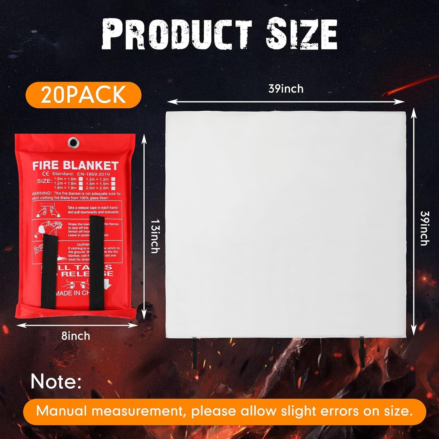 Be prepared for any fire emergency with this 10 Pack of Fire Blankets. Made from 100% glass fiber fabric, these fire blankets are designed to withstand temperatures up to 550°. Measuring 39”x39”, they provide ample coverage to quickly extinguish small fires or to protect yourself during an escape. Ideal for use in homes, kitchens, offices, camping, and vehicles, these fire blankets offer crucial safety and peace of mind. Easy to use and store, they are essential for any emergency preparedness kit.