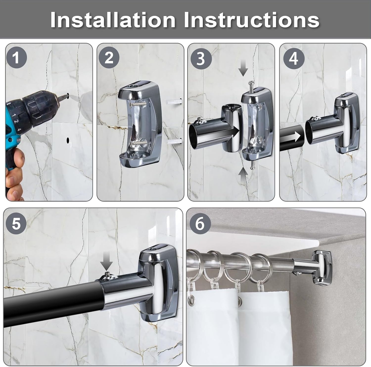 It swivels from 0-180 degrees to easily adapt to different installation angles, allowing you to enjoy DIY shower curtain installation experience.