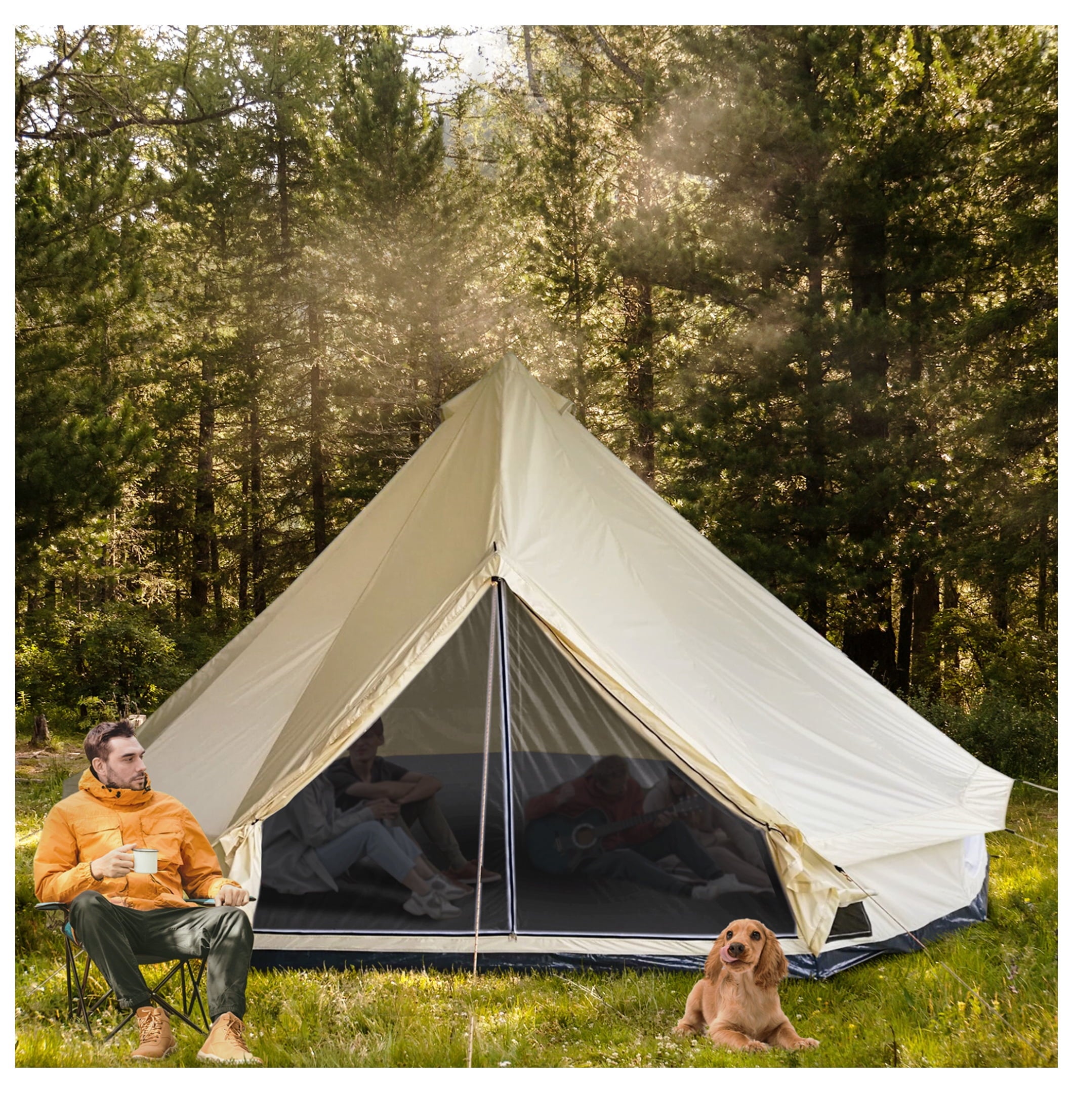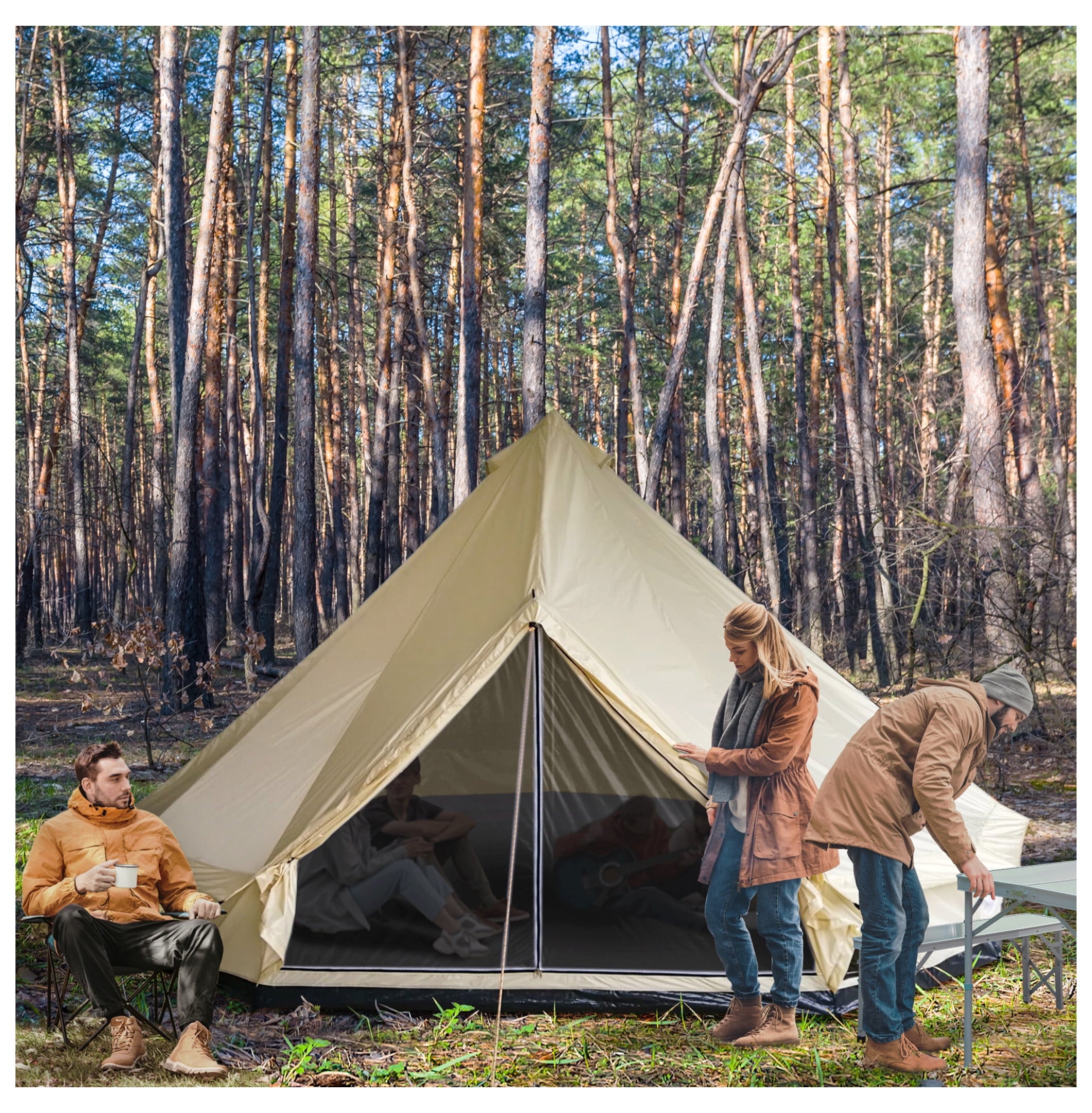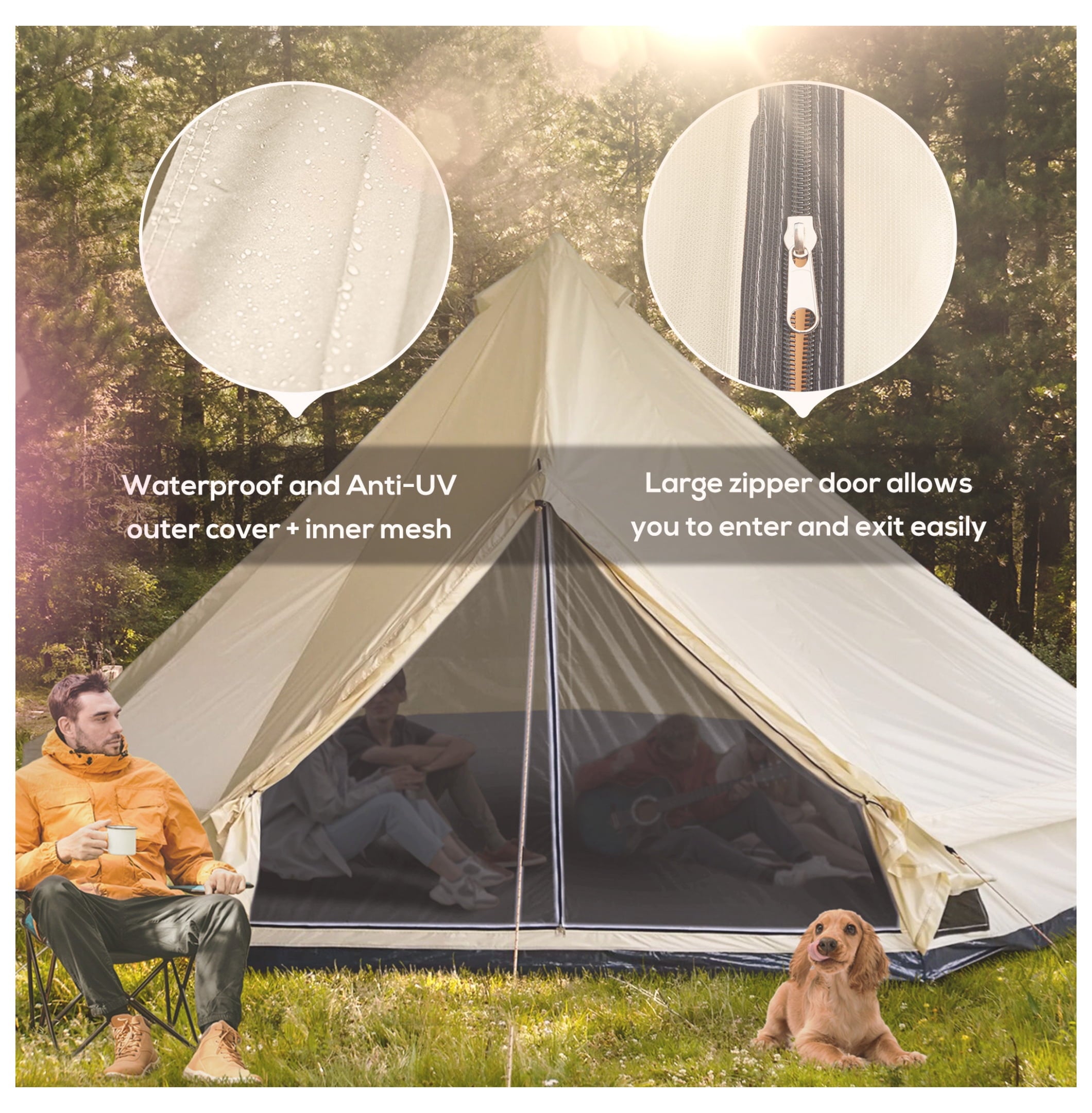 - Outdoor Ready: Use our yurt tents for camping in the great outdoors. The tent is made with solid polyester fabric, making it suitable for outdoor use. The zippered mesh door provides excellent ventilation to cool down the tent on hot summer days.