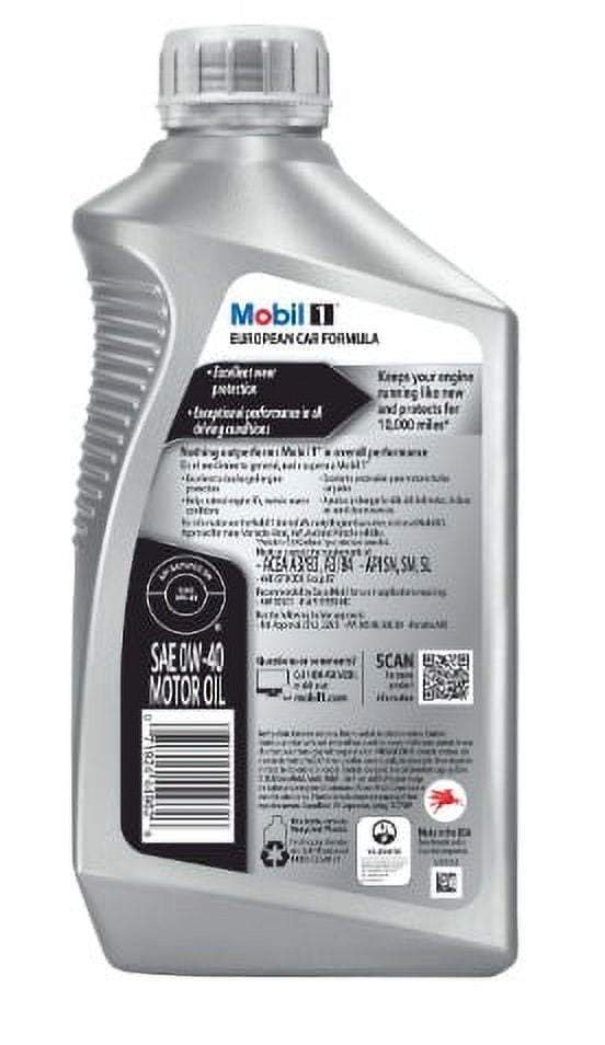 Mobil 1 European Car Formula 0W-40 helps to extend engine life for vehicles of all ages better than conventional oil.