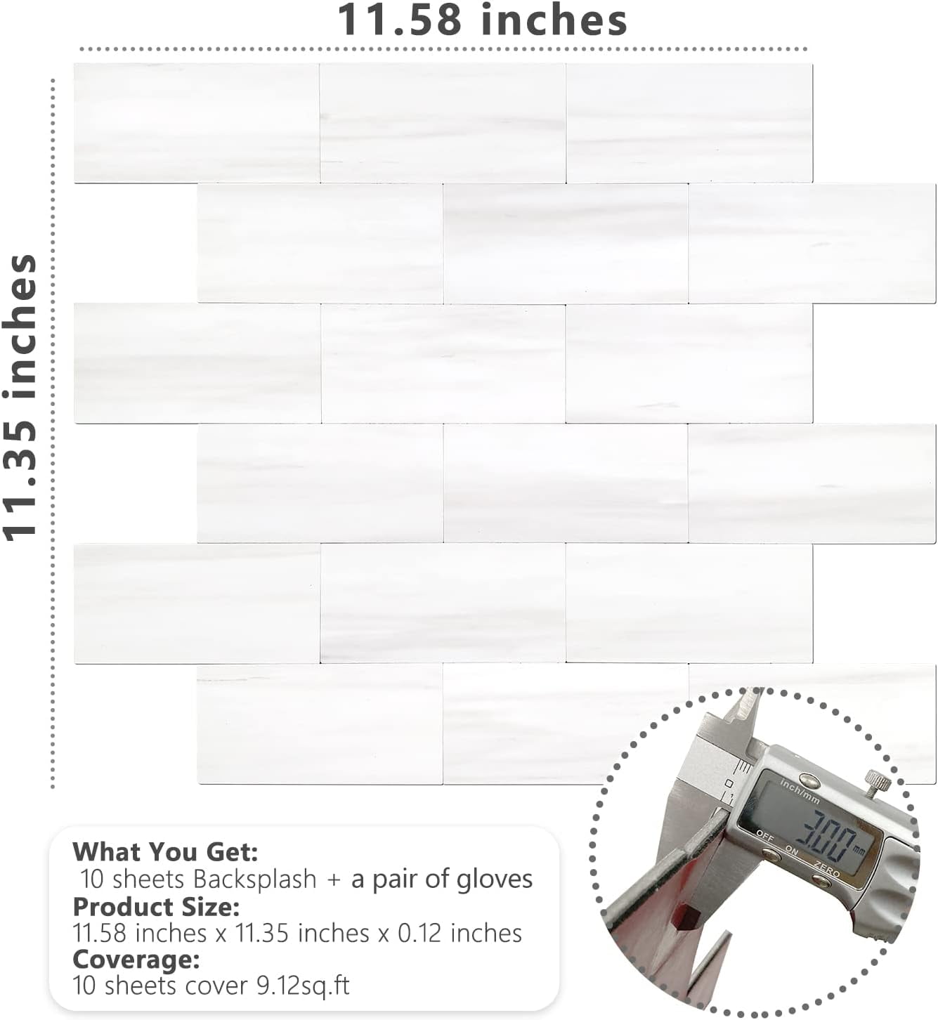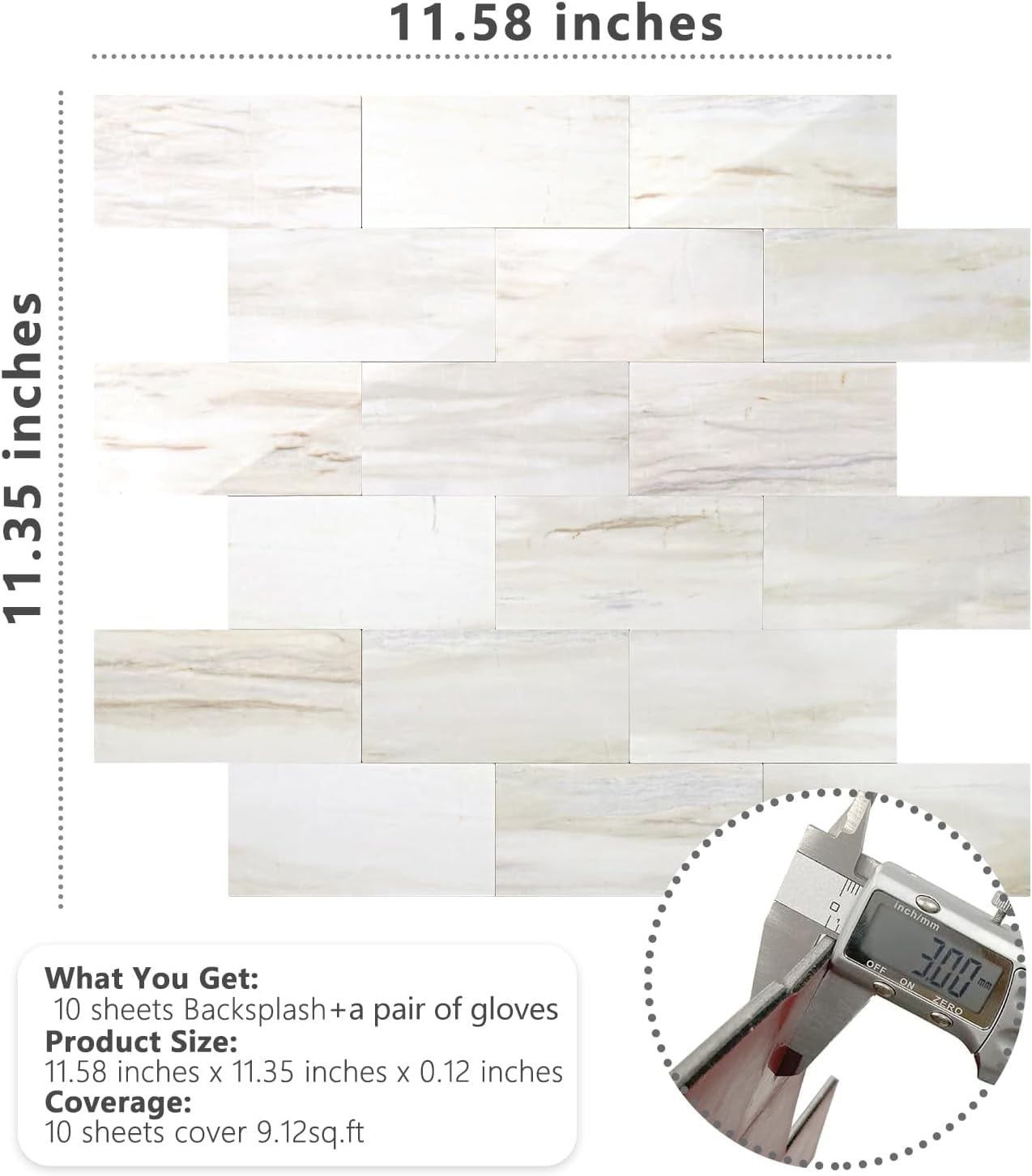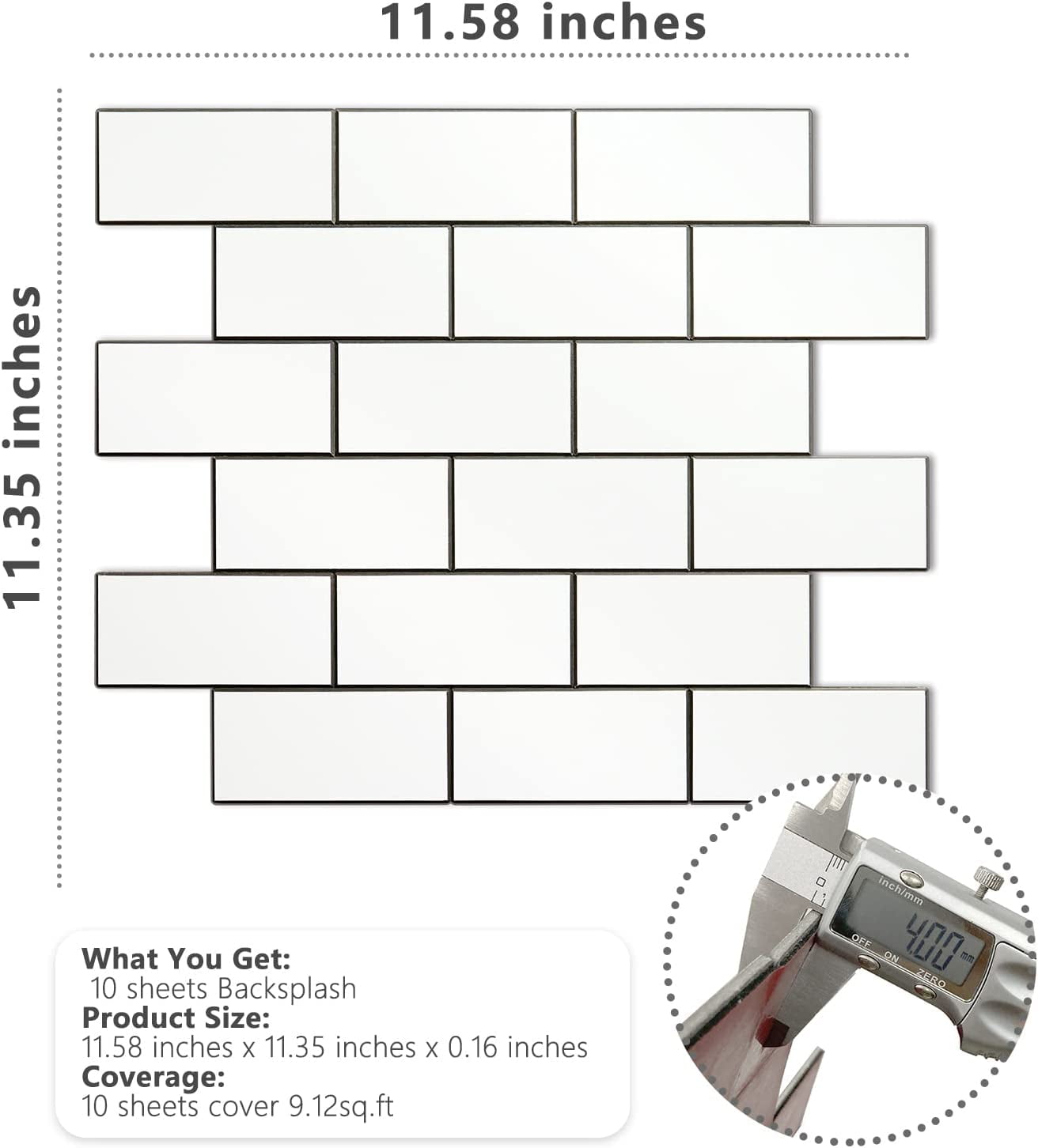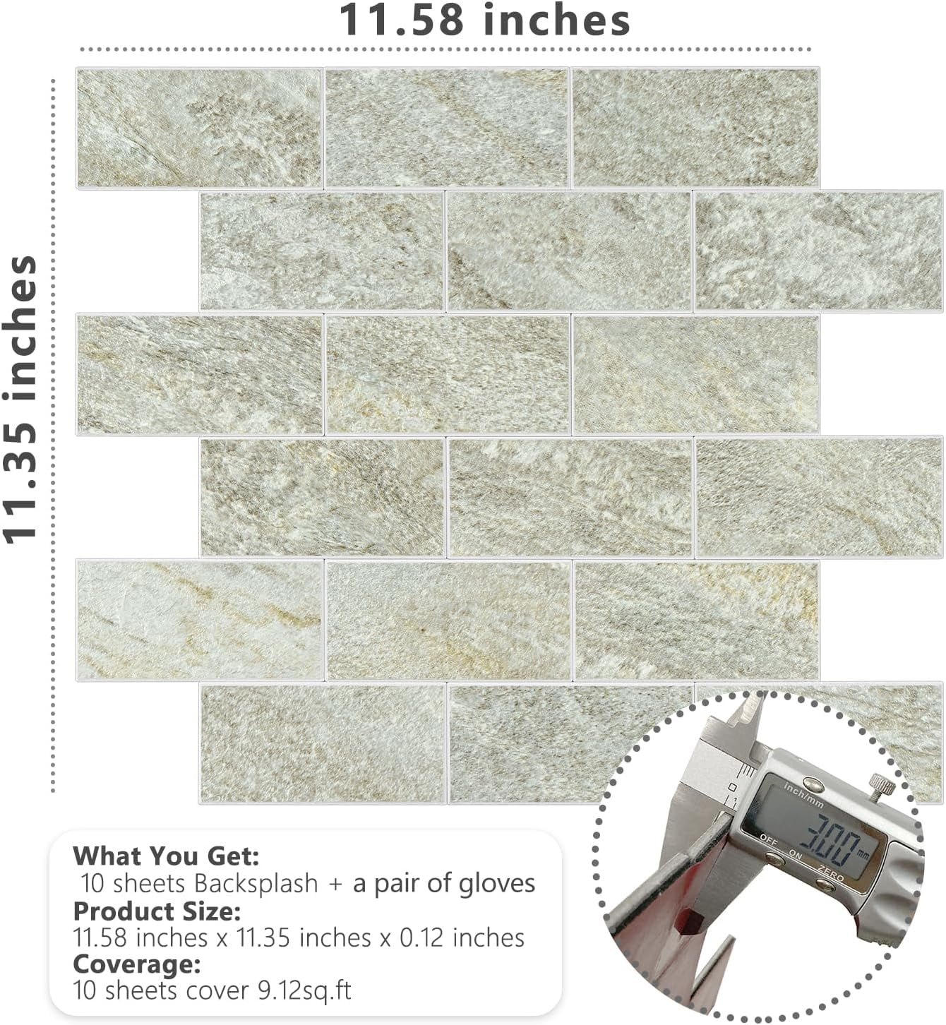 EASY INSTALLATION: Easy Peel and stick, just interlock one by one. No extra glue, no grouting, without mess. Easy to cut with sharp utility knife or hand saws, design for effortless installation. Usually 2 pack would made a kitchen backsplash done.