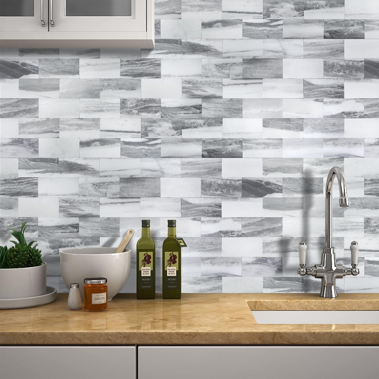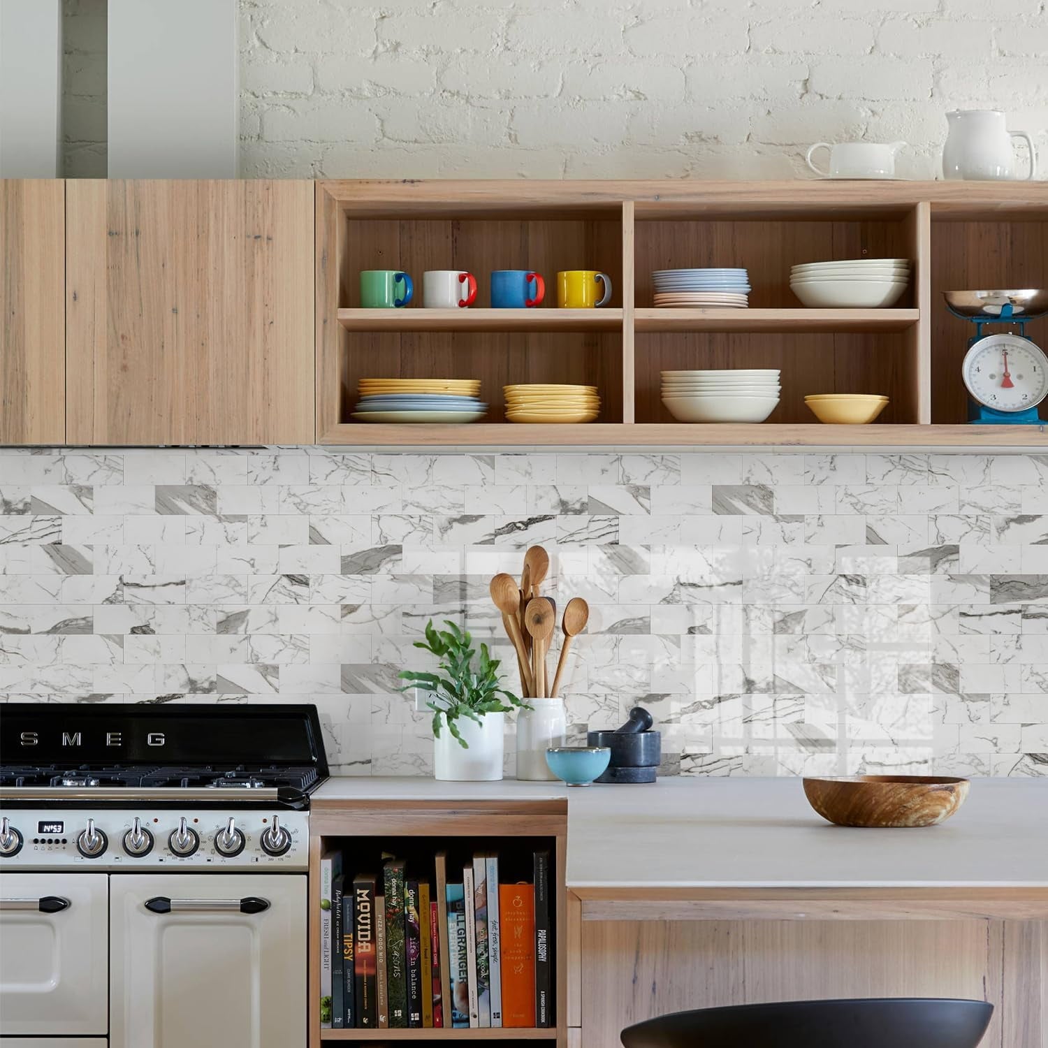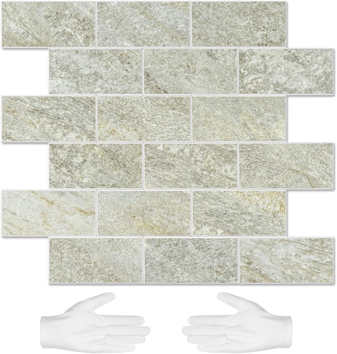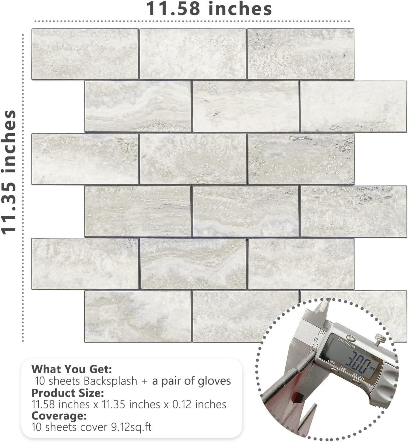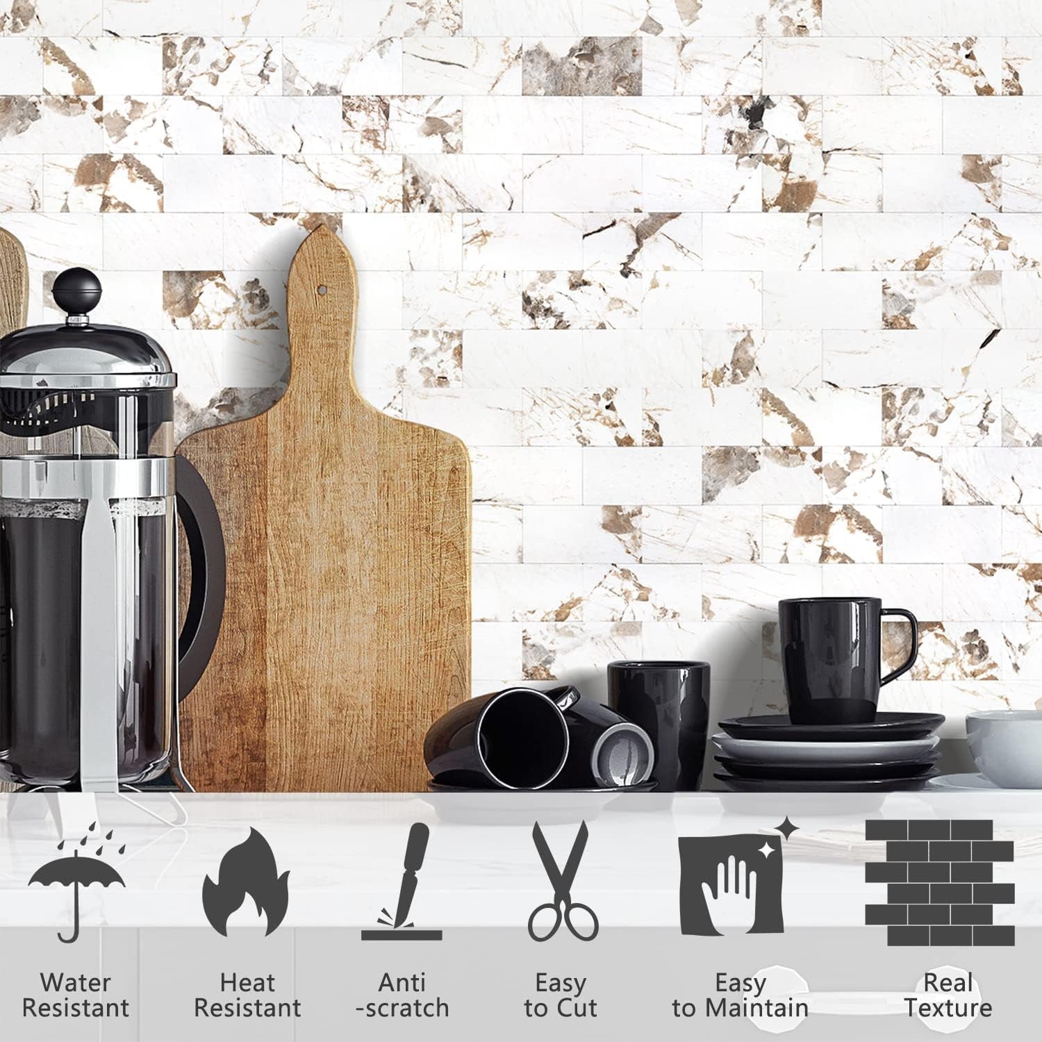 EASY INSTALLATION: Easy Peel and stick, just interlock one by one. No extra glue, no grouting, without mess. Easy to cut with sharp utility knife or hand saws, design for effortless installation. Usually 2 pack would made a kitchen backsplash done.