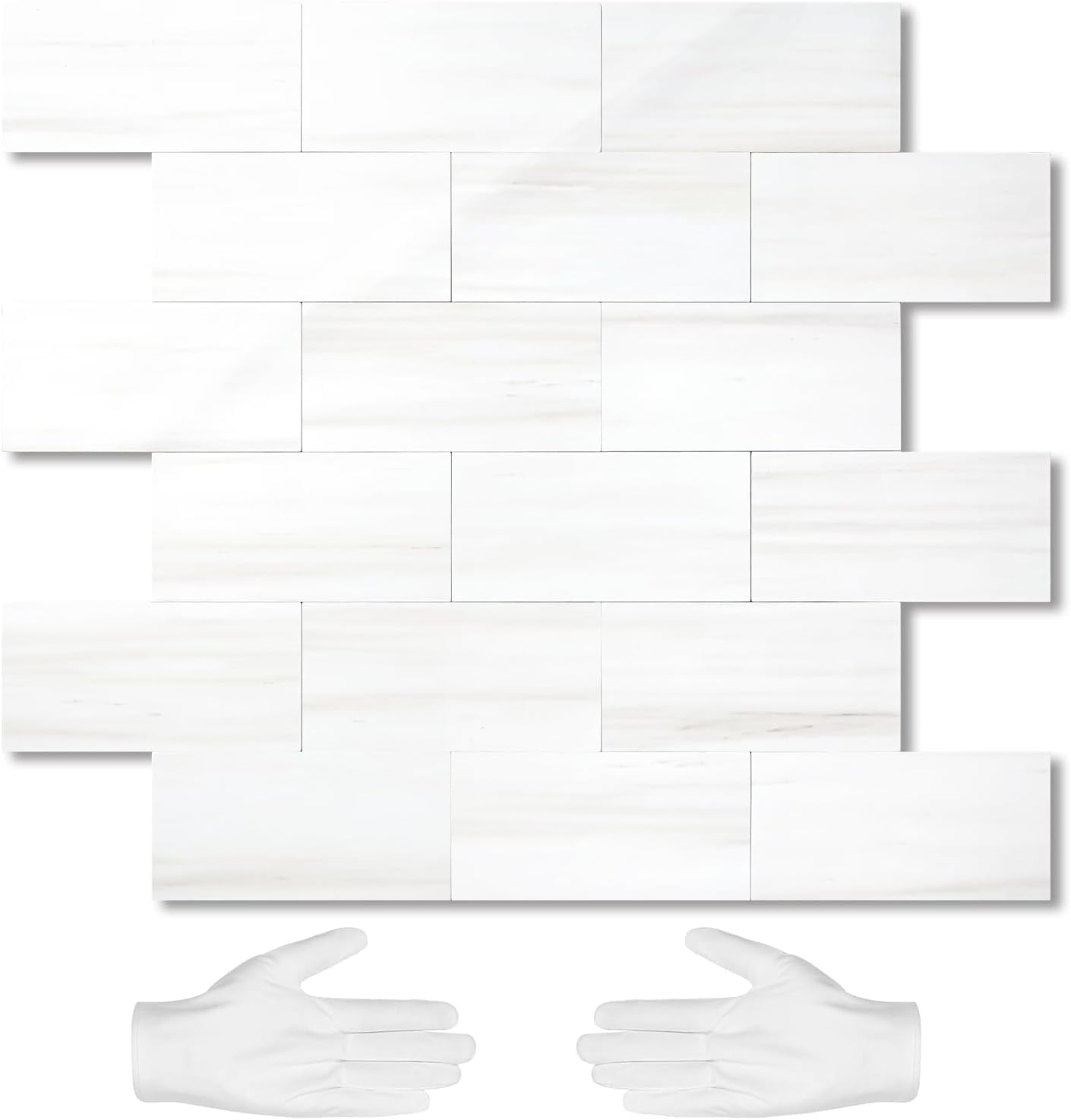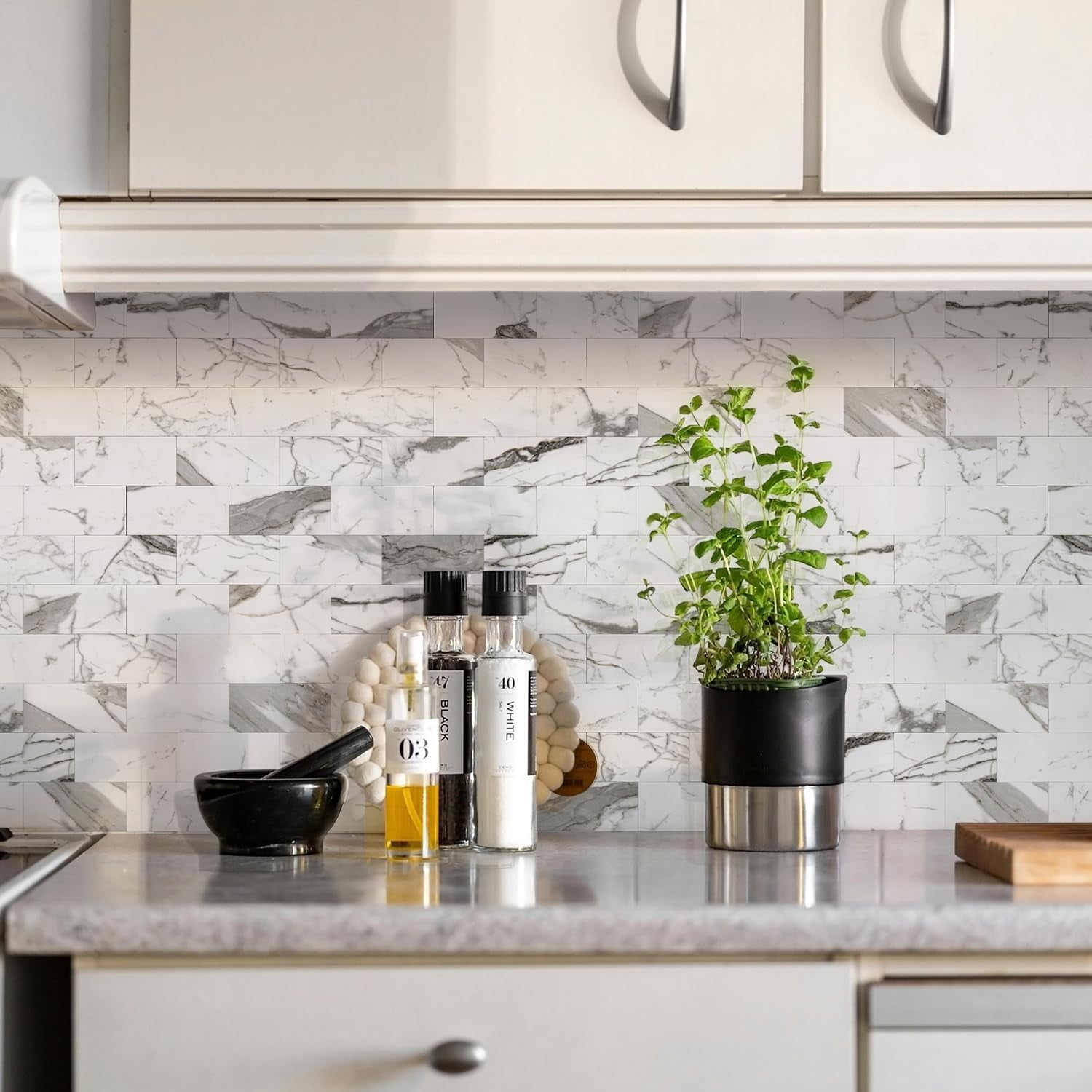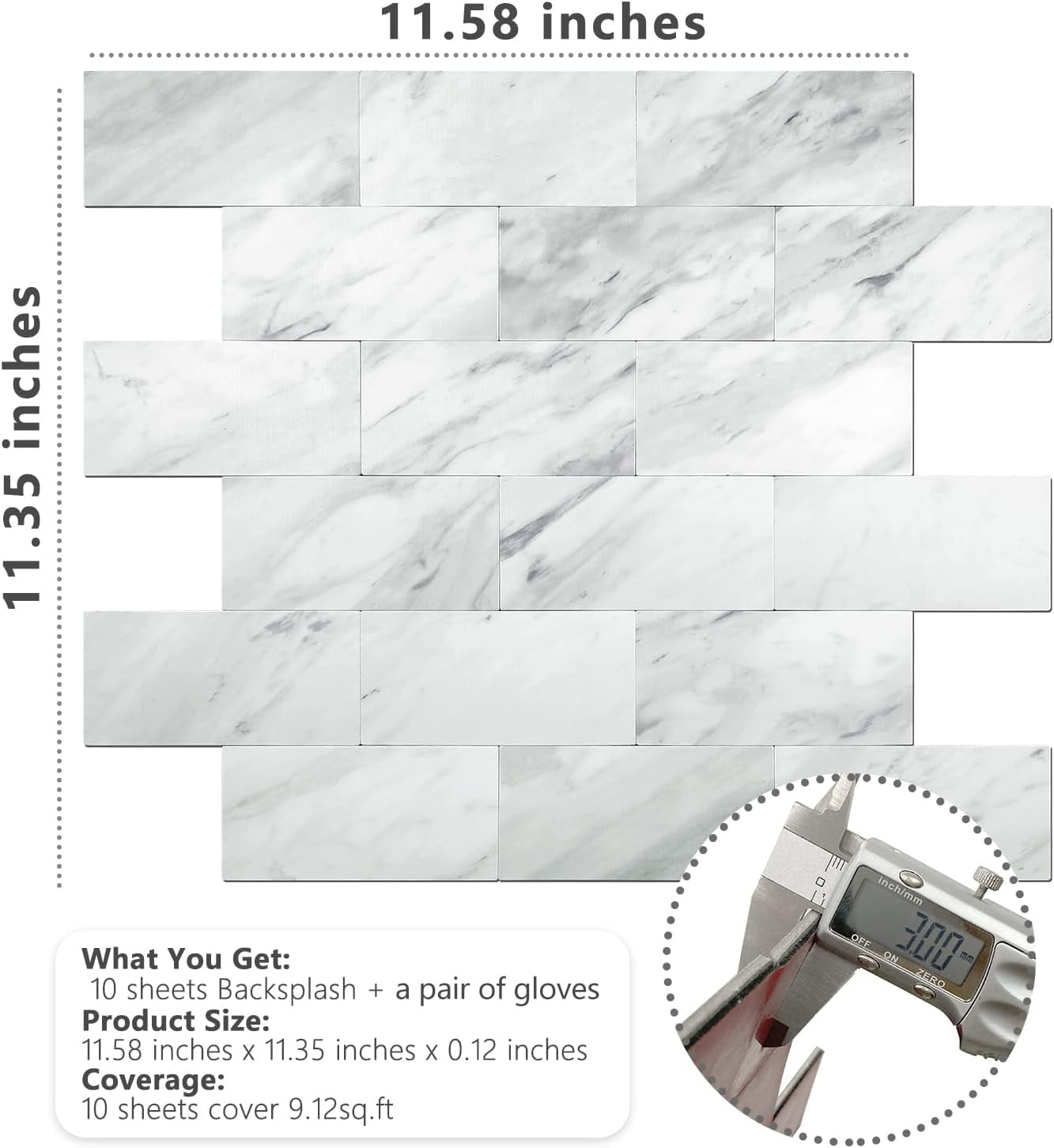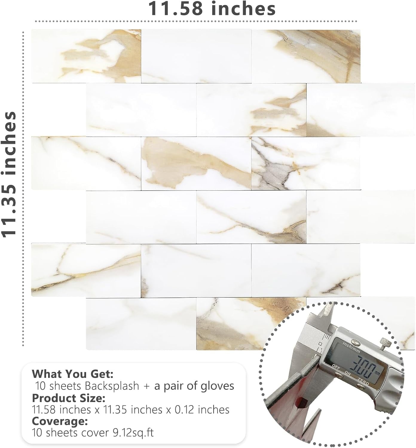 EASY INSTALLATION: Easy Peel and stick, just interlock one by one. No extra glue, no grouting, without mess. Easy to cut with sharp utility knife or hand saws, design for effortless installation. Usually 2 pack would made a kitchen backsplash done.
