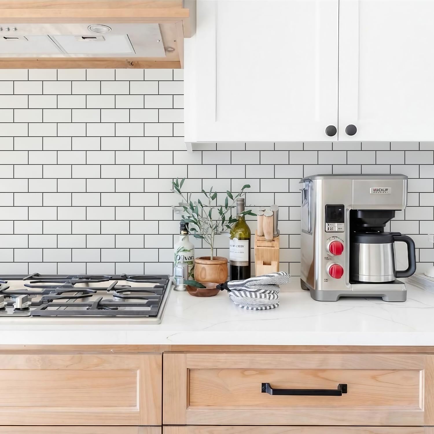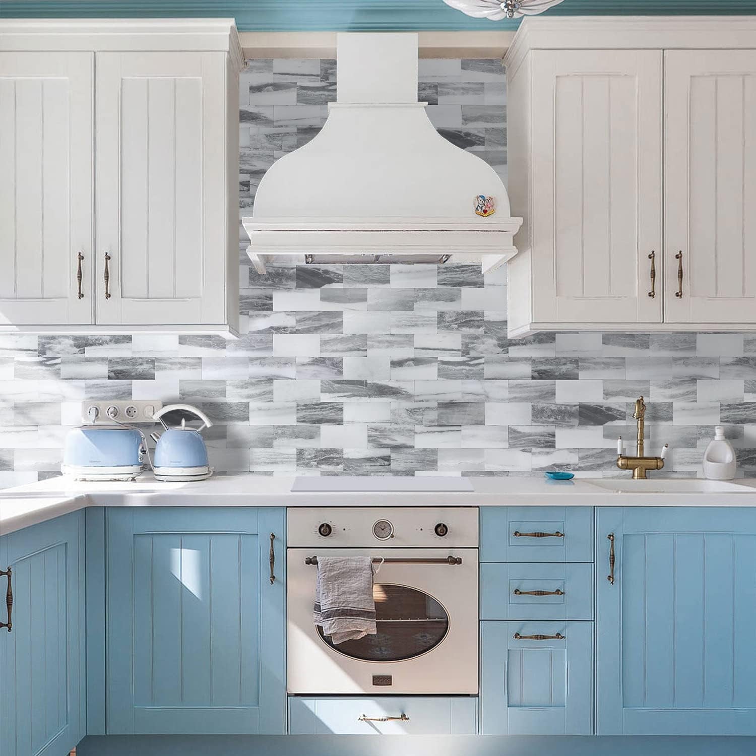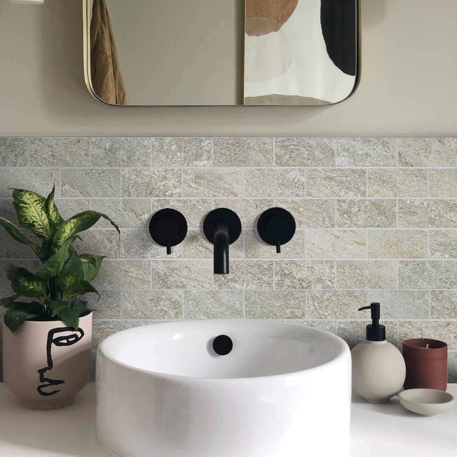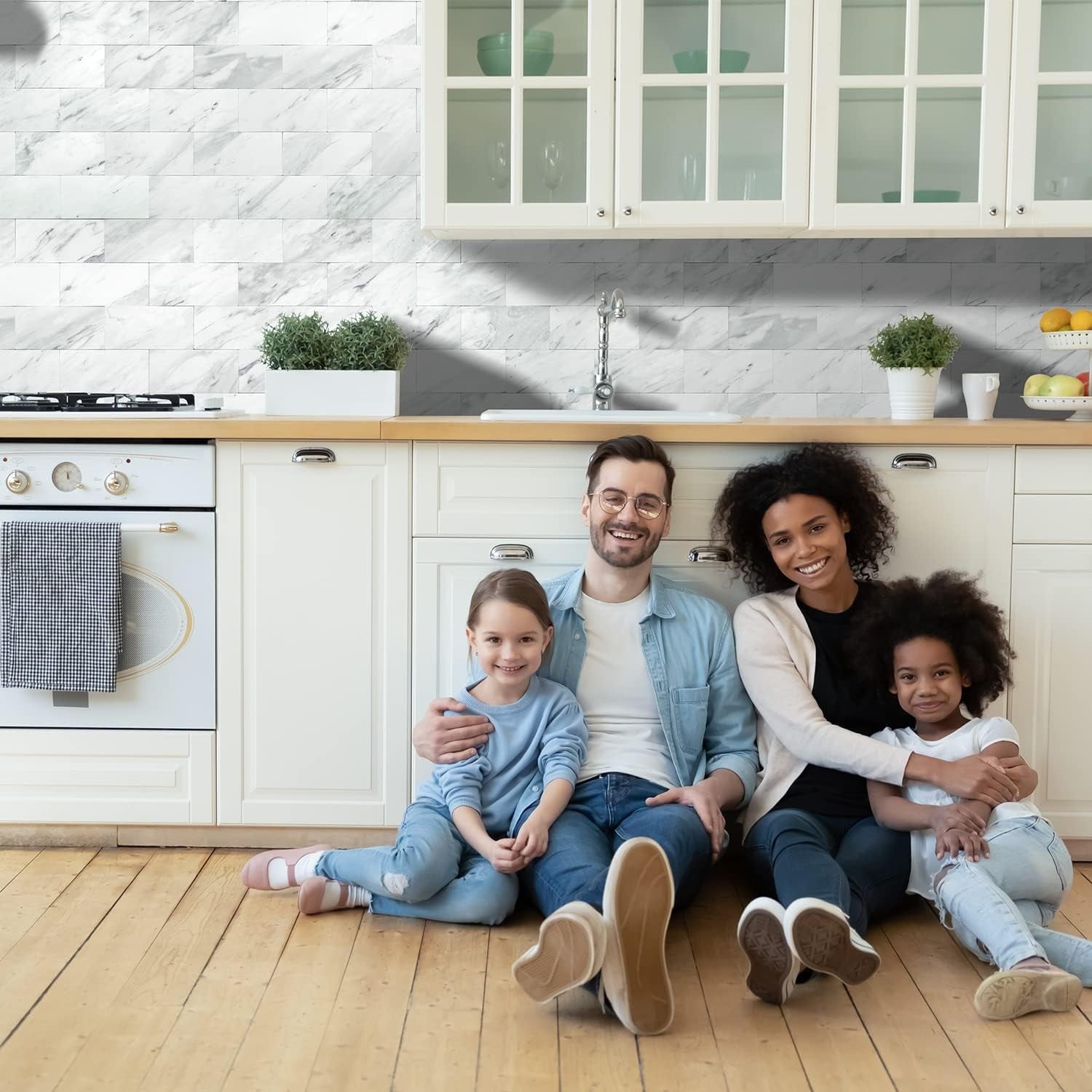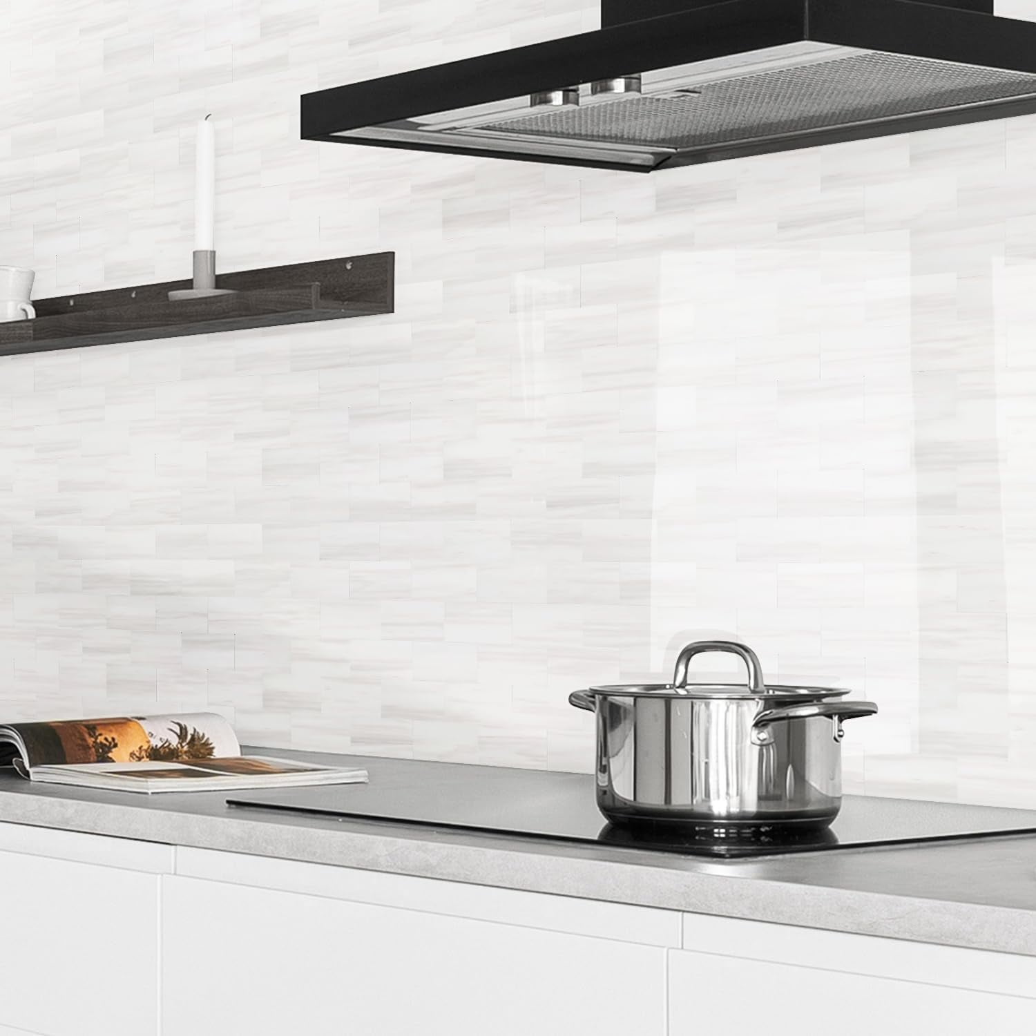 EASY INSTALLATION: Easy Peel and stick, just interlock one by one. No extra glue, no grouting, without mess. Easy to cut with sharp utility knife or hand saws, design for effortless installation. Usually 2 pack would made a kitchen backsplash done.