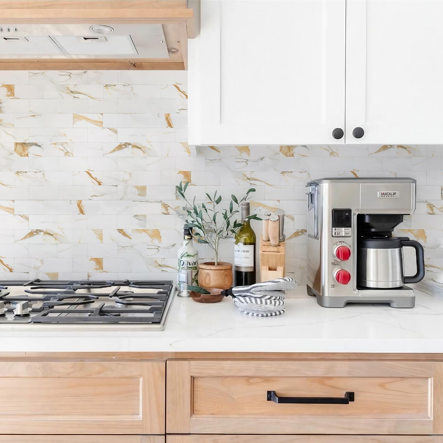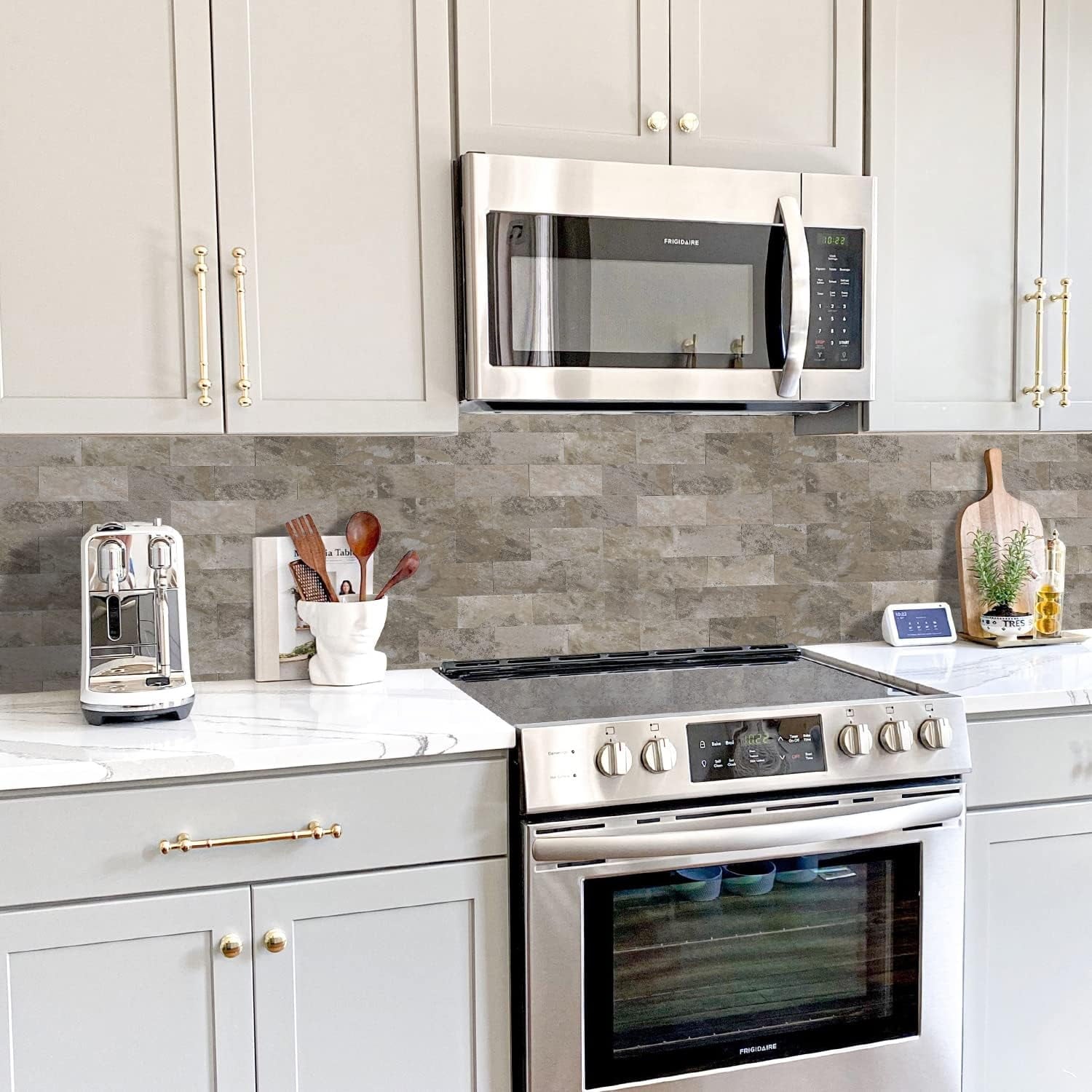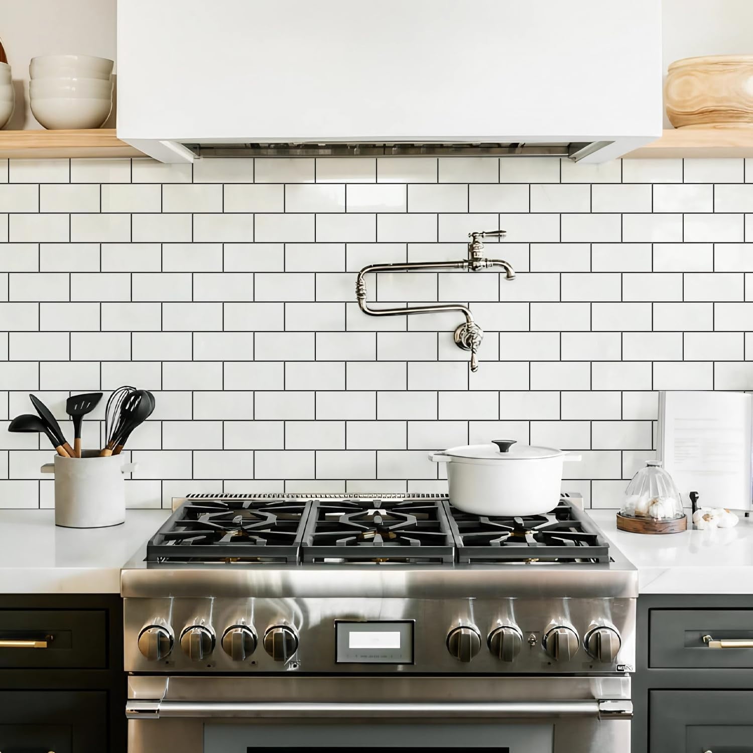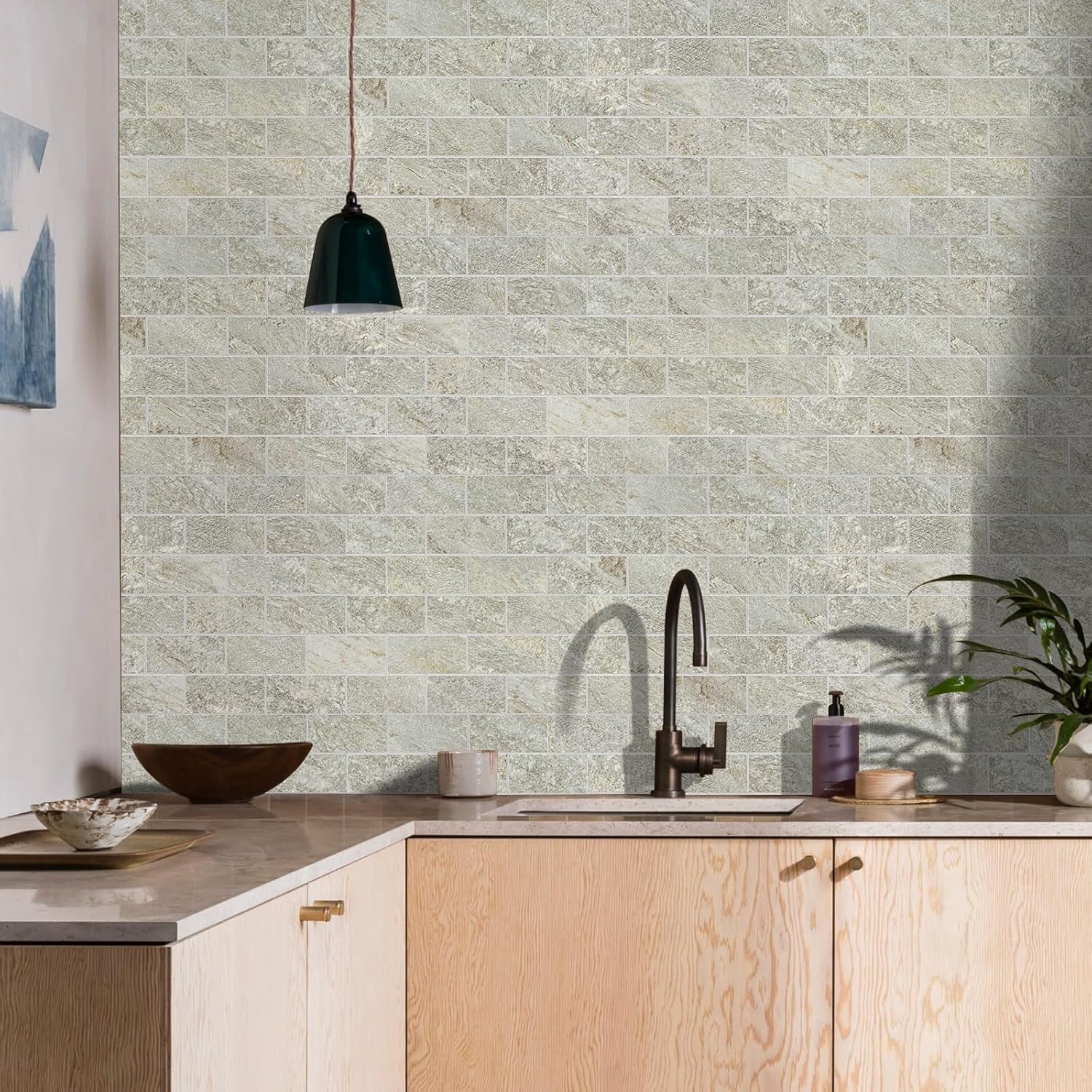 EASY INSTALLATION: Easy Peel and stick, just interlock one by one. No extra glue, no grouting, without mess. Easy to cut with sharp utility knife or hand saws, design for effortless installation. Usually 2 pack would made a kitchen backsplash done.