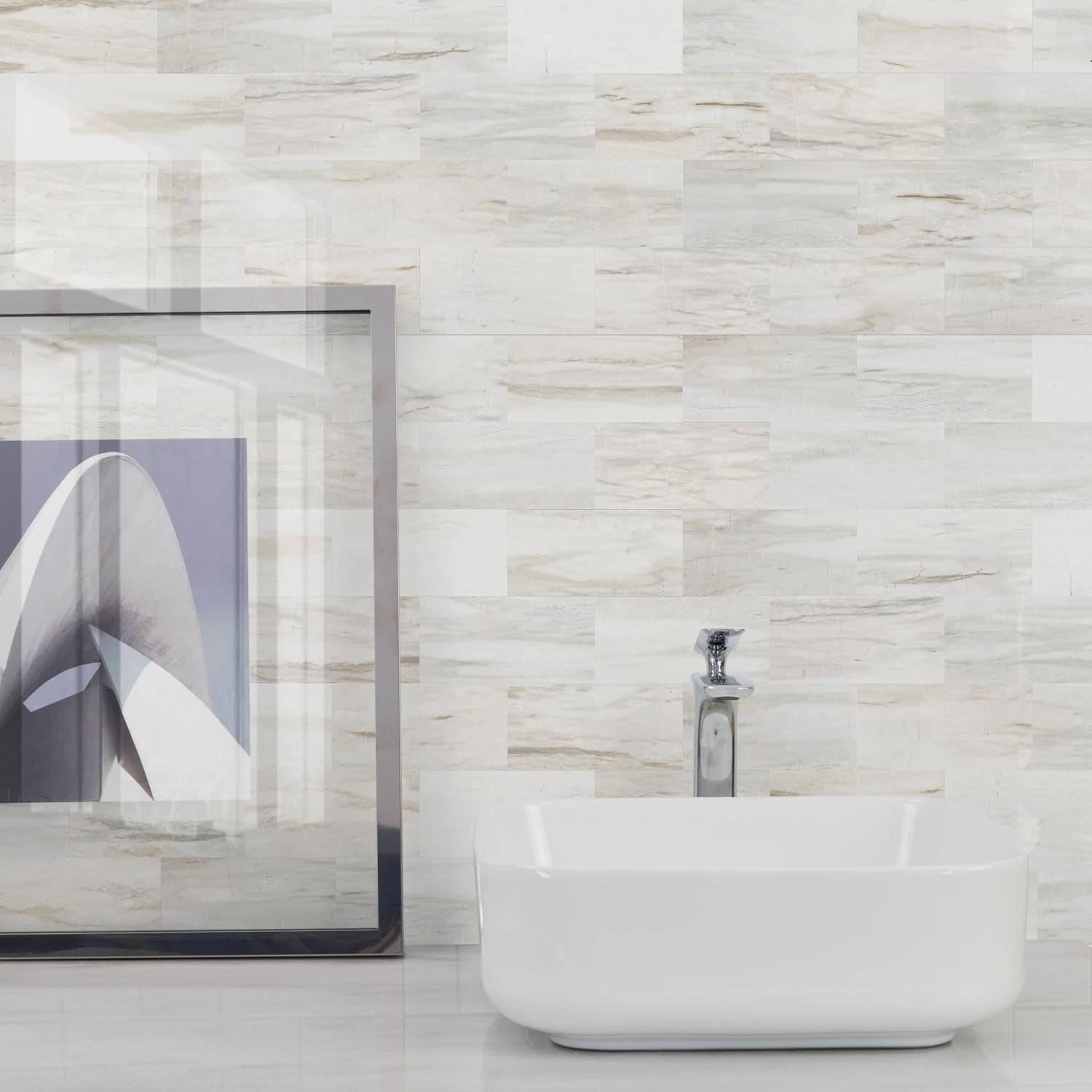 MODERN & CHIC DESIGN: Faux ceramic tile. Product is designed to be with eurasia biege color, the glossy surface and natural texture make it more realistic.Seamless design to avoid any dust and grime, easy to clean and maintain.