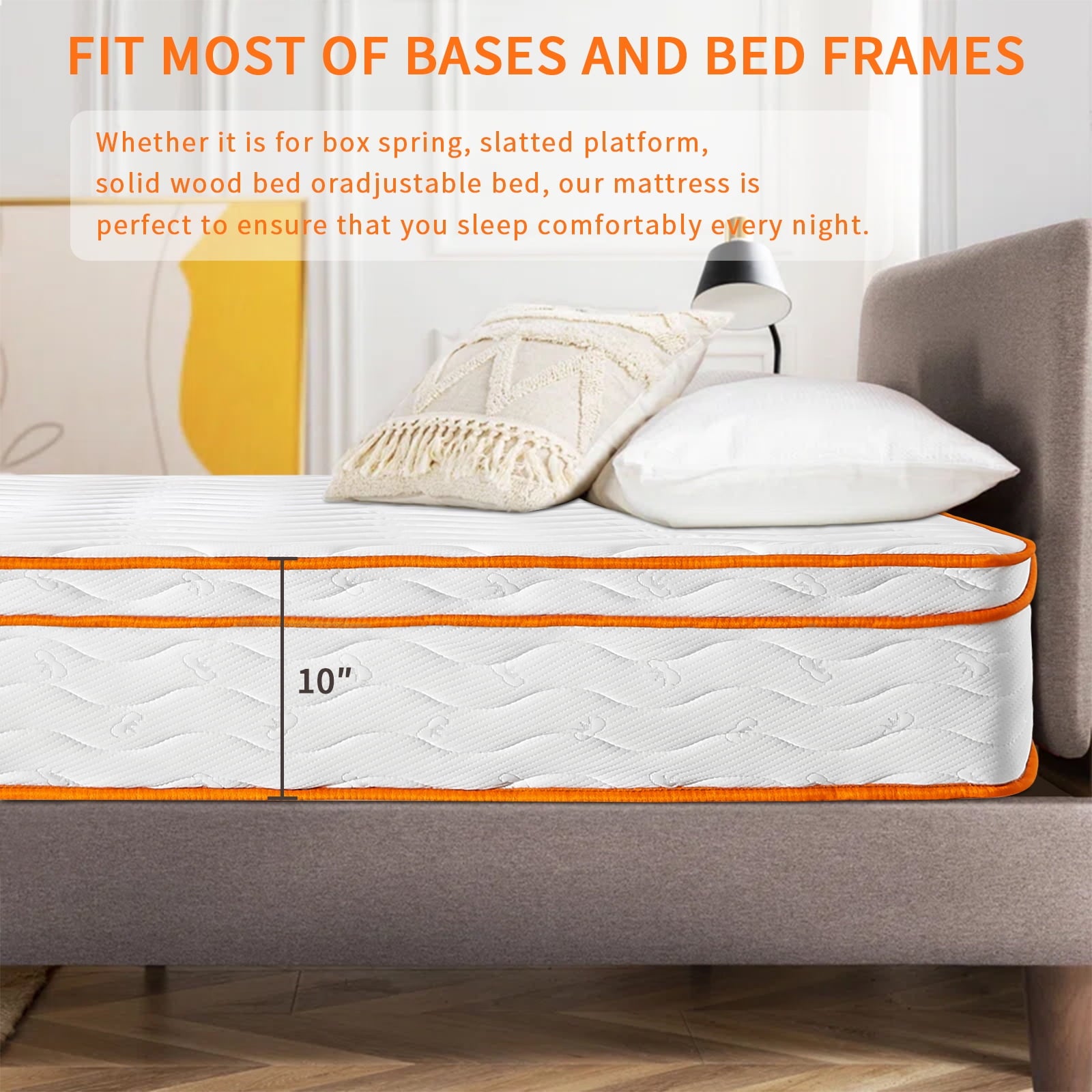 - Balanced Comfort: Combining firmness and softness, the 10-inch mattress ensures optimal support and multiple pressure relief points, making it ideal for those suffering from chronic back or neck pain