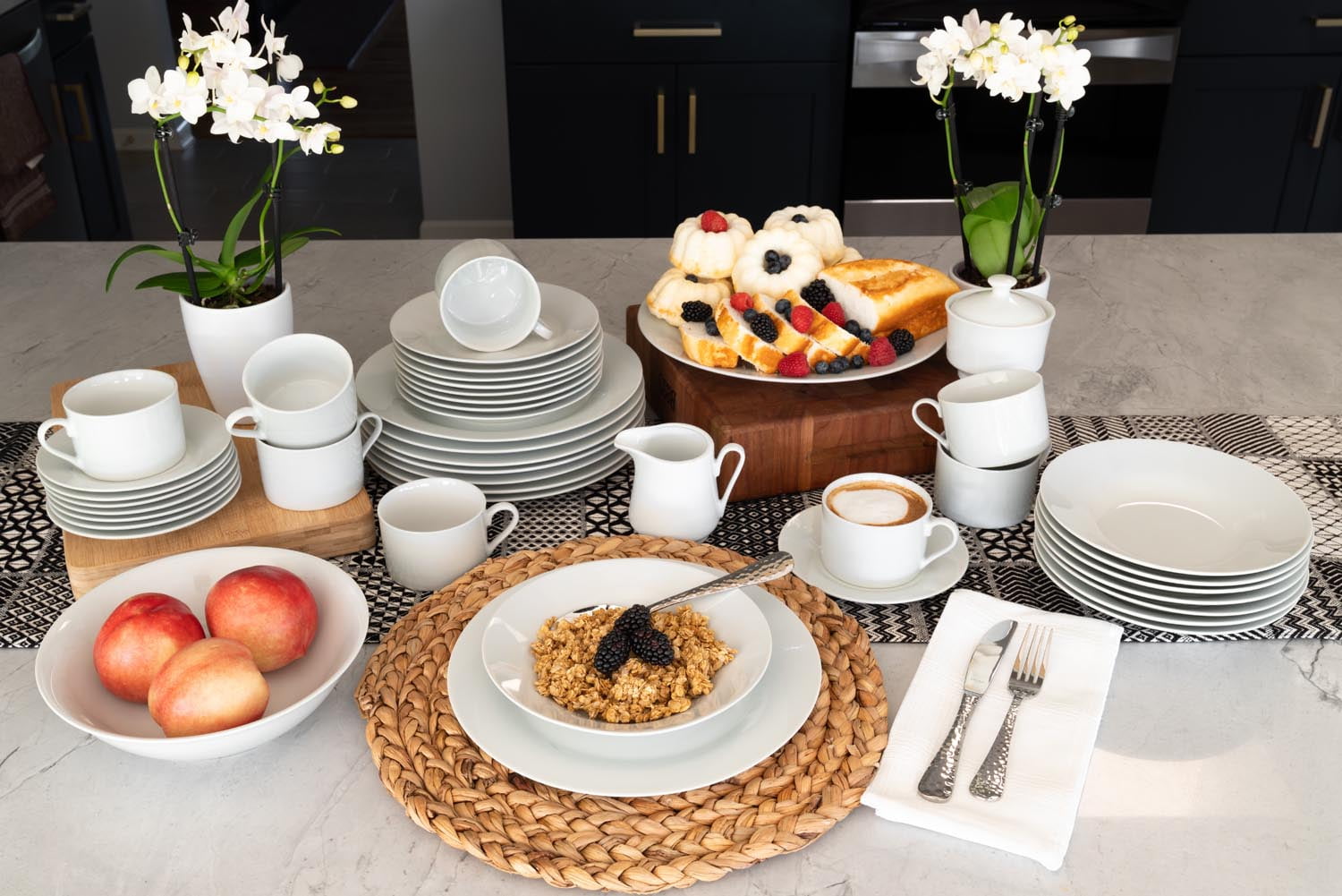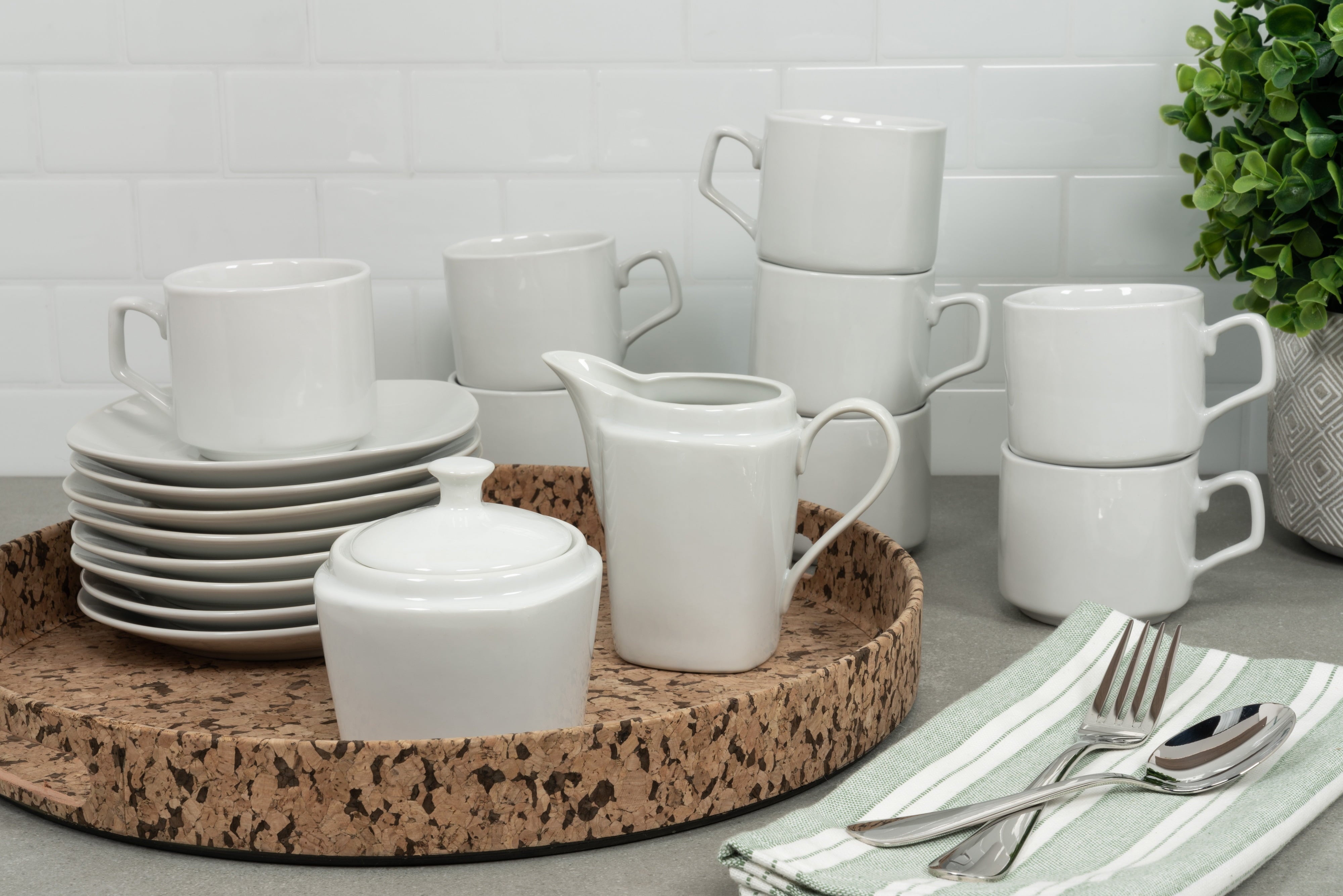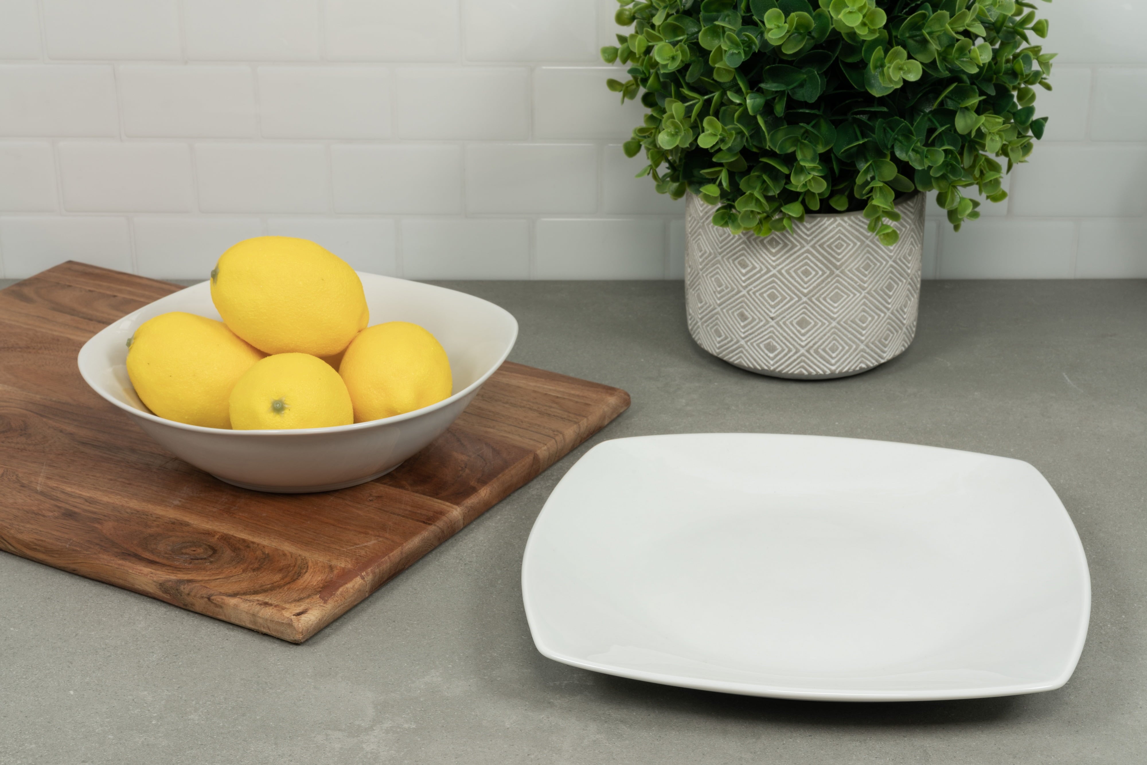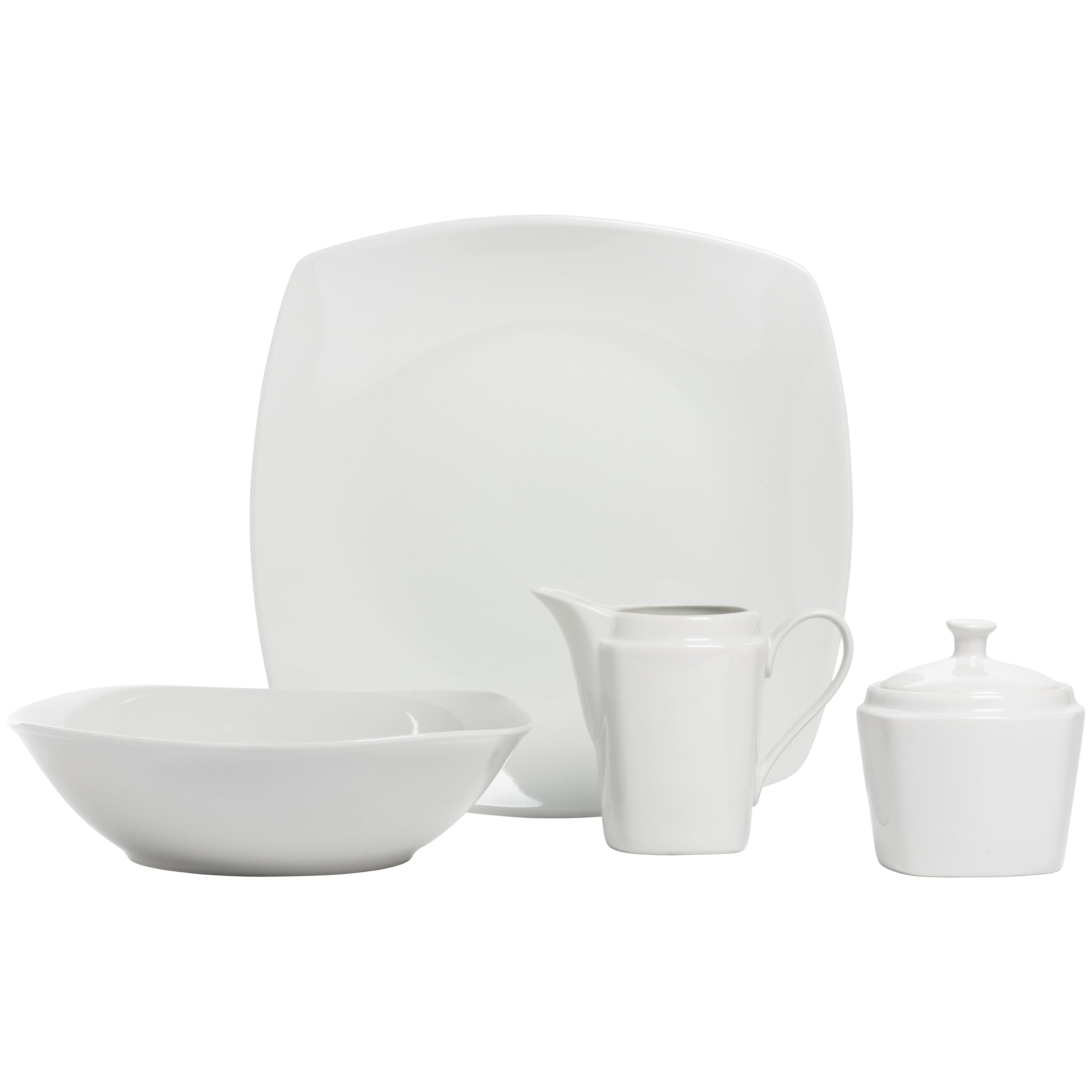 Classic, clean, and durable, this simply square collection is the perfect every day dinnerware set. Made with oven-to-table, microwave, and dishwasher safe porcelain these dishes will be your go-to for breakfast, lunch, dinner, and snacks in between. Service for 8 plus matching serving and accessory pieces makes for a perfect cupboard refresh, housewarming gift, or entertaining set.