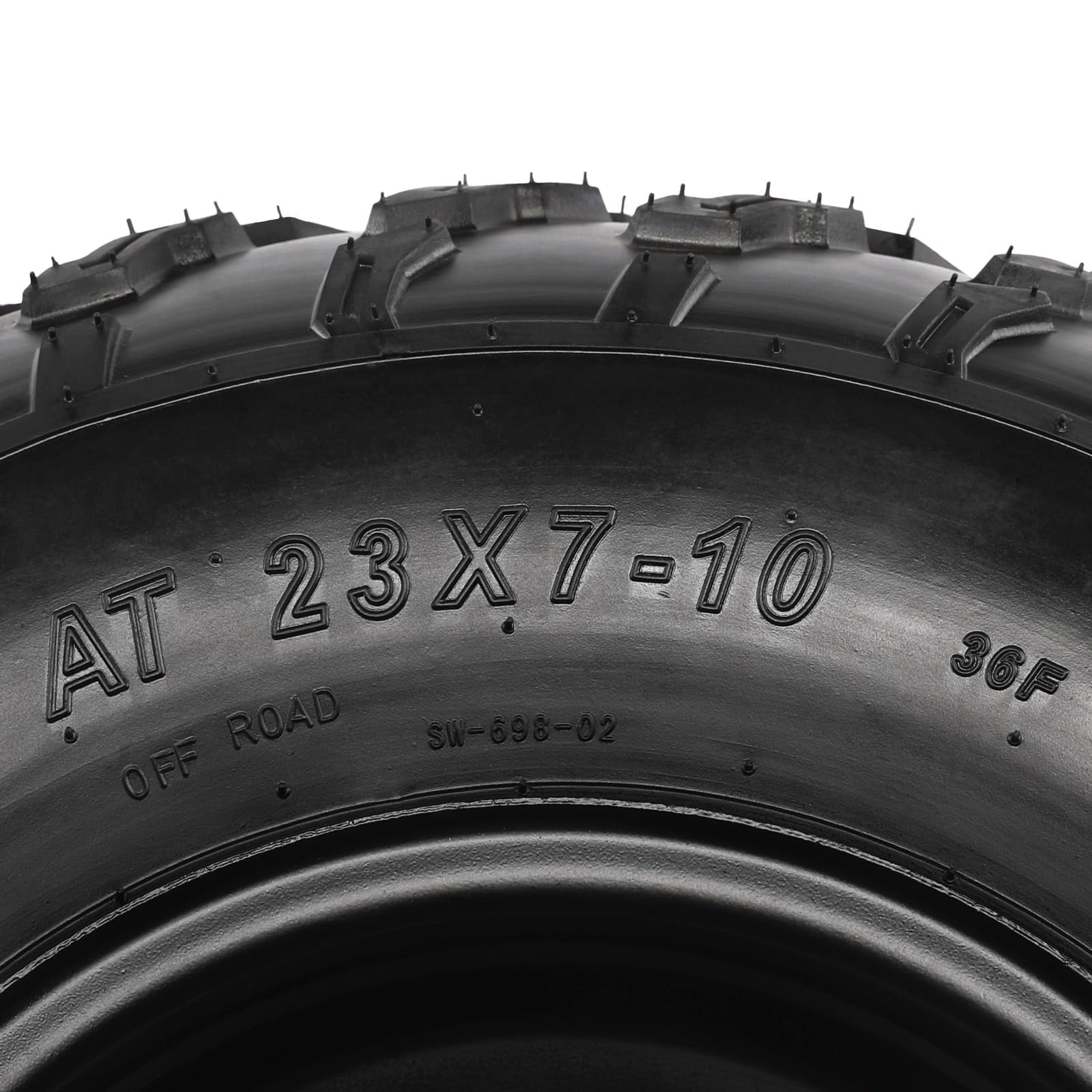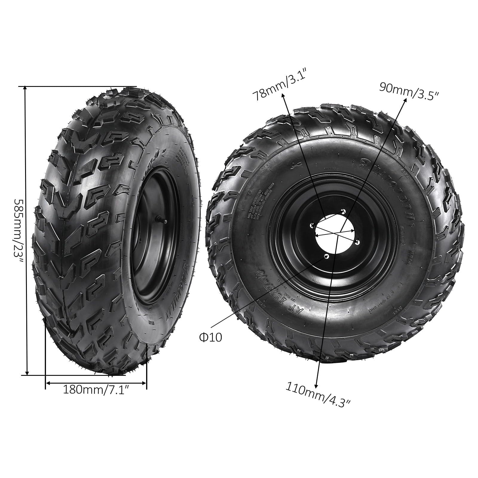 - Tire Size : 23×7-10 ( can be also written as 23x7x10 23 7 10) 4 Bolt Pattern, bolt distance : 110mm (4.33 inch)