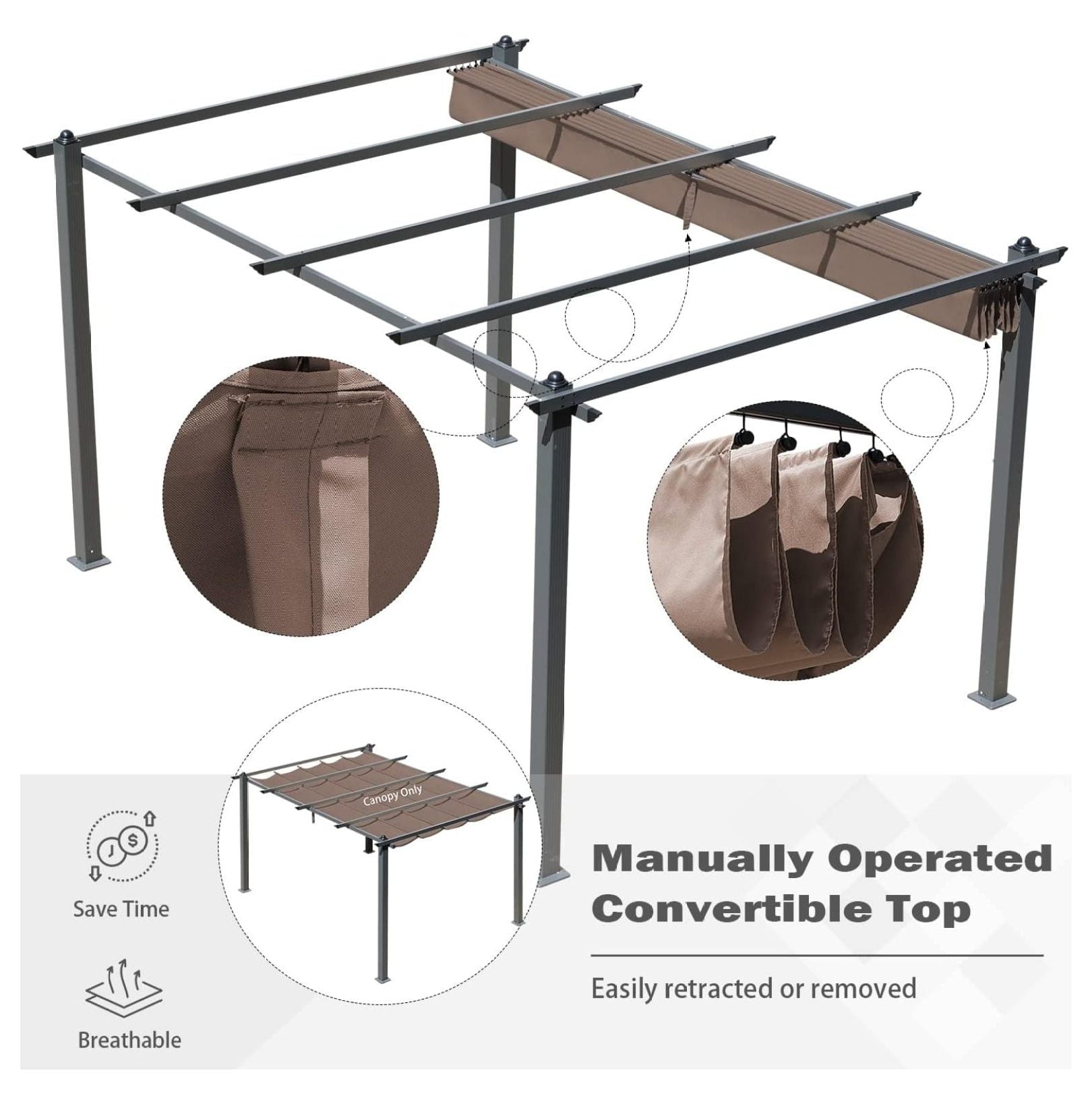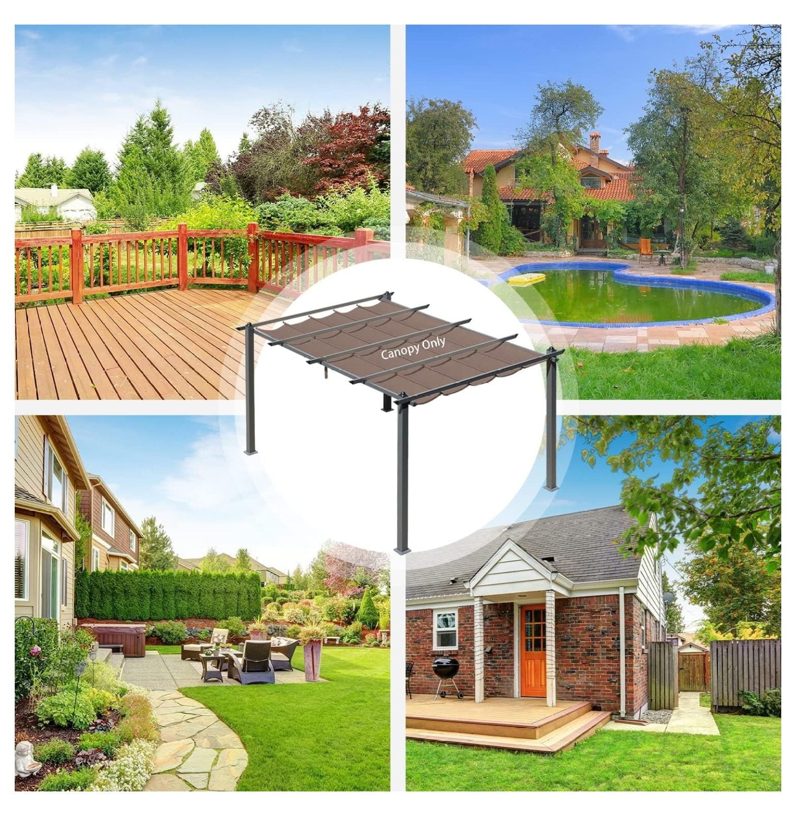 Previous page Next page 1 Premium Material 2 Adjustable Canopy 3 Toproof Design Would the canopy protect from rain, or is it really meant for sun? The canopy of this pergola would protect from light rain and sun. Is this canopy retractable shade durable? This canopy retractable shade is built with polyester which can withstand , aesthetic and durable for years of use. Where can I buy replacement canopy in other sizes? stores sell replacement canopy in a variety of sizes, check out stores for more choices. Comparisons and Recommendations