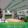 - [Spacious Storage & Easy Access with Wide Double Doors] Offered in two practical sizes—10x12FT (119.70”L×143.70”W×80.40”H, 232.60lbs) and 10x8FT (115.30”L×94.00”W×76.30”H, 167.10lbs)—this shed provides ample room for bikes, lawnmowers, snow blowers, grills, and tools. Its 10-foot wide double doors let adults walk in effortlessly, ensuring easy access to all stored items, eliminating garage or backyard clutter for a tidy space.