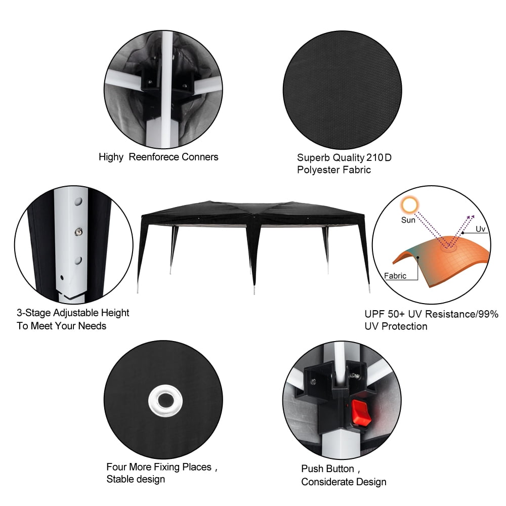 - WELL-MADE CANOPY – Our pop up canopy tent is tough but lightweight, vented, with sun-proof protection. No worry about the rain, hot sun, snow or UV rays, you will be absolutely comfortable in the party tent.
