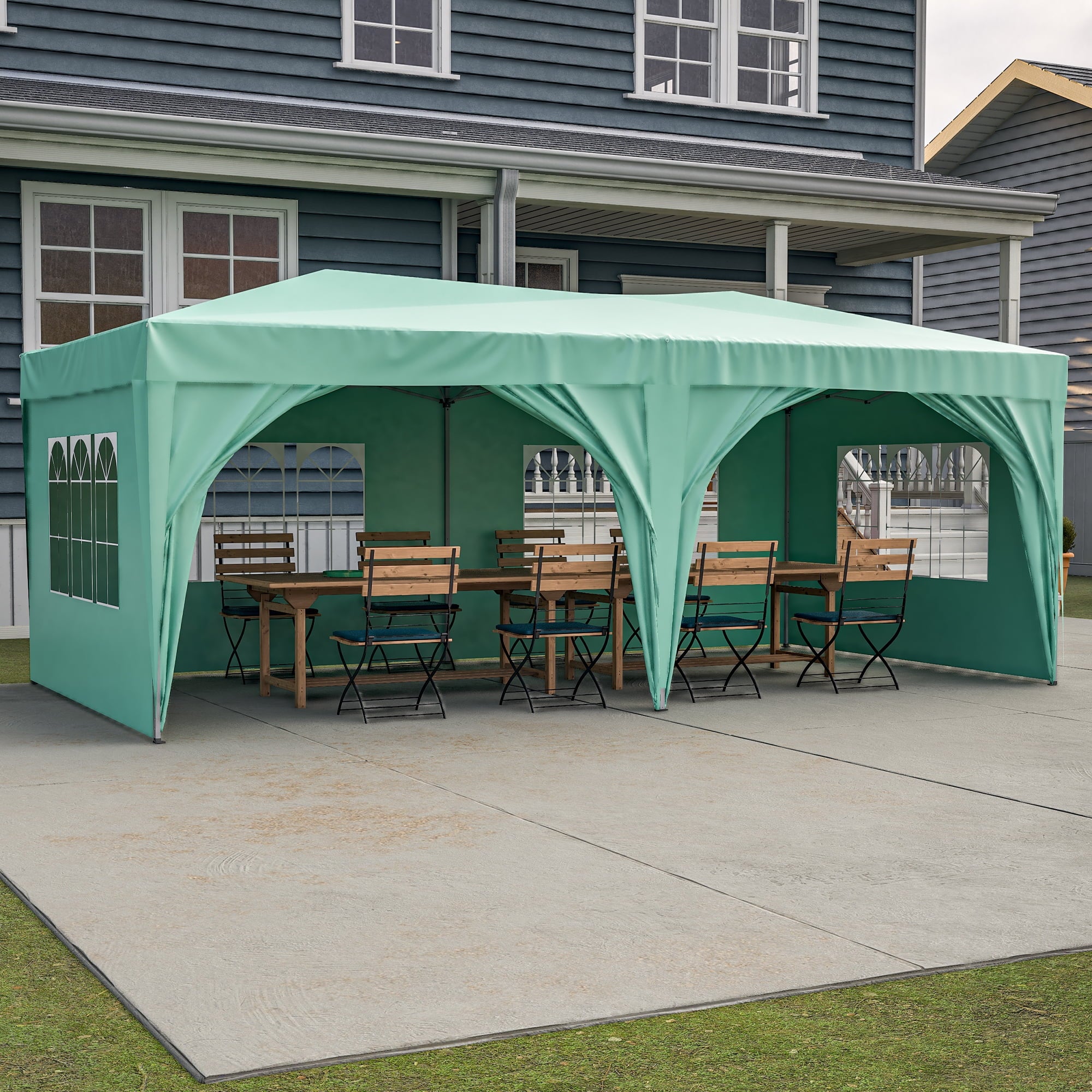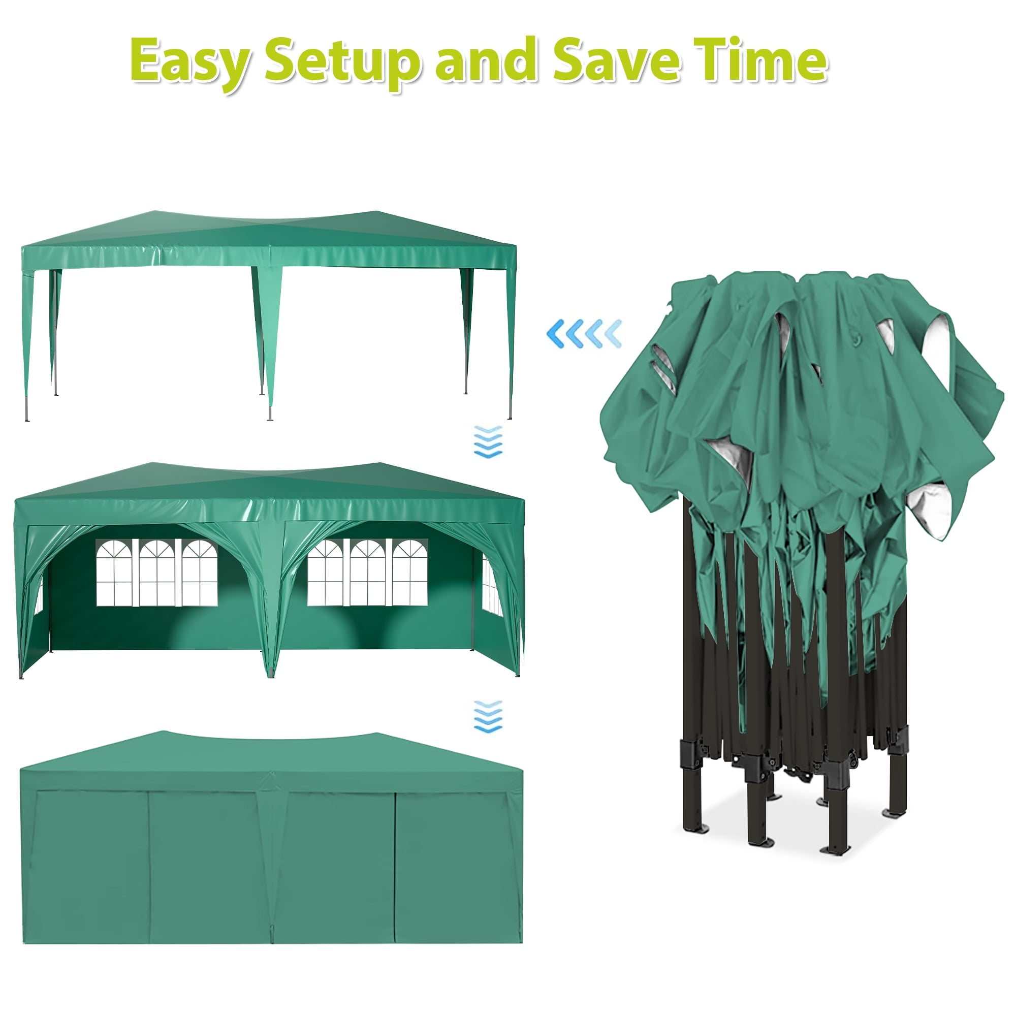 - Removable Sidewalls:4 large church style window panels are designed for air circulation and let light in. 2 sidewall panels with zippered are designed for easy walk-in and out. Sidewalls with velcro fasteners are easy for assembly and removal to meet all your needs, no matter you want to hold a party inside the canopy or make it more freely.