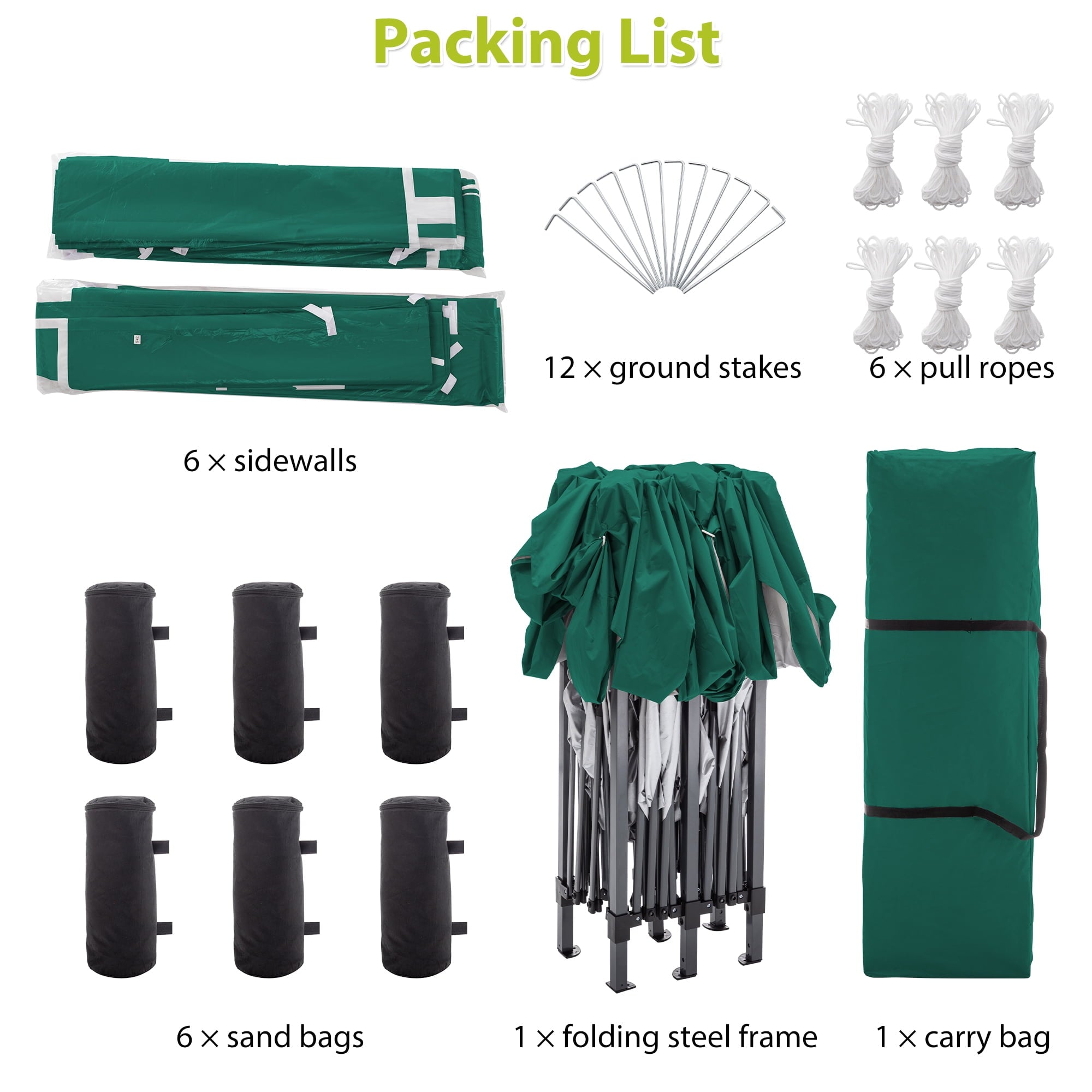 - UV Protection:The top cover of our pop up gazebo is made of 210D Oxford cloth coated waterproof silver, providing protection from the sun, water and wind.