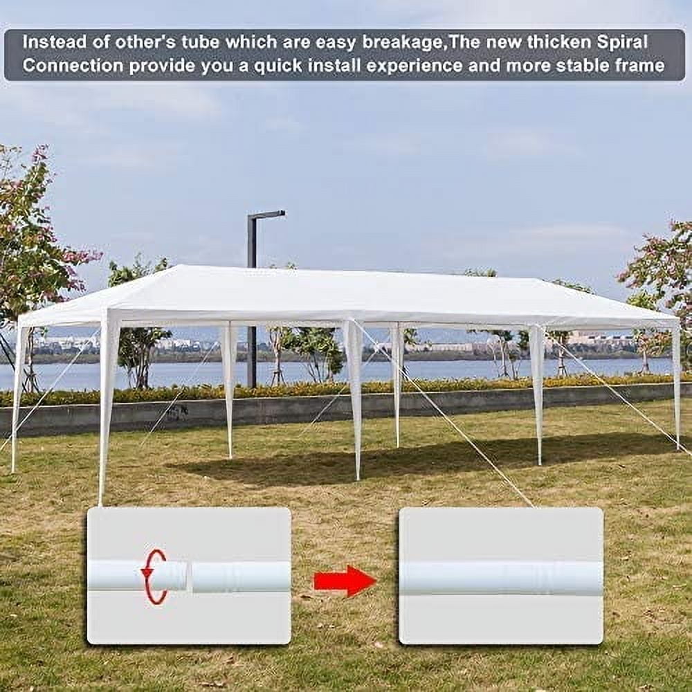Party Wedding Canopy Tent: High-class PE cloth top and iron tubes, smart workmanship and reasonable design ensure good structure and ruggedness. Besides, spiral interface between the tubes makes overall frame more stable, we provide the the canopy tent with ropes and stakes for added stability