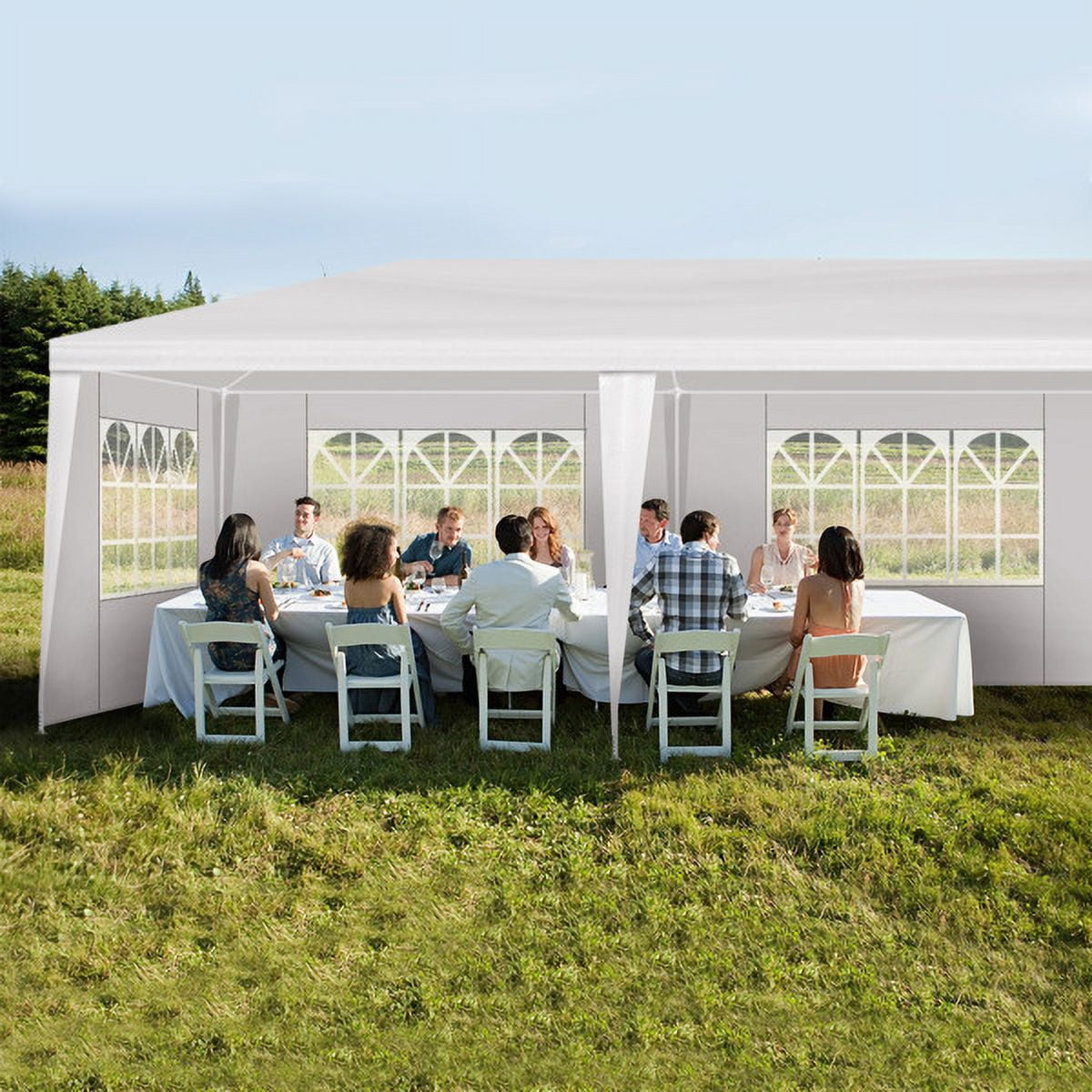 • 【Big and spacious】10’X30′ (3m*9m) outdoor party tent can hold up to 50 people, making it a wonderful choice for a variety of outdoor events like party, wedding, graduation, flea market, small business, picnics, sporting events, arts and crafts tables and much more.