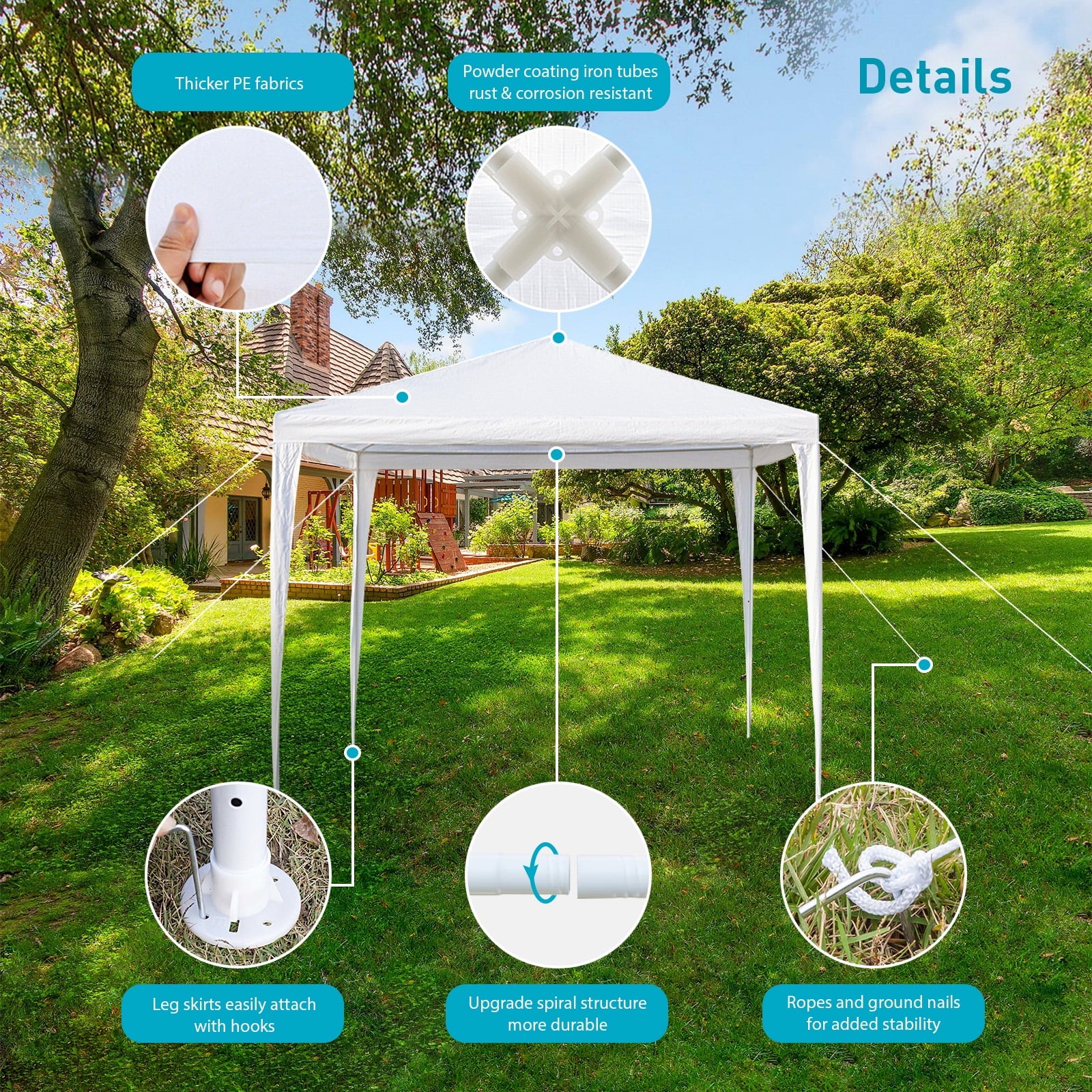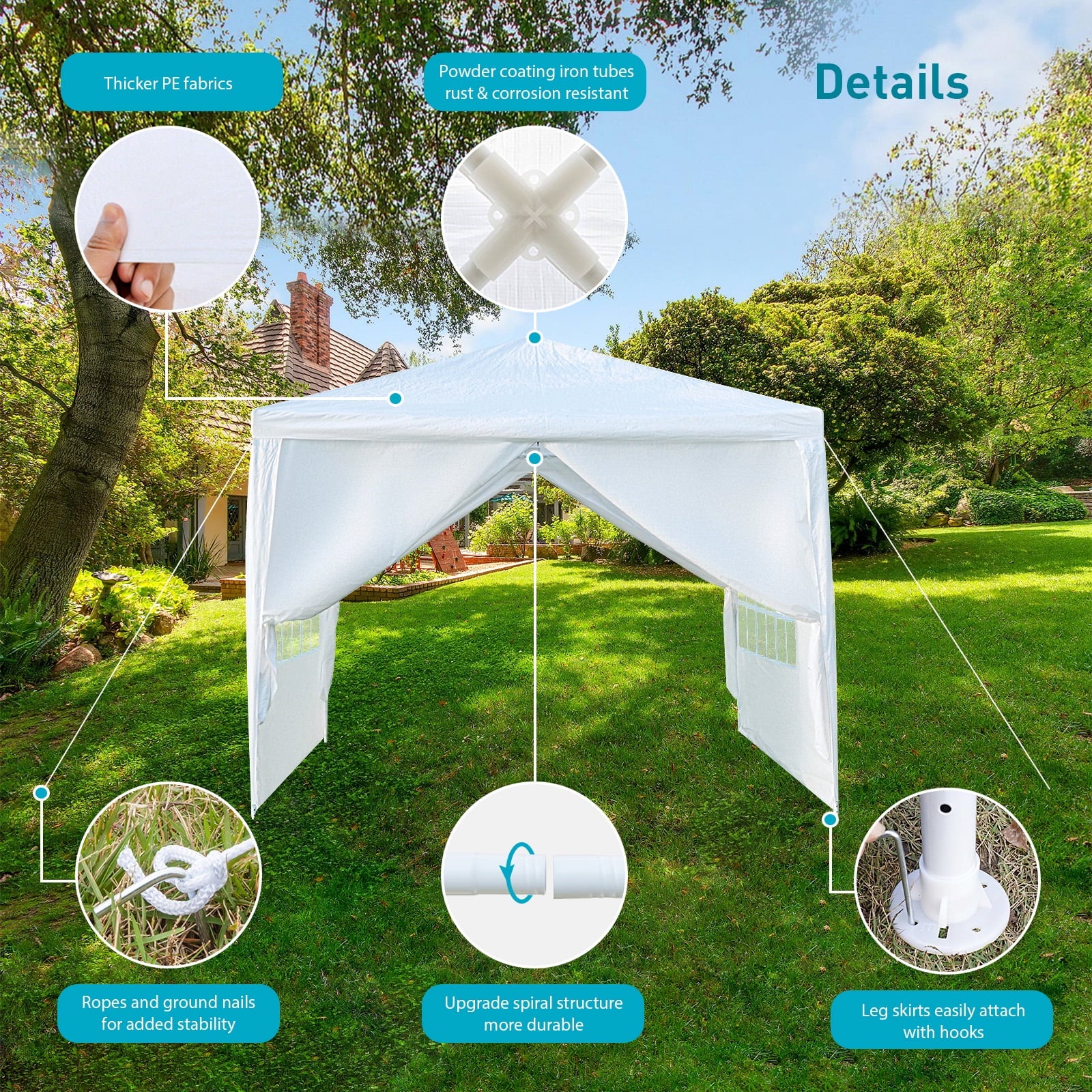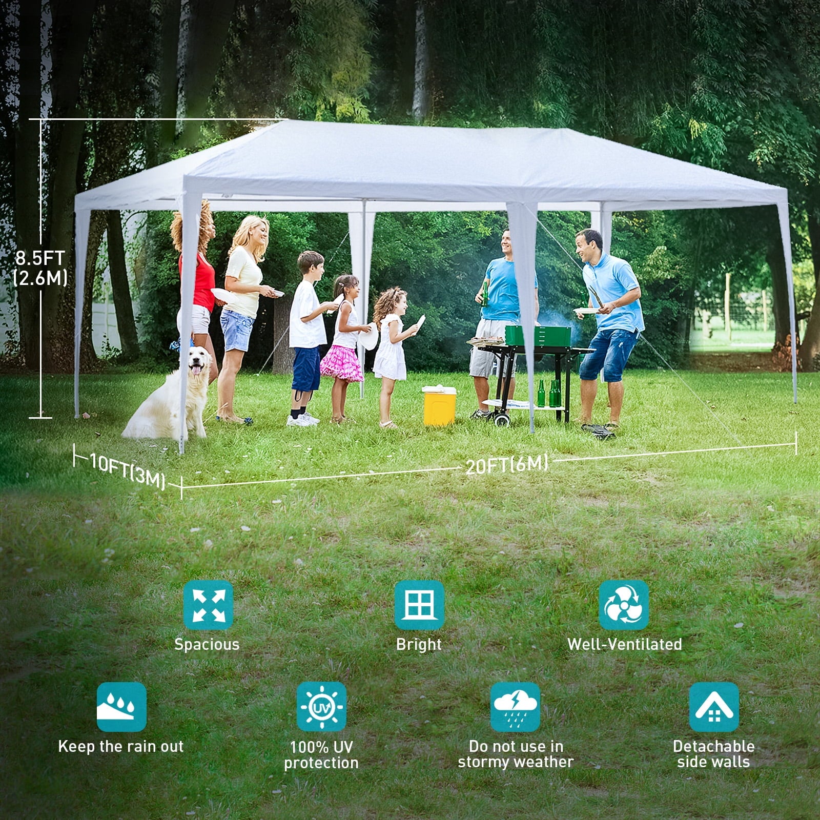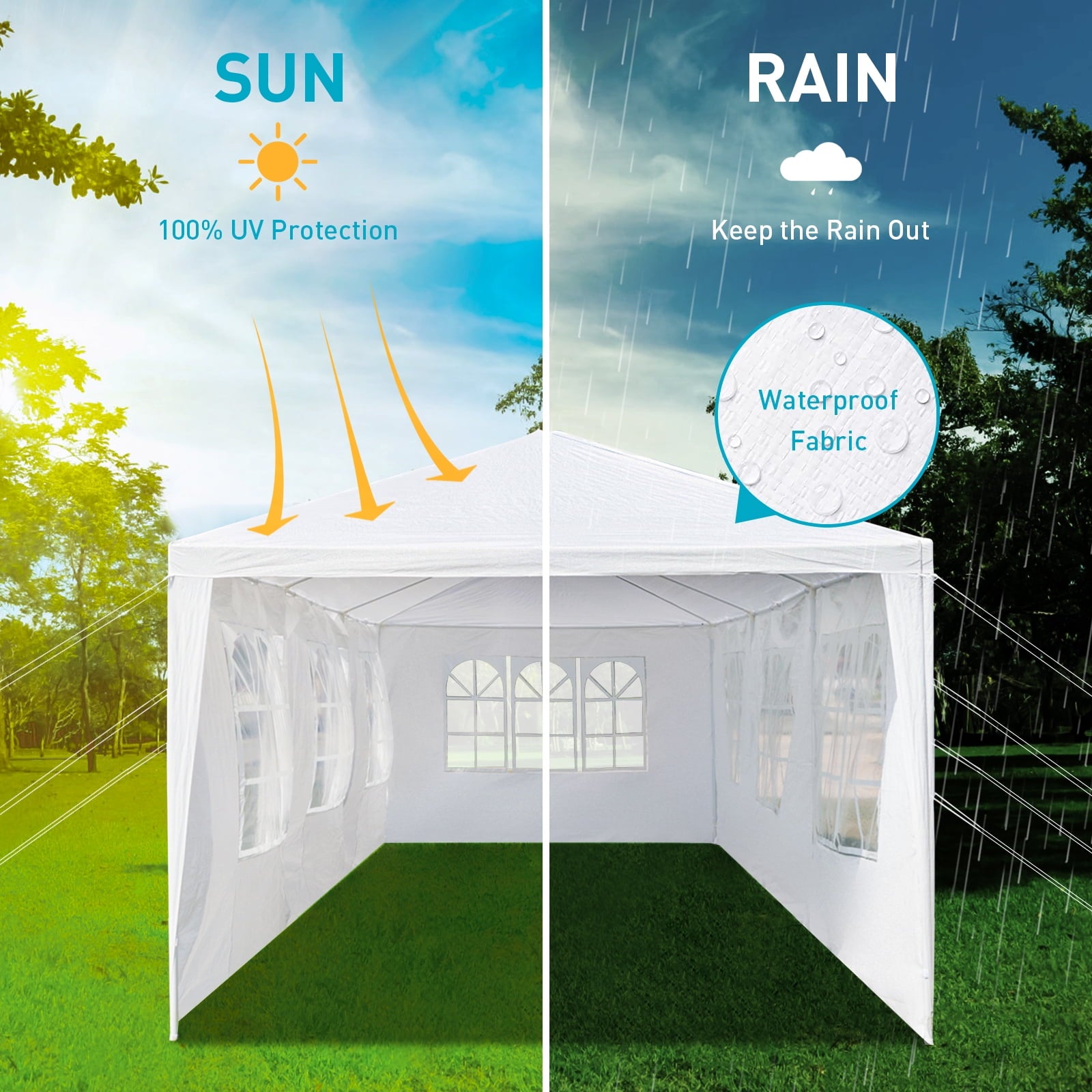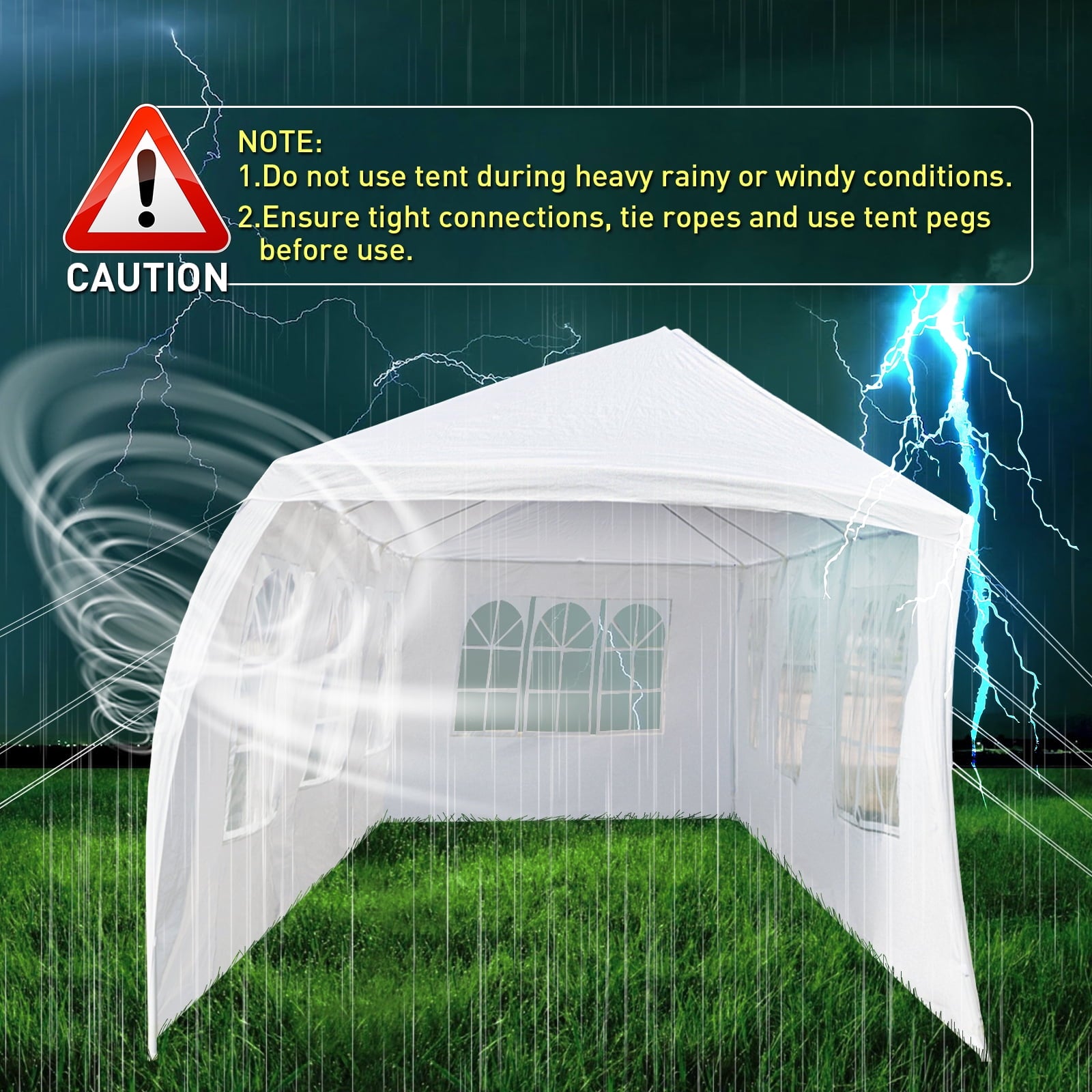 • 📢 WARM TIPS: This tents for parties is suitable for temporary use, garden, and leisure activities in good weather. We recommend that customers do not use it in extreme bad weather conditions. After setting up the tent, it is necessary to use ropes and ground pegs for added stability