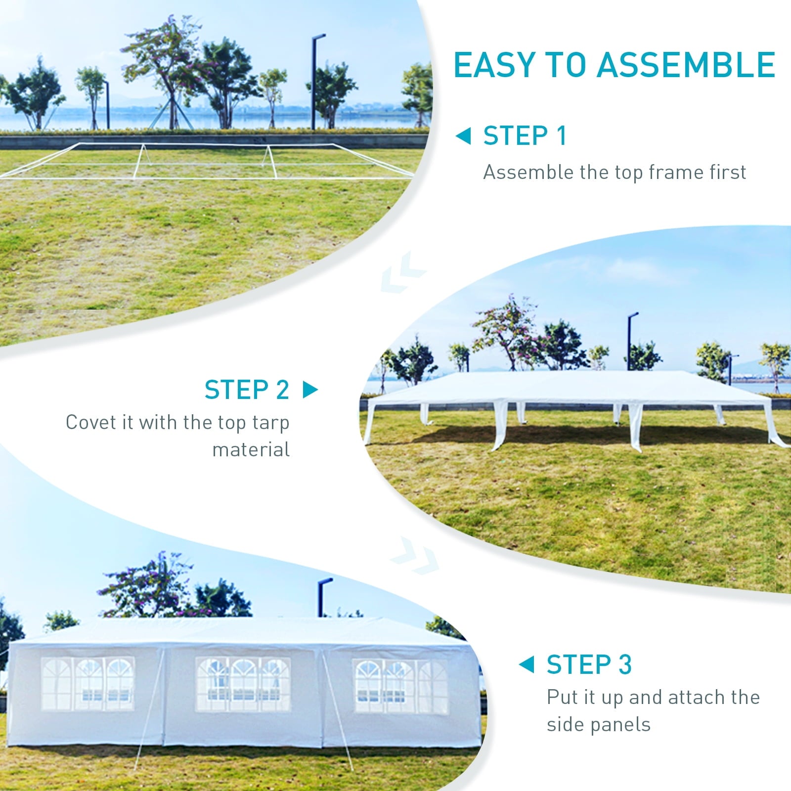 • 💒 EASY TO ASSEMBLE: We understand that life is always busy, which is why we have made the assembly of this large party tent easy and quick. The tube walls comes with numbered parts and clear instructions, eliminating the need for additional tools. It is best to invite two friends to assemble it with you
