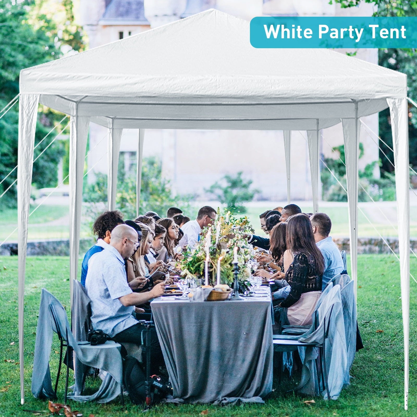 10’x30′ Party Tent, Outdoor Tents for Parties, Wedding and Birthday, Large White Tent with Ropes and Ground Stakes, Outside Gazebo Event Tent for Garden, Patio and Backyard, No Sidewalls