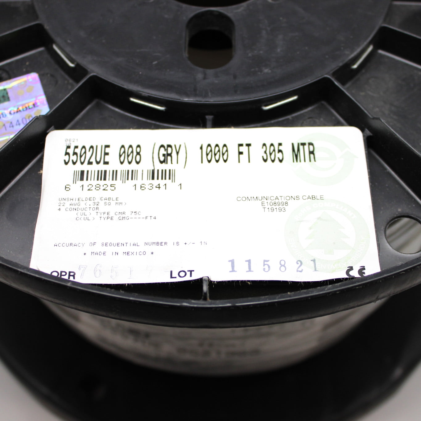 1000 FT Spool of Belden 22AWG 4-C Unshielded Gray Security & Sound Cable 5502UE