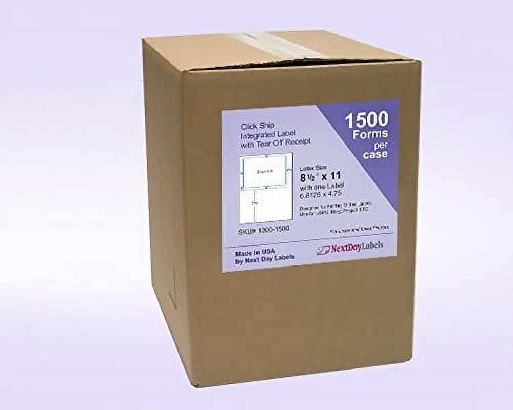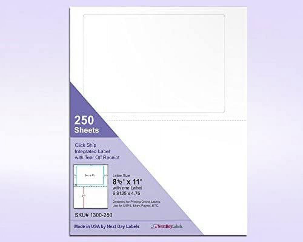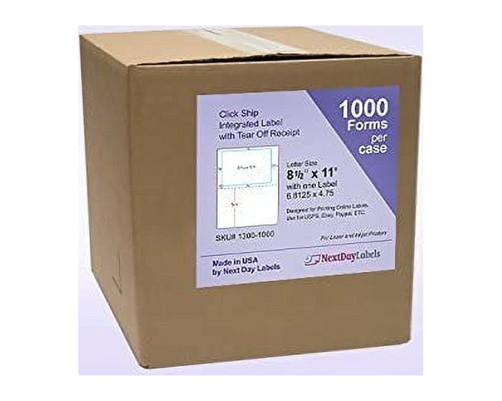 This Click N Ship 8-1/2″ x 11″ Sheet with one Label works with the USPS software and comes in packs of 1000 sheets which is a total of 1000 labels. Designed to be able to print a shipping label and other customer info like invoice/Work order/Bill/Receipt.