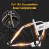 - Braking & Shock Absorption: Make sure the safe and comfortable. The 20″ fat tires are anti-slip and puncture-proof, ensuring you can ride on roads, snow, beaches, and rugged mountain roads. Cybervelo electric bike adopts front and rear double disc brakes and EABS power-off brake for sensitive braking, which can make sure strong off-road performance, reliable braking force and high safety factor. The high-strength shock-absorbing front fork and seatpost absorb the bumps of long, rough roads
