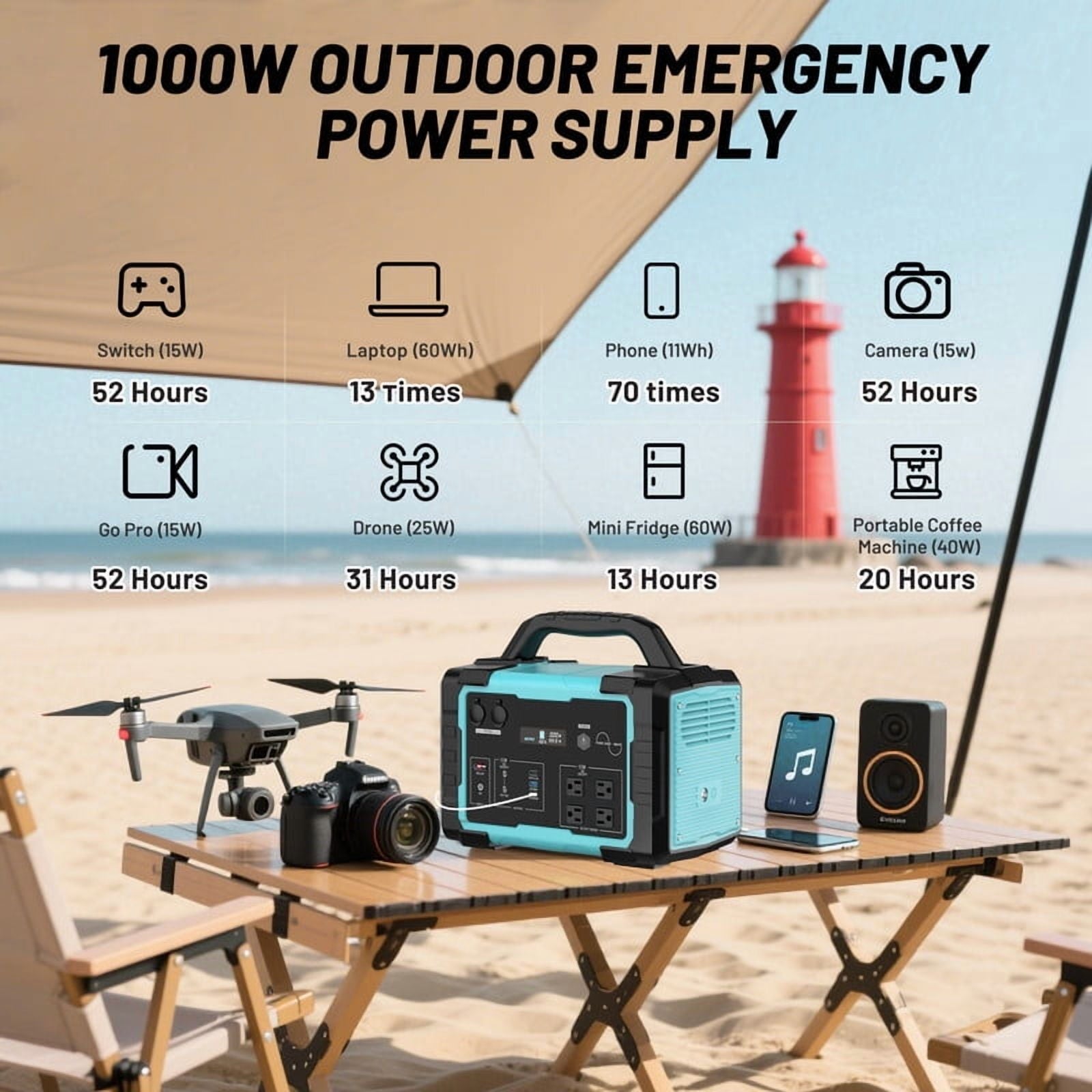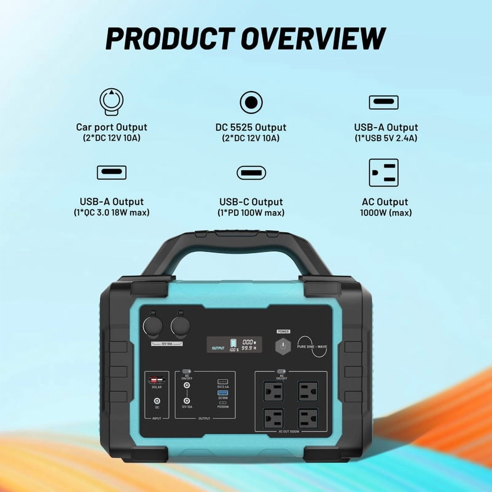 This 1024Wh power station uses safe LiFePO4 batteries, delivering stable power for camping, RV trips, and home emergencies.