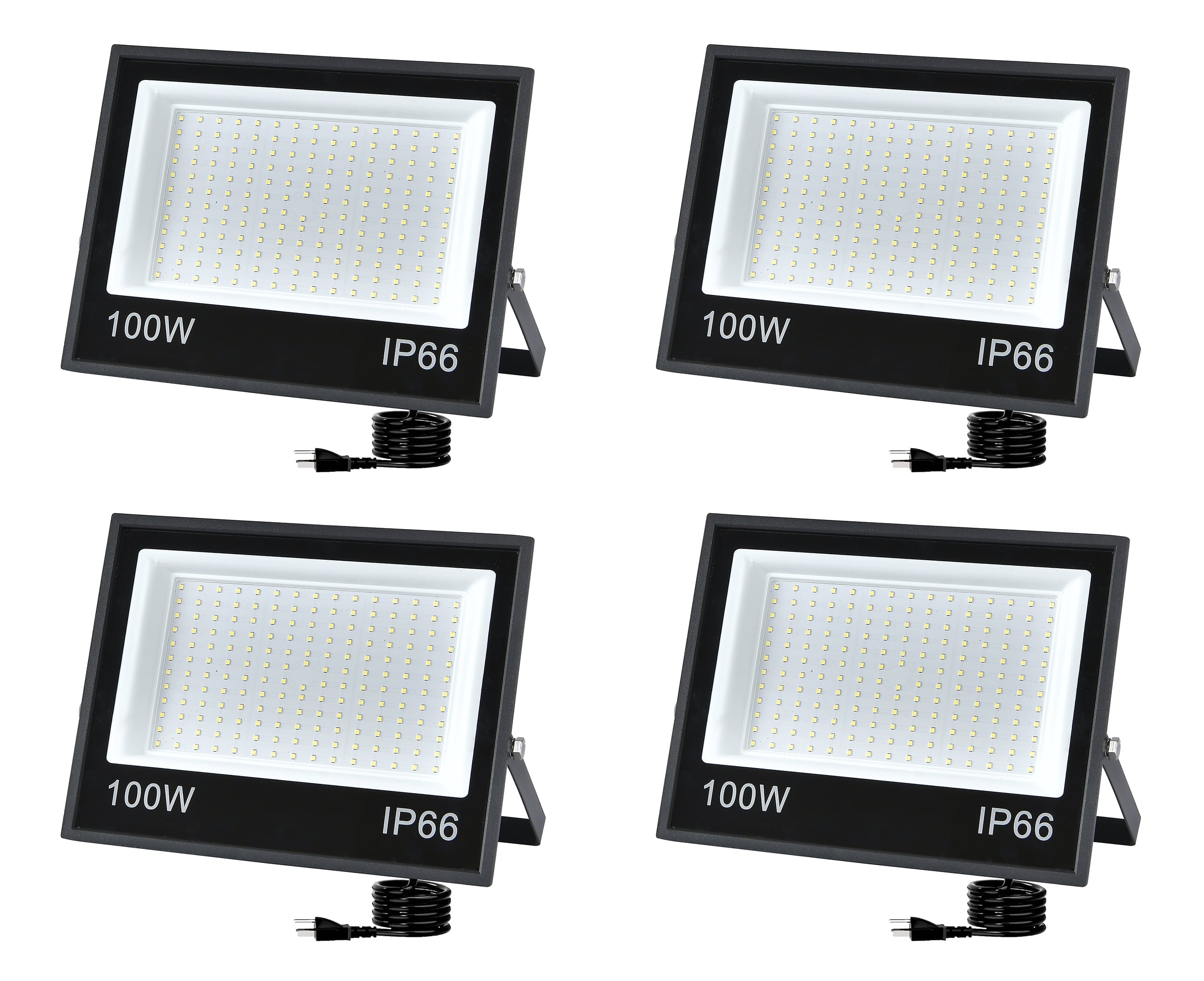 - 💡【Easy To Install 】This 100W Flood / Security / Garage / Area can be mounted over an Electrical Junction Box or directly on the surface of a wall. Complete with an Adjustable Steel Mounting bracket, 4’ Power cord and ground protected UL Approved Plug. With a wider and Thicker metal bracket, this security spotlight can also be mounted on a tripod as a work light.