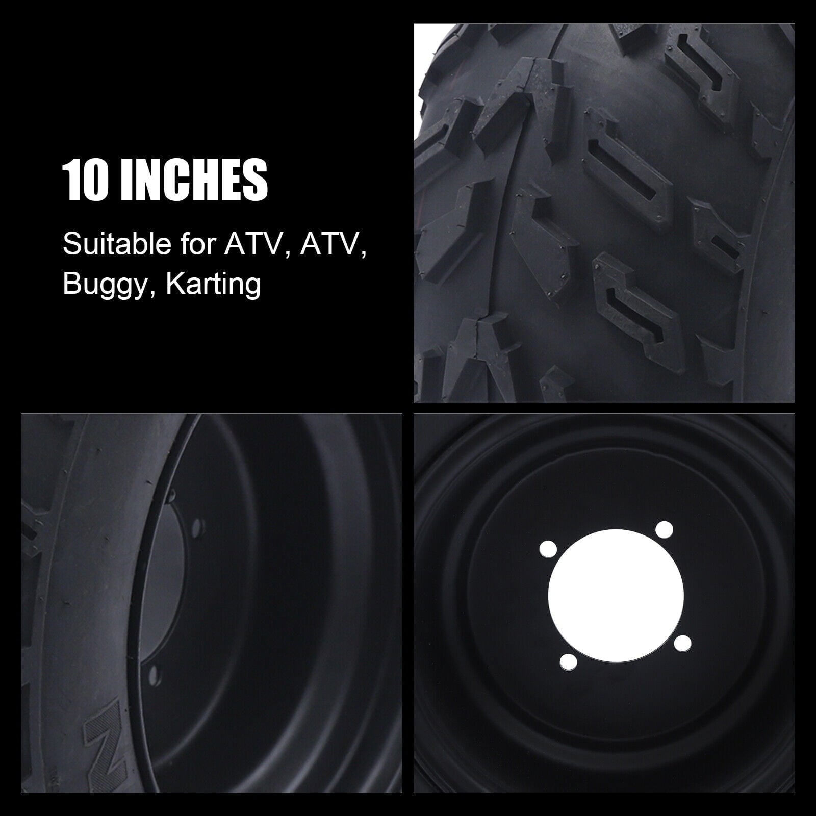 10in ATV Wheels Tire 22x10-10 Tire Rim for 200cc 250cc UTV Off road 55x55x23cm 10 Inch ATV Tire Black for ATVs And Go Karts As Front Or Rear Tire 10in ATV Wheels Tire 22x10-10 Tire Rim
